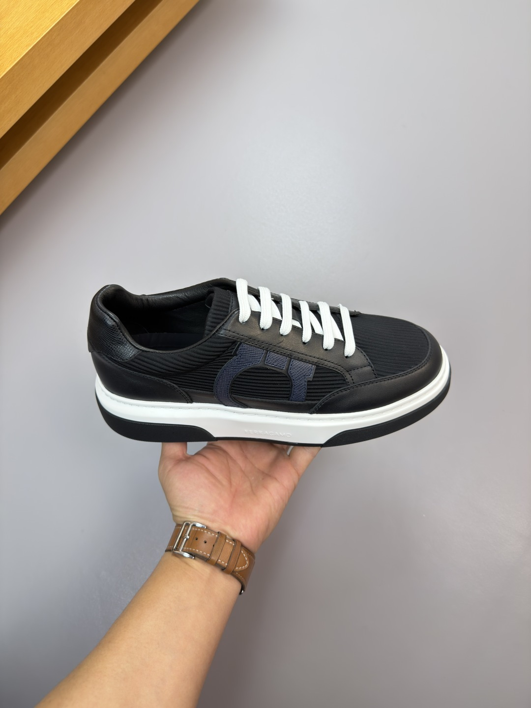 这款鞋子是AAAAA 1:1 质量 (非常棒). 使用了和原版一模一样的材料. 商标部分也保持了和菲拉格慕/Salvatore Ferragamo一样. 图片拍摄是实物鞋子拍摄, 您所收到的实物保证和我们图片一模一样.