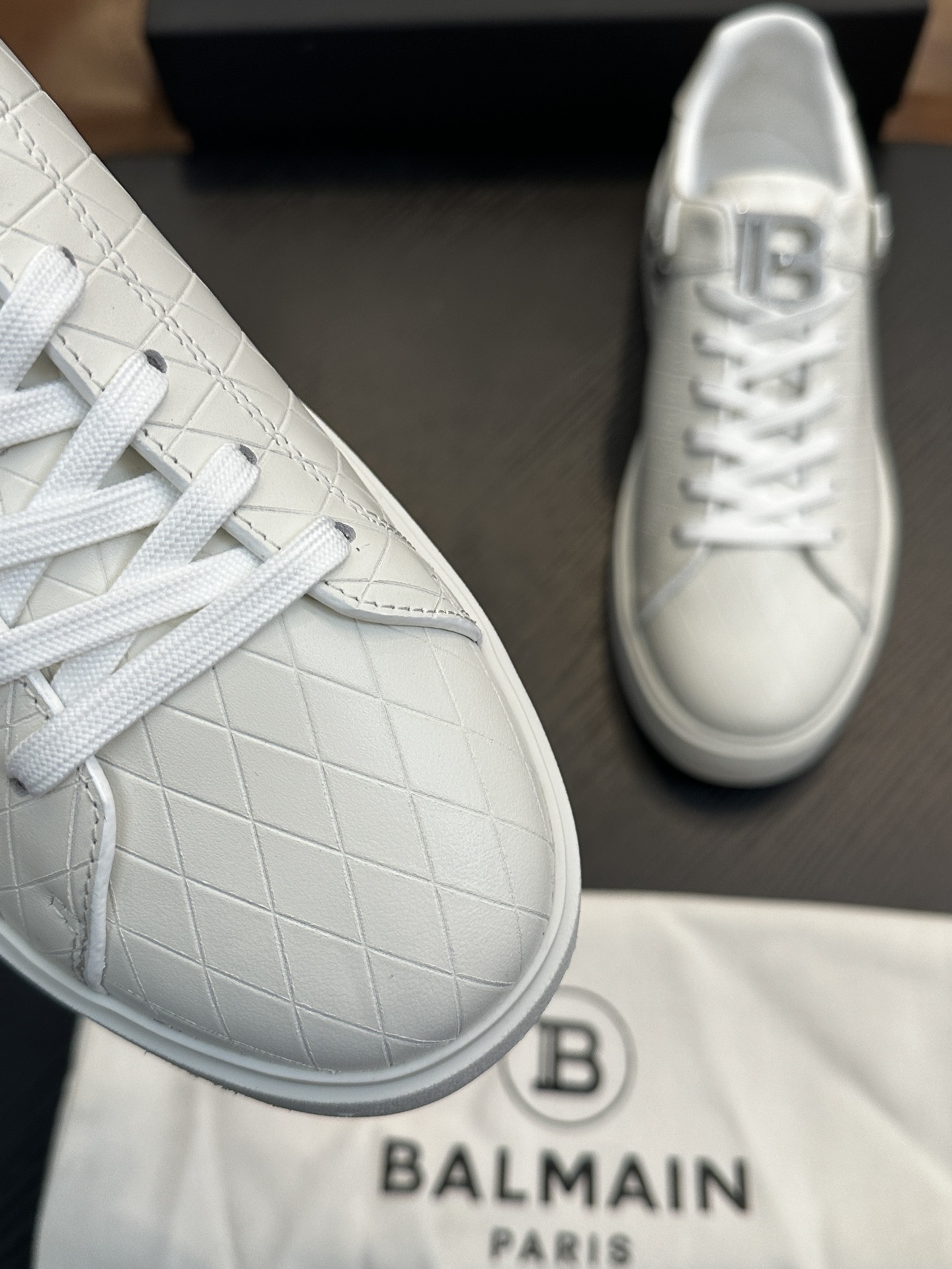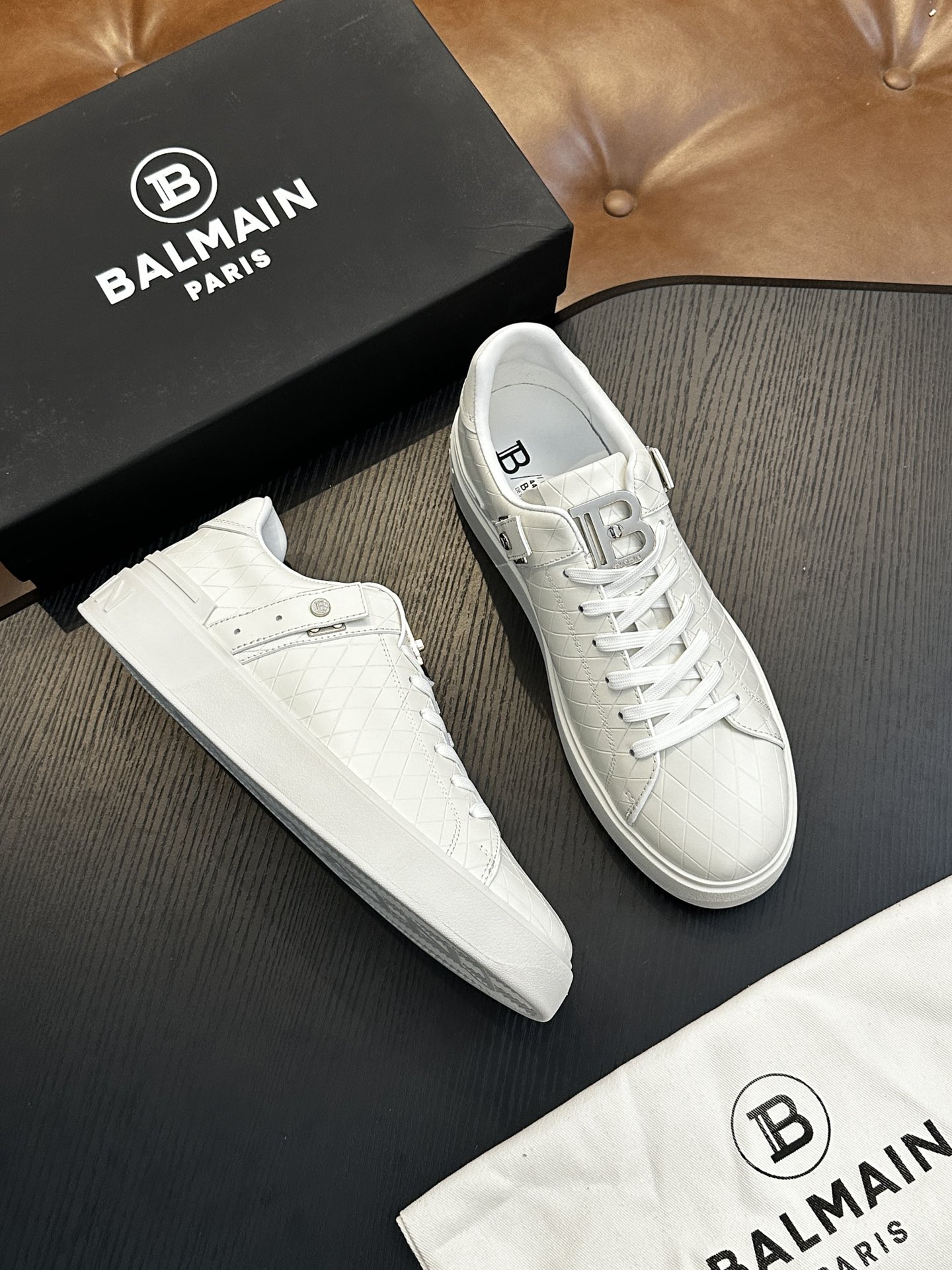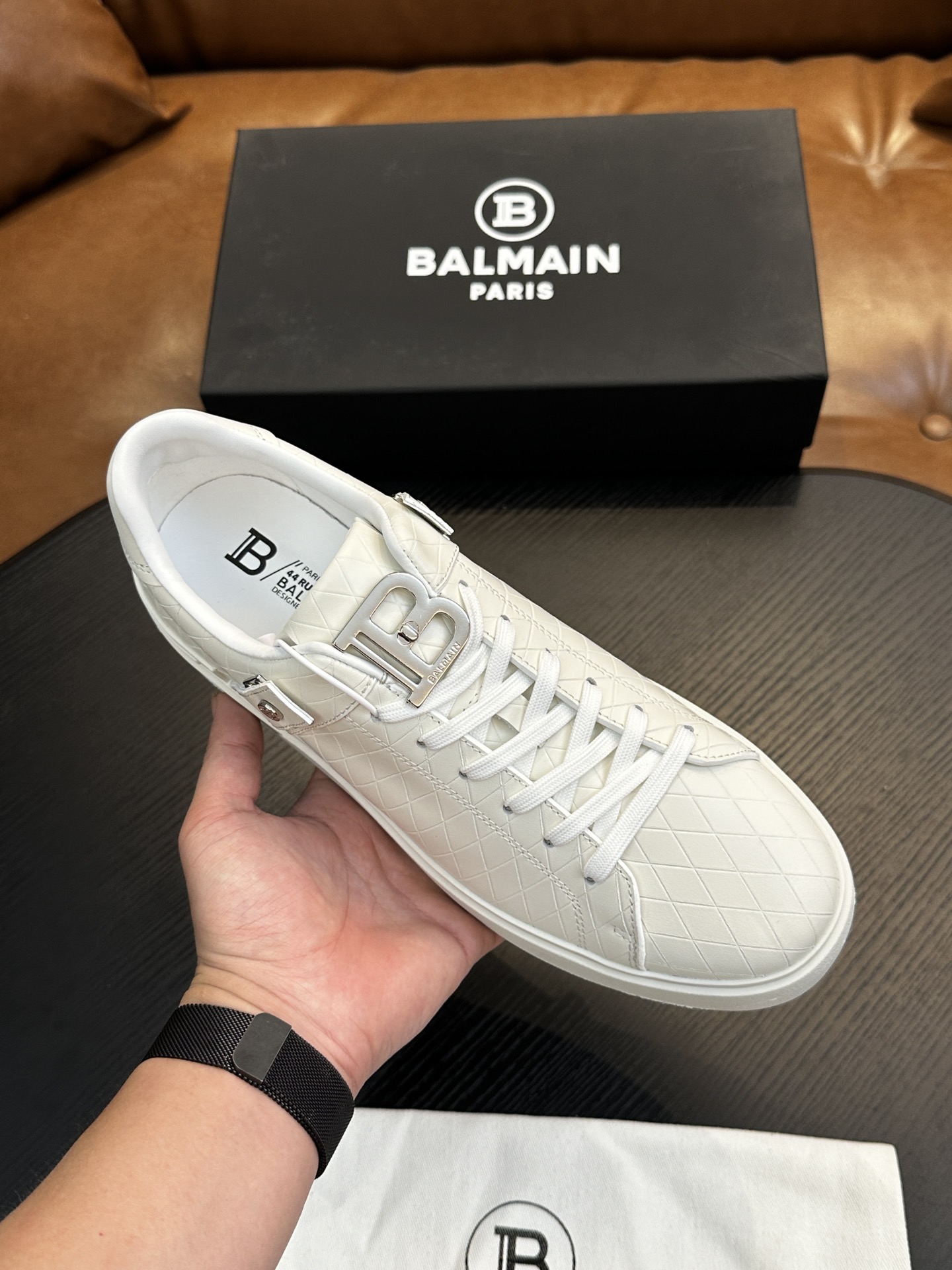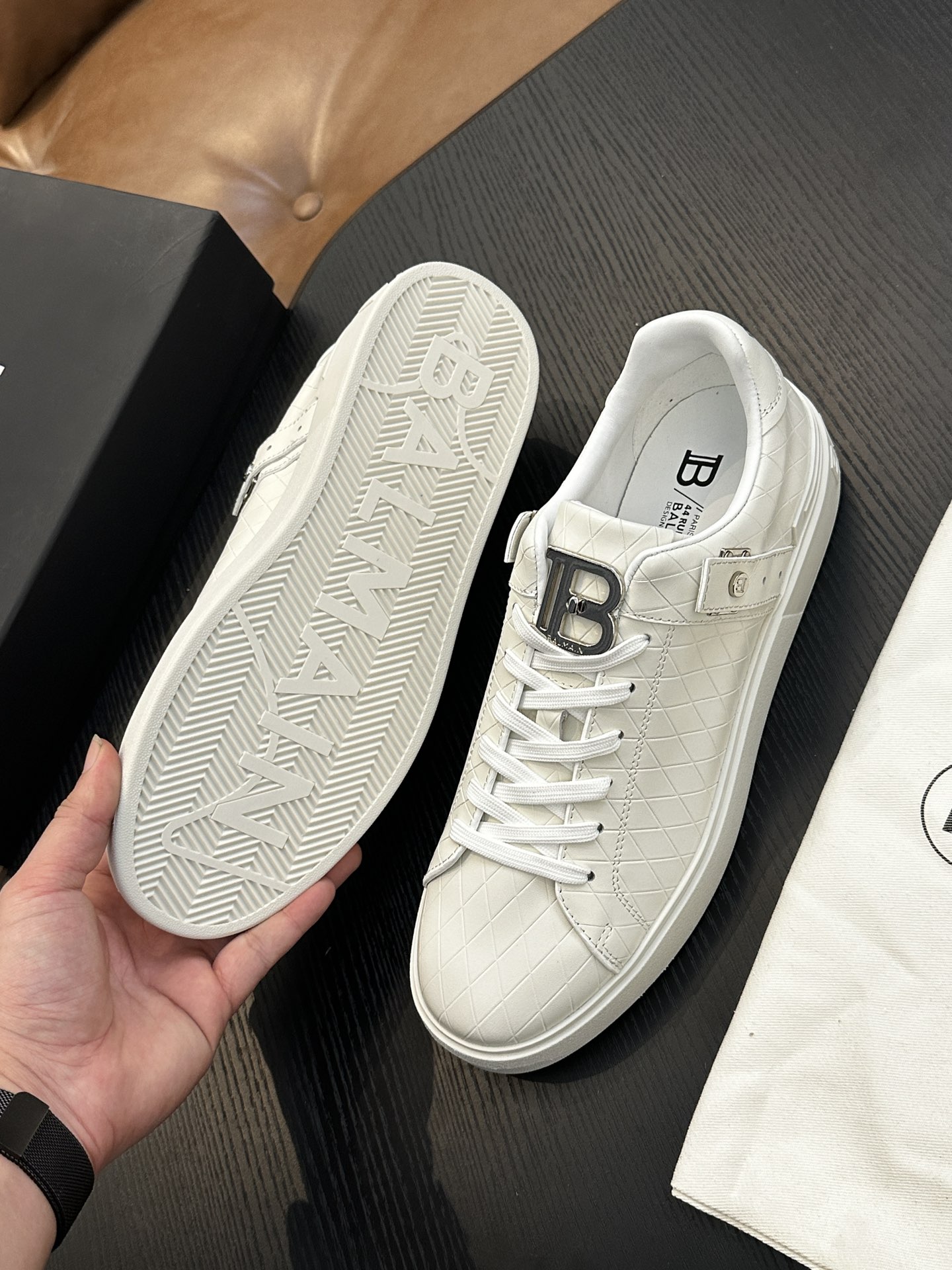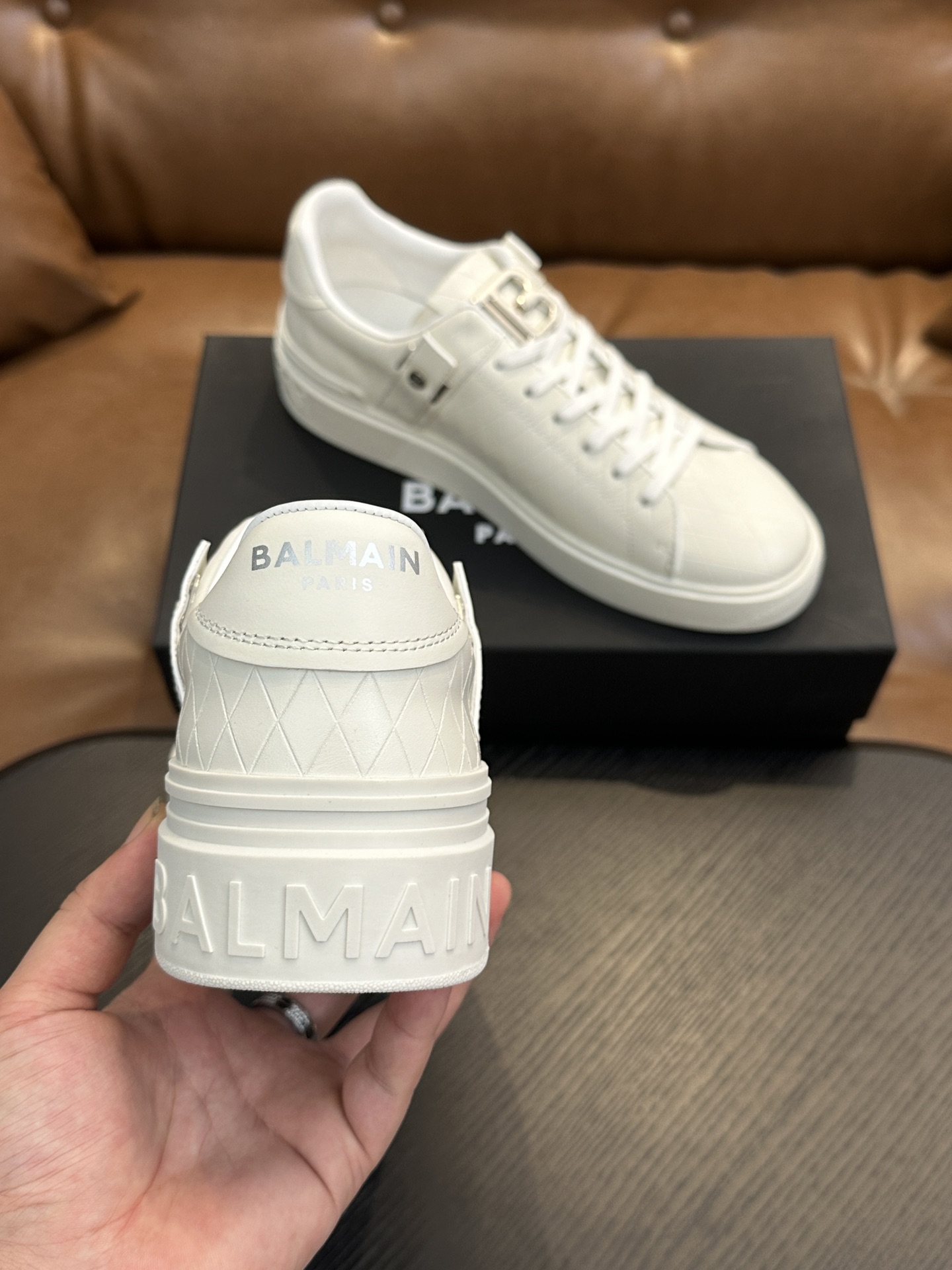 这款鞋子是AAAAA 1:1 质量 (非常棒). 使用了和原版一模一样的材料. 商标部分也保持了和巴尔曼/Balmain一样. 图片拍摄是实物鞋子拍摄, 您所收到的实物保证和我们图片一模一样.