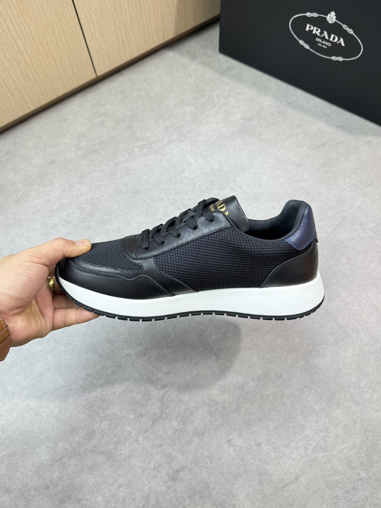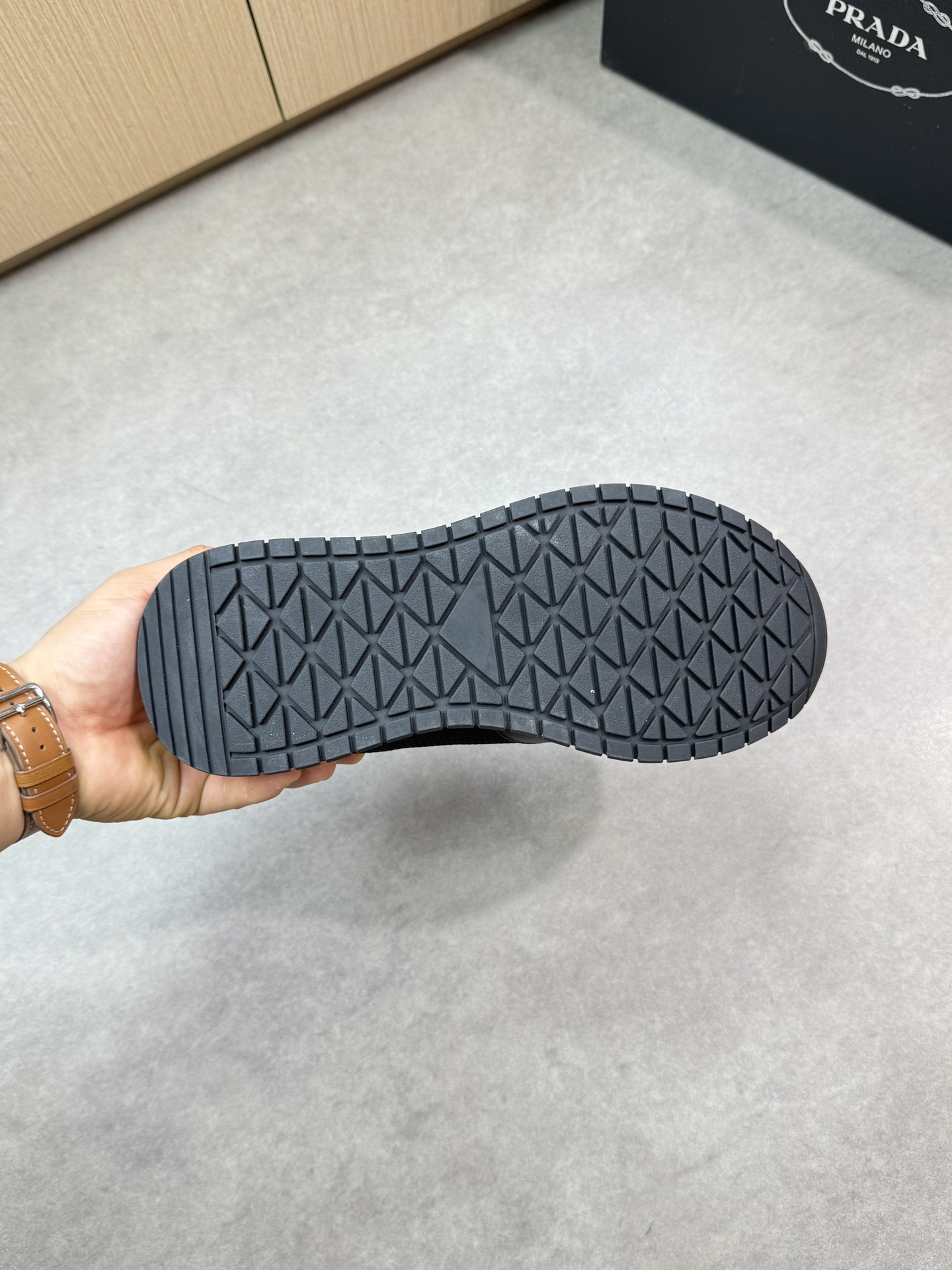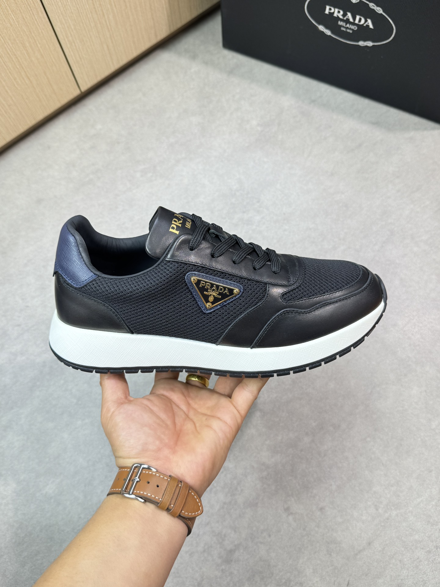 这款鞋子是AAAAA 1:1 质量 (非常棒). 使用了和原版一模一样的材料. 商标部分也保持了和普拉达/Prada一样. 图片拍摄是实物鞋子拍摄, 您所收到的实物保证和我们图片一模一样.