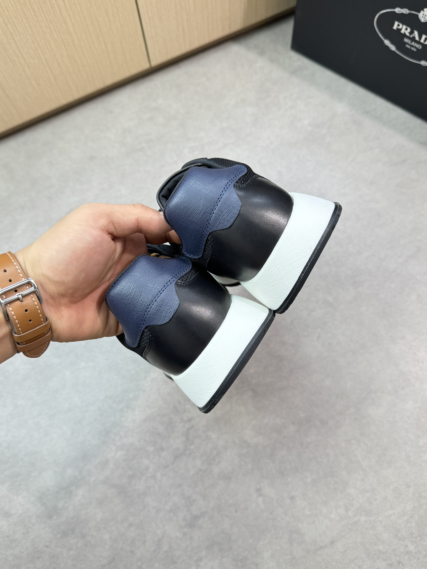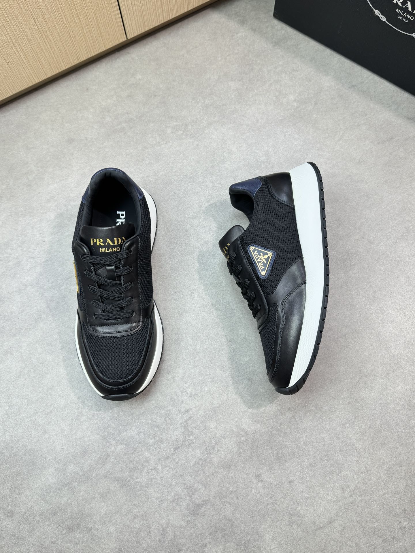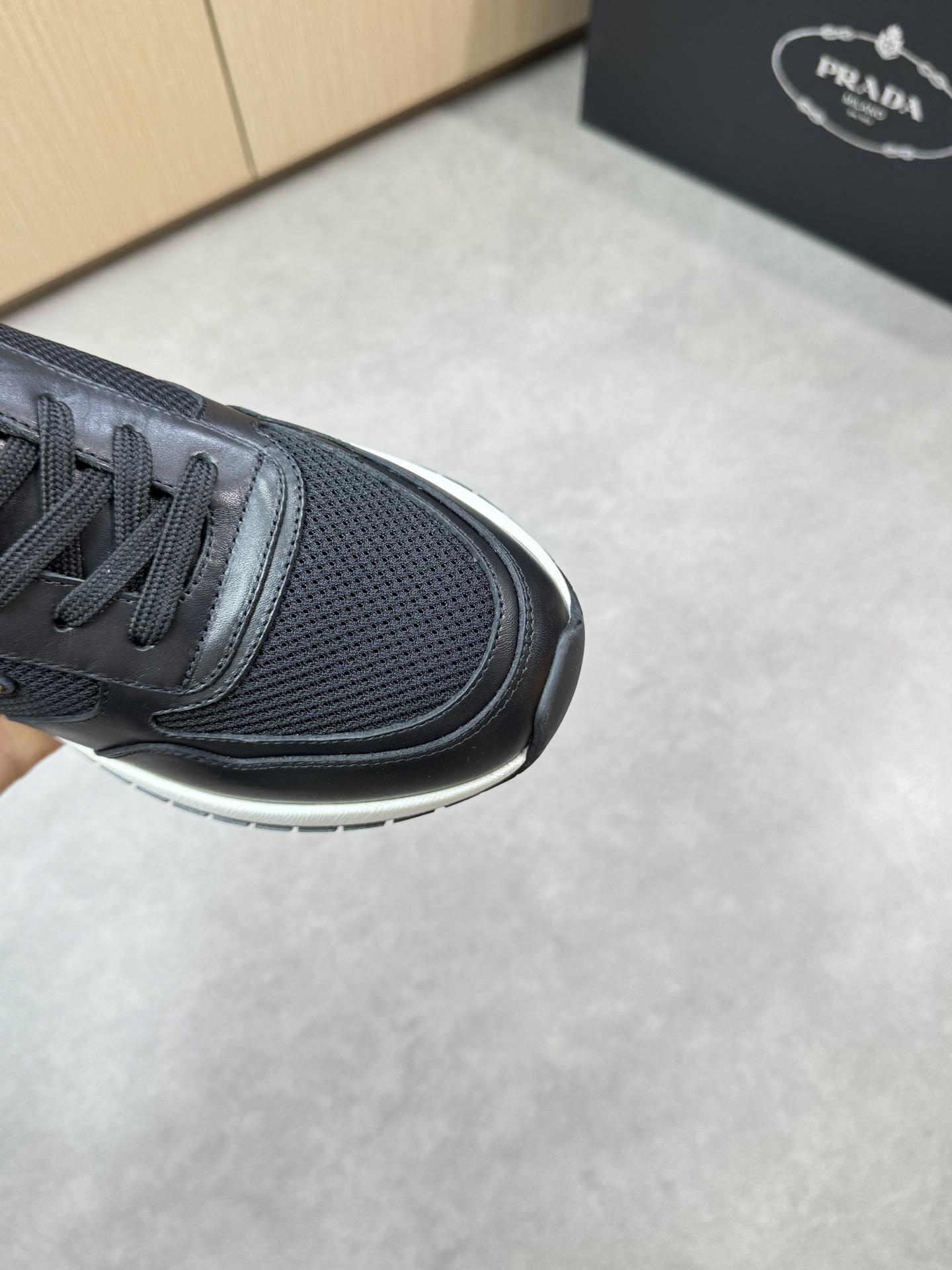 这款鞋子是AAAAA 1:1 质量 (非常棒). 使用了和原版一模一样的材料. 商标部分也保持了和普拉达/Prada一样. 图片拍摄是实物鞋子拍摄, 您所收到的实物保证和我们图片一模一样.