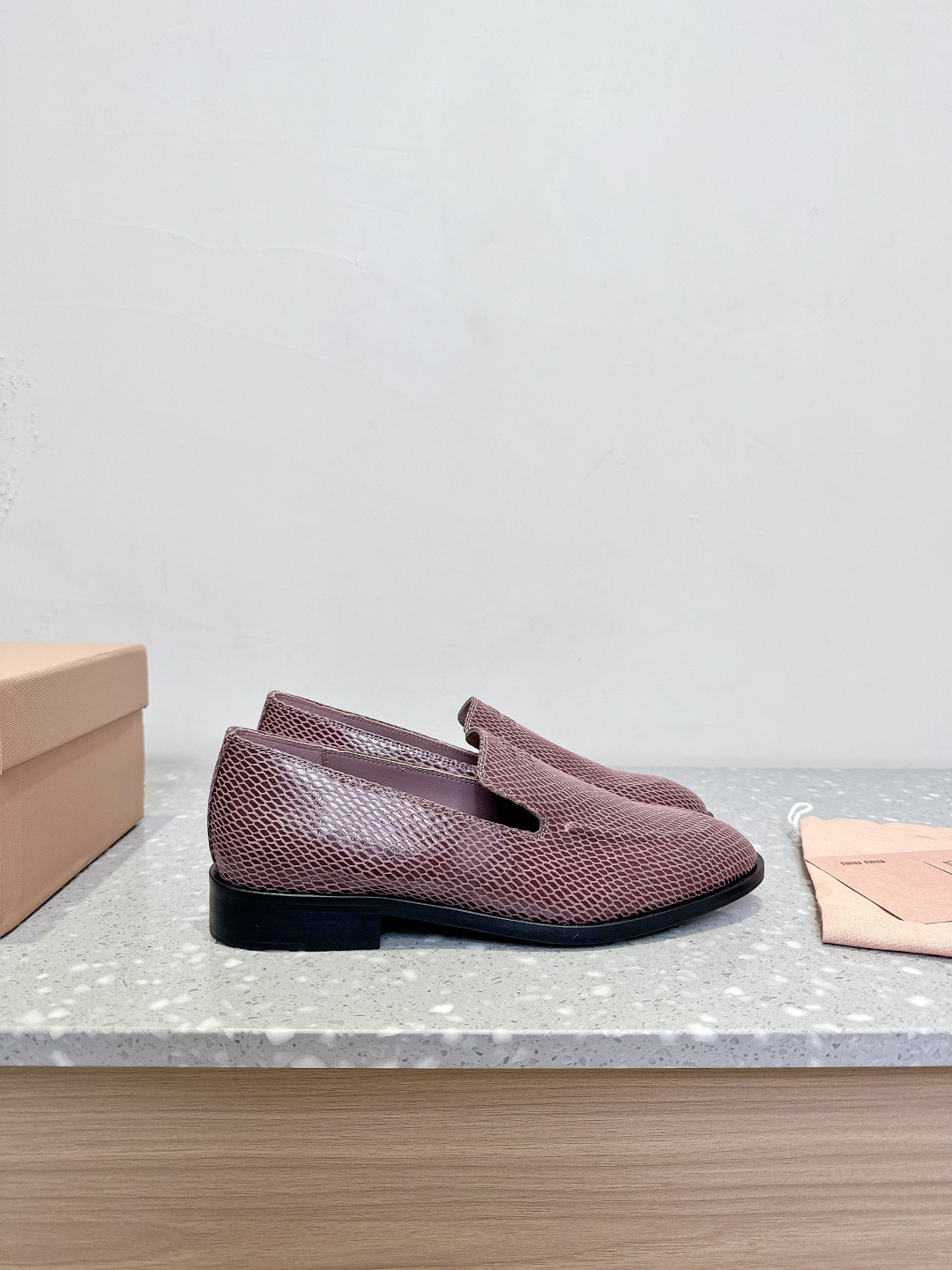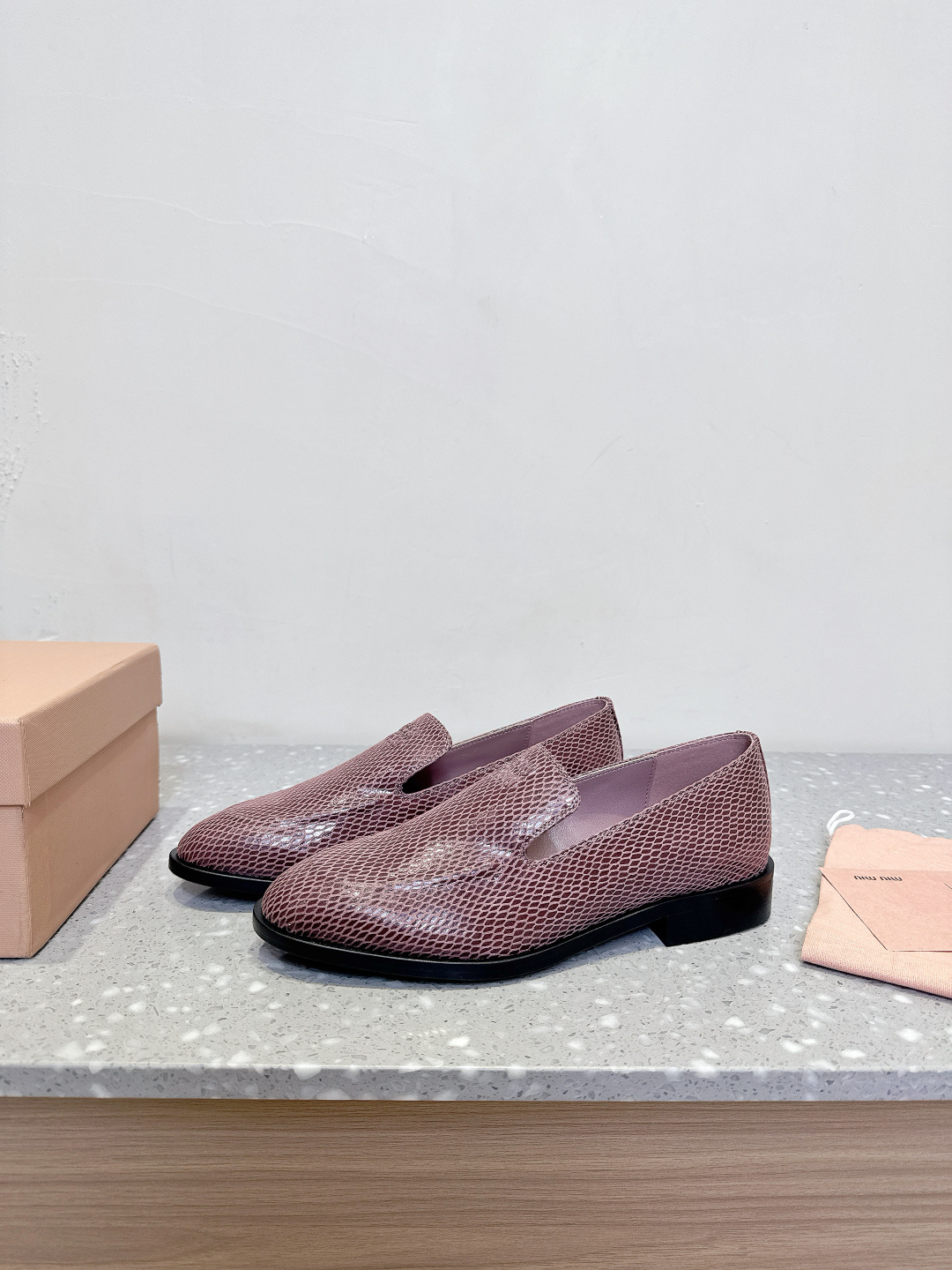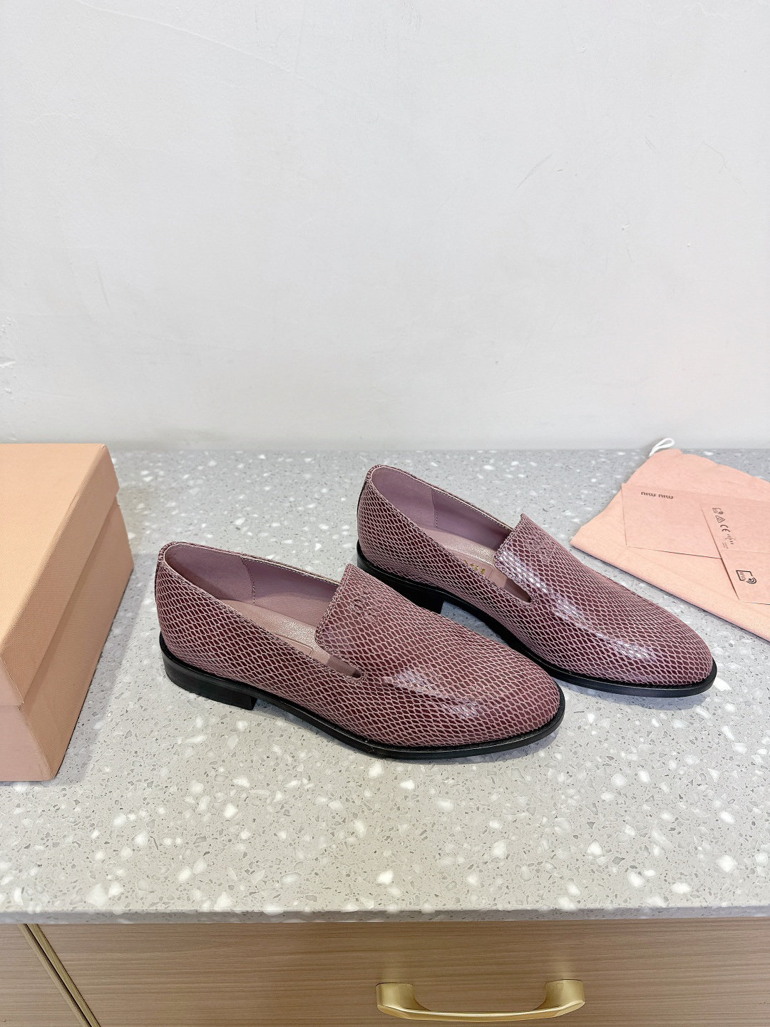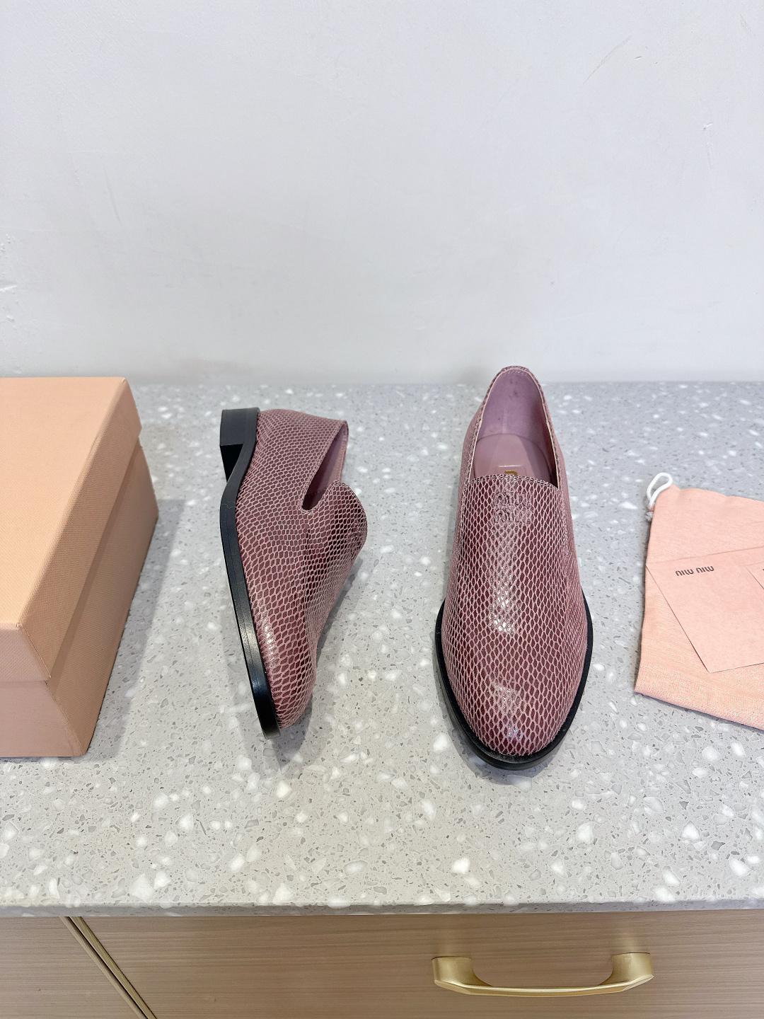 这款鞋子是AAAAA 1:1 质量 (非常棒). 使用了和原版一模一样的材料. 商标部分也保持了和缪缪/Miu Miu一样. 图片拍摄是实物鞋子拍摄, 您所收到的实物保证和我们图片一模一样.