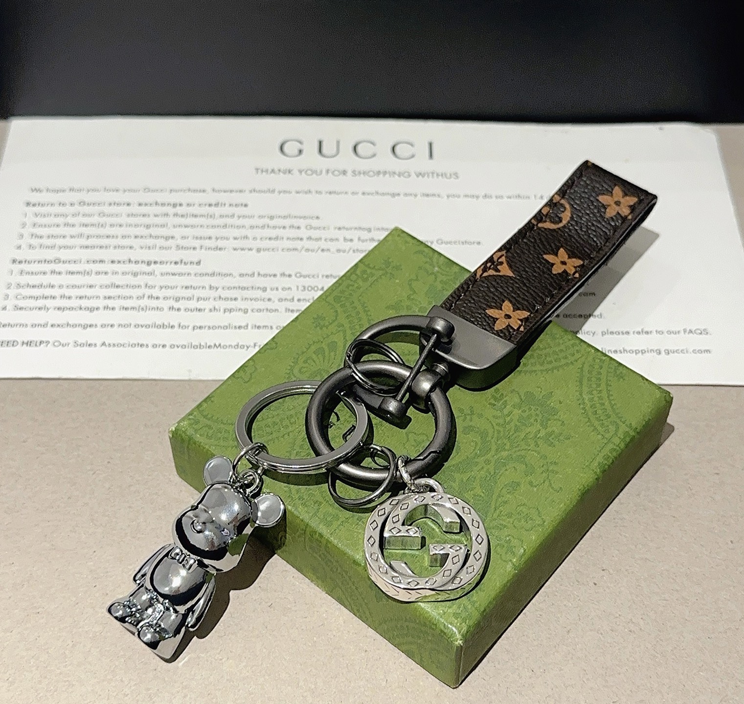 这款首饰是AAAAA 1:1 质量 (非常棒). 使用了和原版一模一样的材料. 商标部分也保持了和古奇/Gucci一样. 图片拍摄是实物首饰拍摄, 您所收到的实物保证和我们图片一模一样.