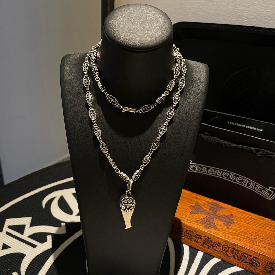 这款首饰是AAAAA 1:1 质量 (非常棒). 使用了和原版一模一样的材料. 商标部分也保持了和克罗心/Chrome Hearts一样. 图片拍摄是实物首饰拍摄, 您所收到的实物保证和我们图片一模一样.