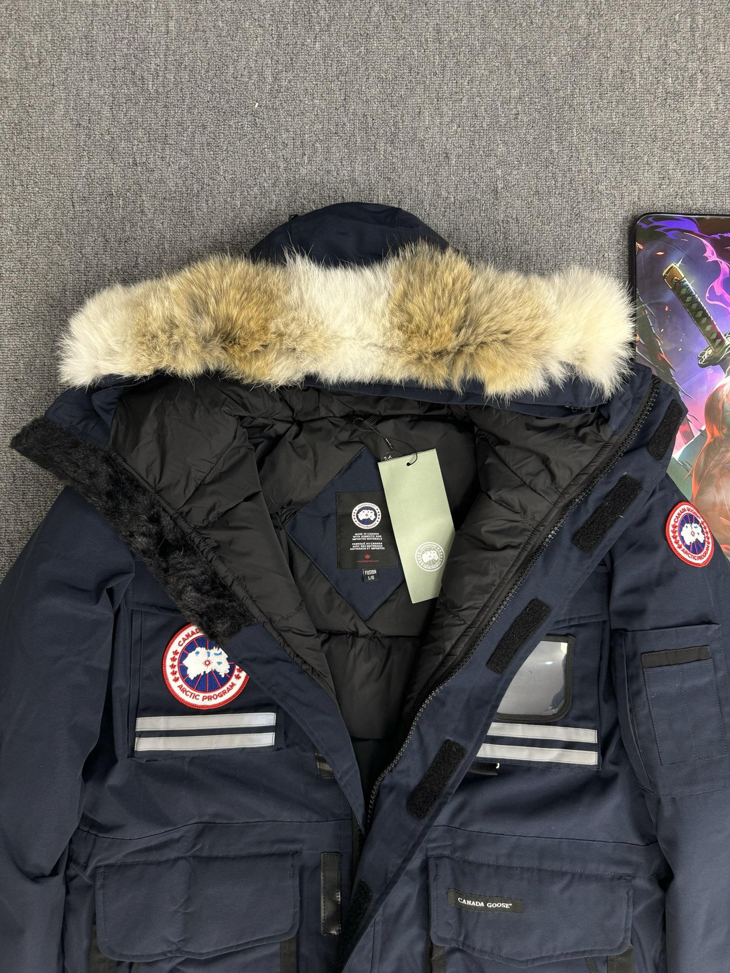 这款衣服是AAAAA 1:1 质量 (非常棒). 使用了和原版一模一样的材料. 商标部分也保持了和Canada Goose一样. 图片拍摄是实物衣服拍摄, 您所收到的实物保证和我们图片一模一样.