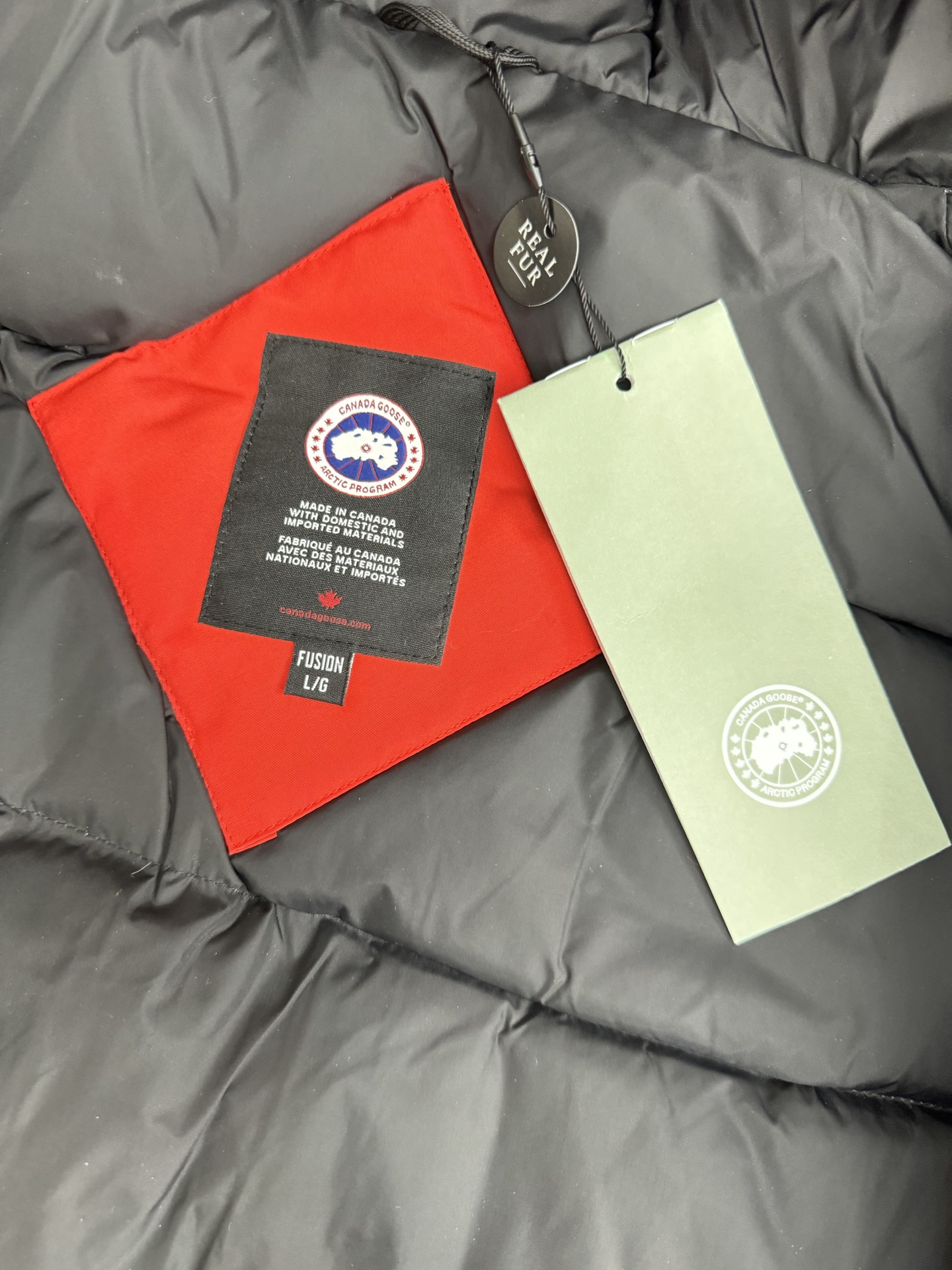 这款衣服是AAAAA 1:1 质量 (非常棒). 使用了和原版一模一样的材料. 商标部分也保持了和Canada Goose一样. 图片拍摄是实物衣服拍摄, 您所收到的实物保证和我们图片一模一样.