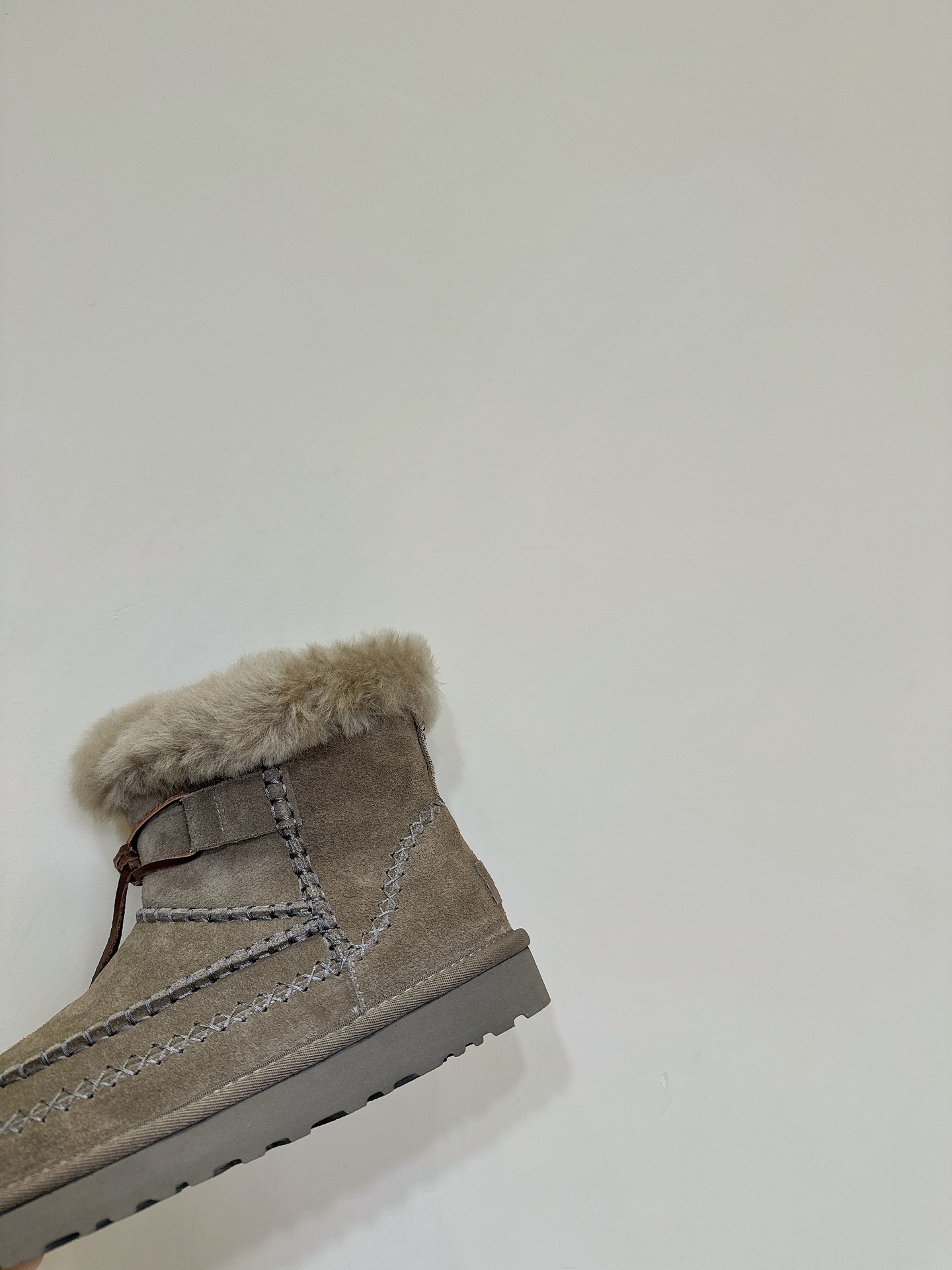 这款鞋子是AAAAA 1:1 质量 (非常棒). 使用了和原版一模一样的材料. 商标部分也保持了和UGG雪地靴一样. 图片拍摄是实物鞋子拍摄, 您所收到的实物保证和我们图片一模一样.