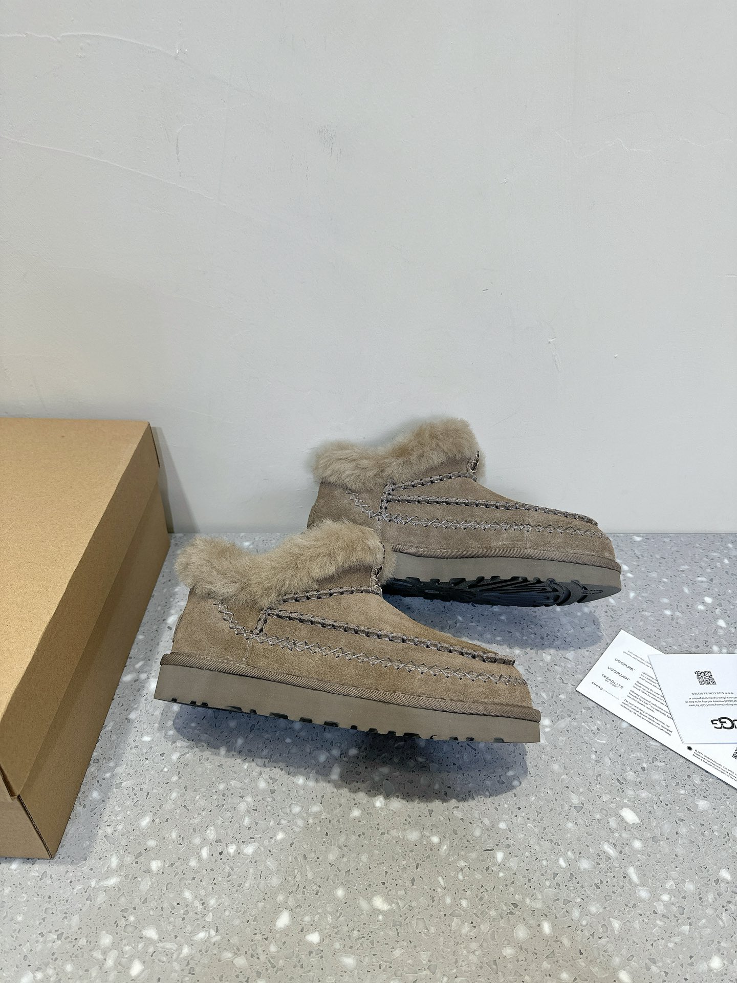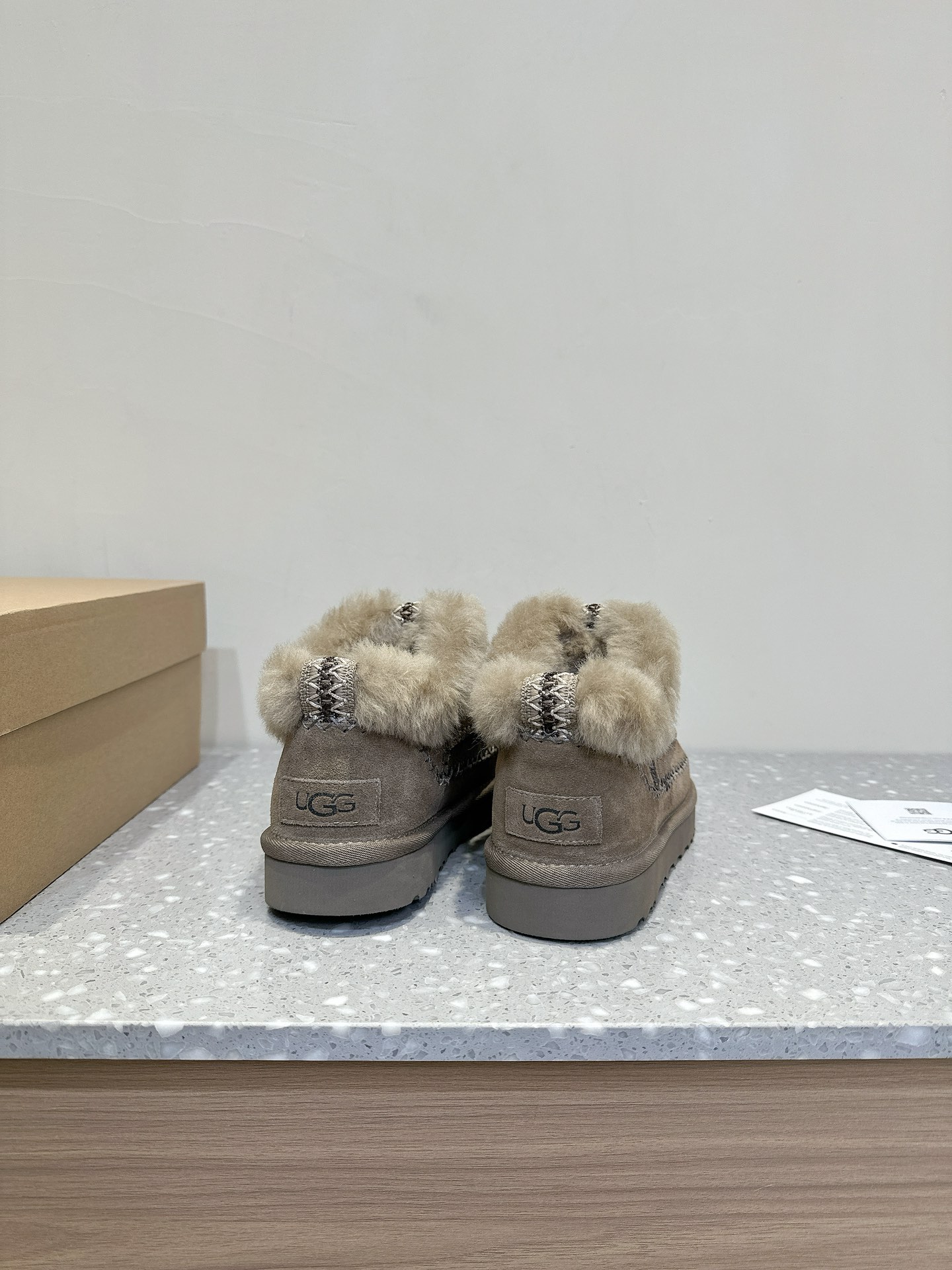 这款鞋子是AAAAA 1:1 质量 (非常棒). 使用了和原版一模一样的材料. 商标部分也保持了和UGG雪地靴一样. 图片拍摄是实物鞋子拍摄, 您所收到的实物保证和我们图片一模一样.