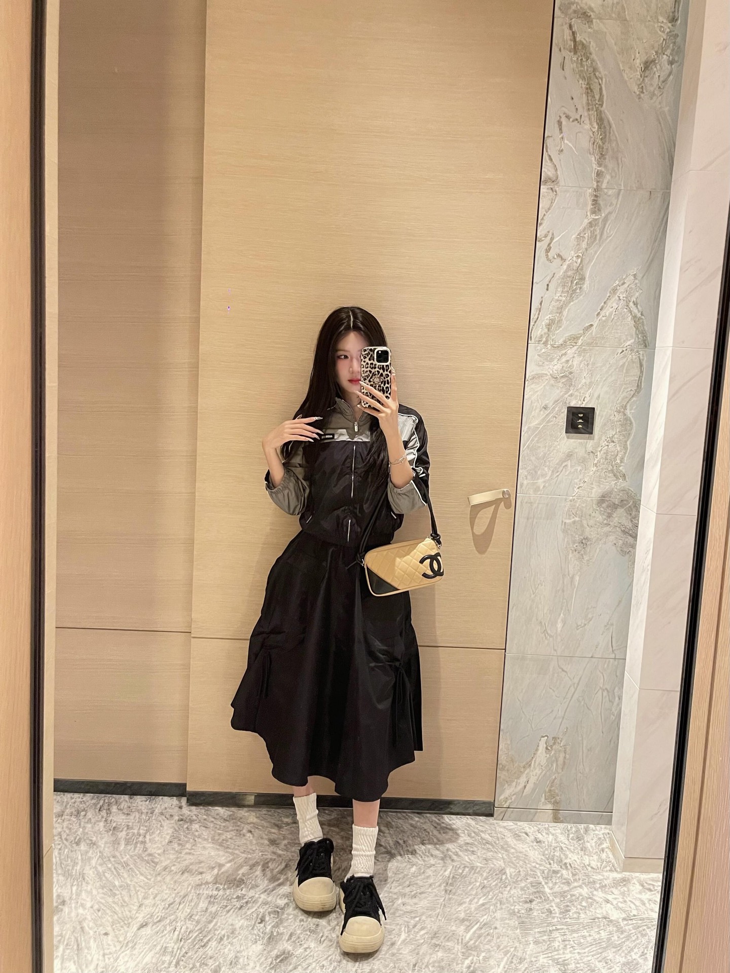 这款衣服是AAAAA 1:1 质量 (非常棒). 使用了和原版一模一样的材料. 商标部分也保持了和缪缪/Miu Miu一样. 图片拍摄是实物衣服拍摄, 您所收到的实物保证和我们图片一模一样.