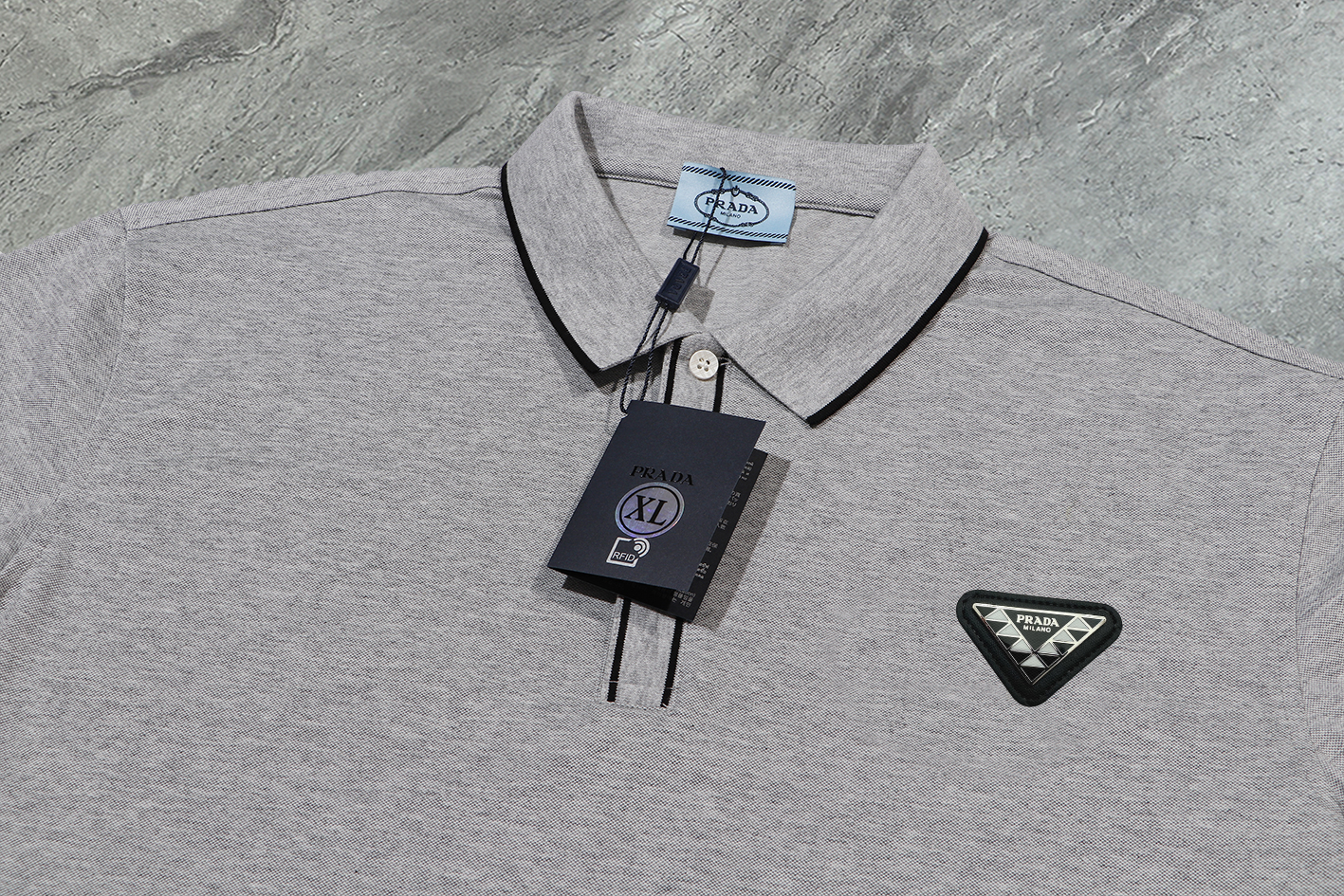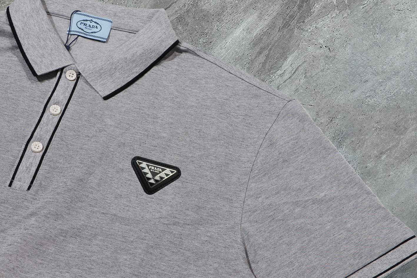 这款衣服是AAAAA 1:1 质量 (非常棒). 使用了和原版一模一样的材料. 商标部分也保持了和普拉达/Prada一样. 图片拍摄是实物衣服拍摄, 您所收到的实物保证和我们图片一模一样.