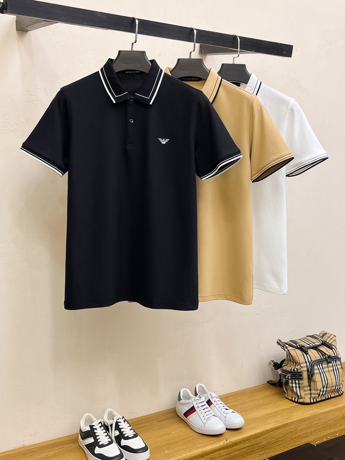 这款衣服是AAAAA 1:1 质量 (非常棒). 使用了和原版一模一样的材料. 商标部分也保持了和阿玛尼/Armani一样. 图片拍摄是实物衣服拍摄, 您所收到的实物保证和我们图片一模一样.
