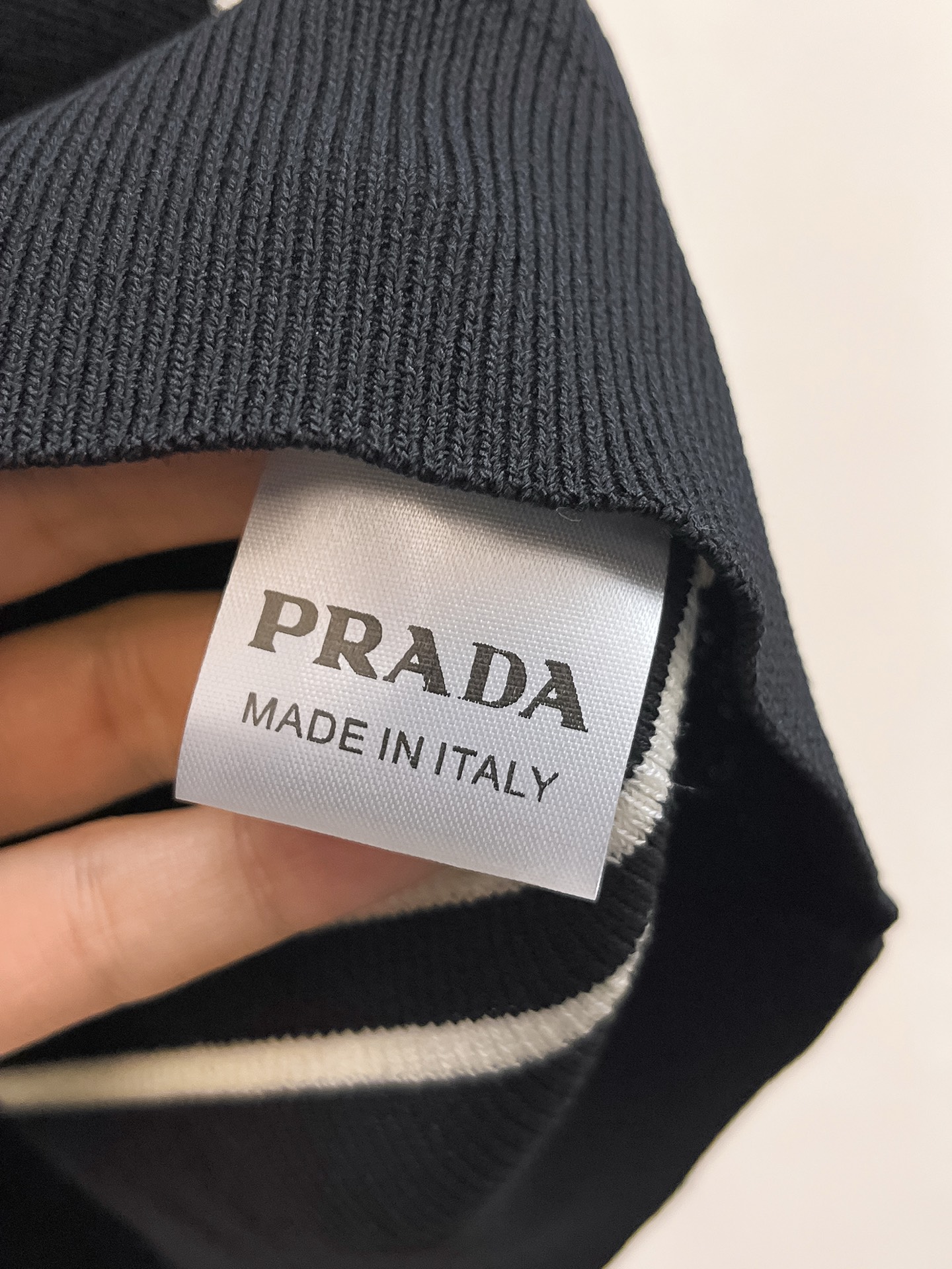 这款衣服是AAAAA 1:1 质量 (非常棒). 使用了和原版一模一样的材料. 商标部分也保持了和普拉达/Prada一样. 图片拍摄是实物衣服拍摄, 您所收到的实物保证和我们图片一模一样.