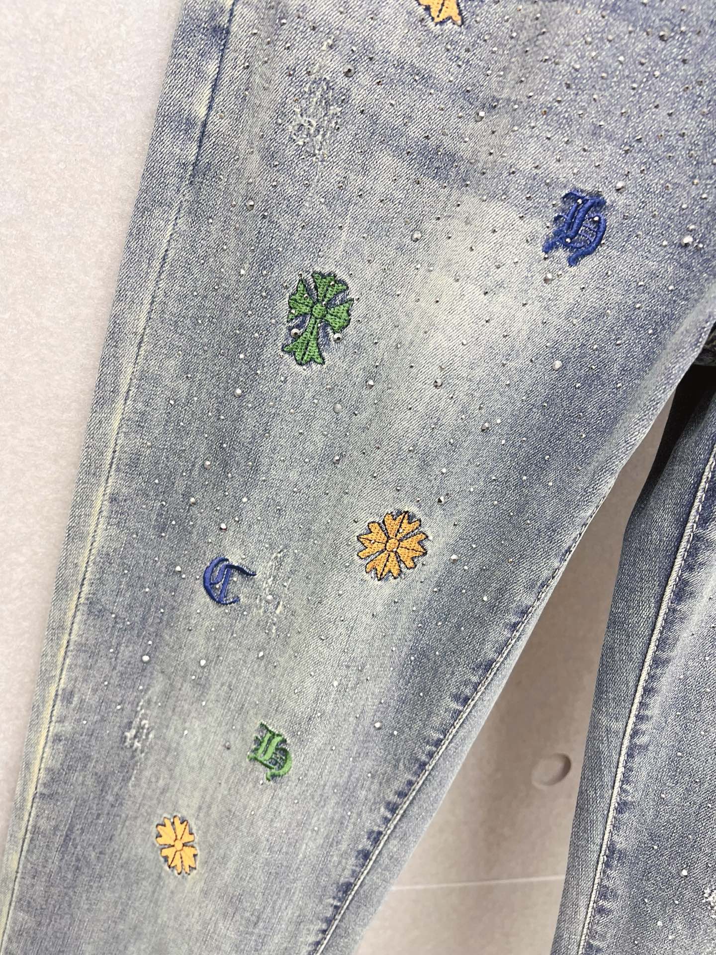 这款衣服是AAAAA 1:1 质量 (非常棒). 使用了和原版一模一样的材料. 商标部分也保持了和克罗心/Chrome Hearts一样. 图片拍摄是实物衣服拍摄, 您所收到的实物保证和我们图片一模一样.