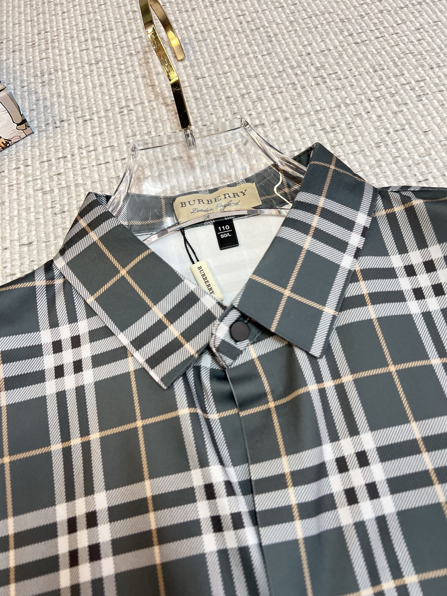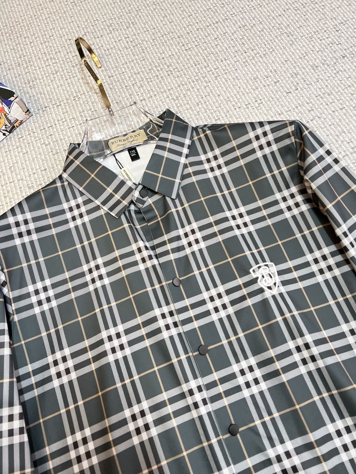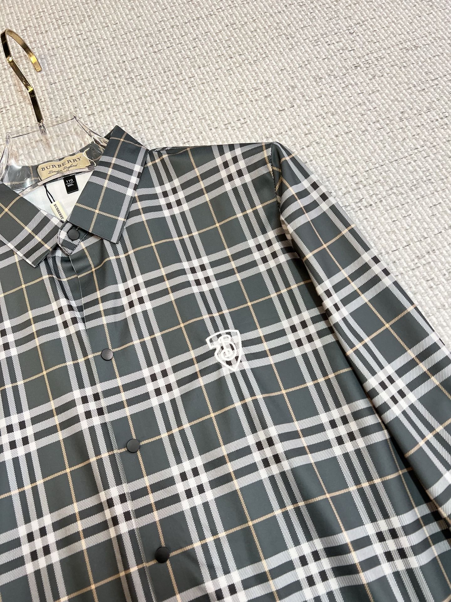 这款衣服是AAAAA 1:1 质量 (非常棒). 使用了和原版一模一样的材料. 商标部分也保持了和巴宝莉/Burberry一样. 图片拍摄是实物衣服拍摄, 您所收到的实物保证和我们图片一模一样.