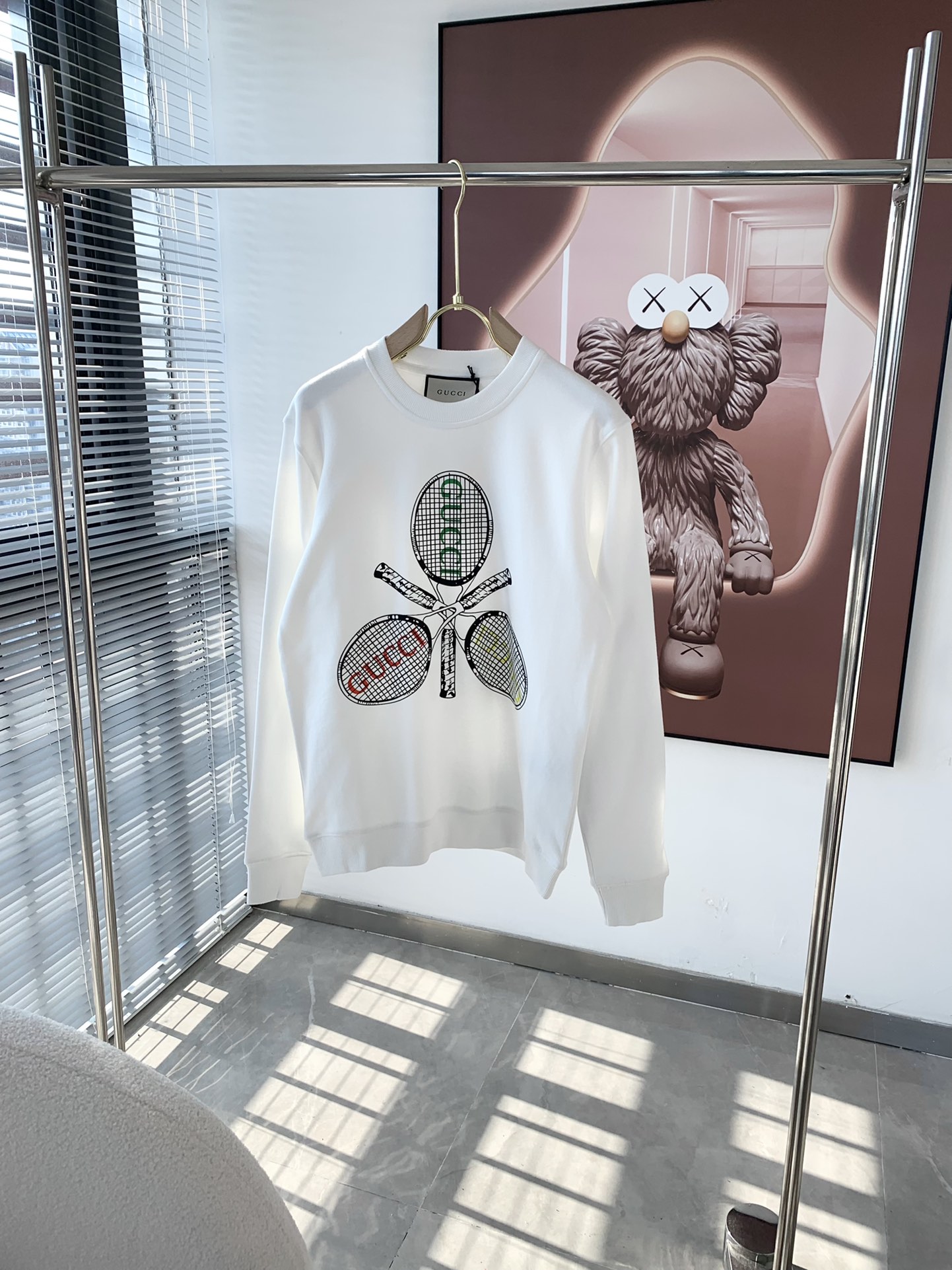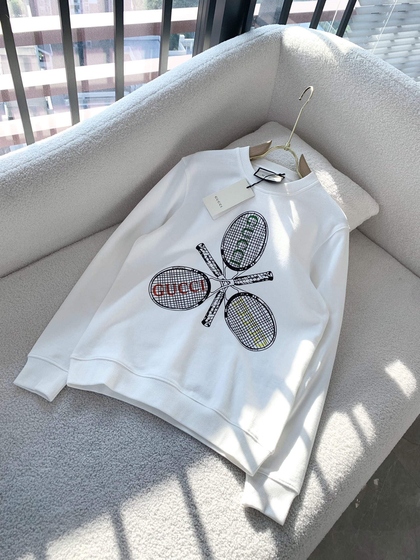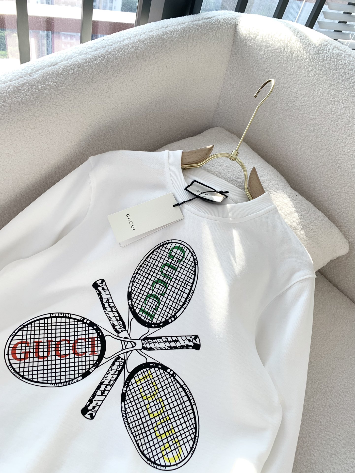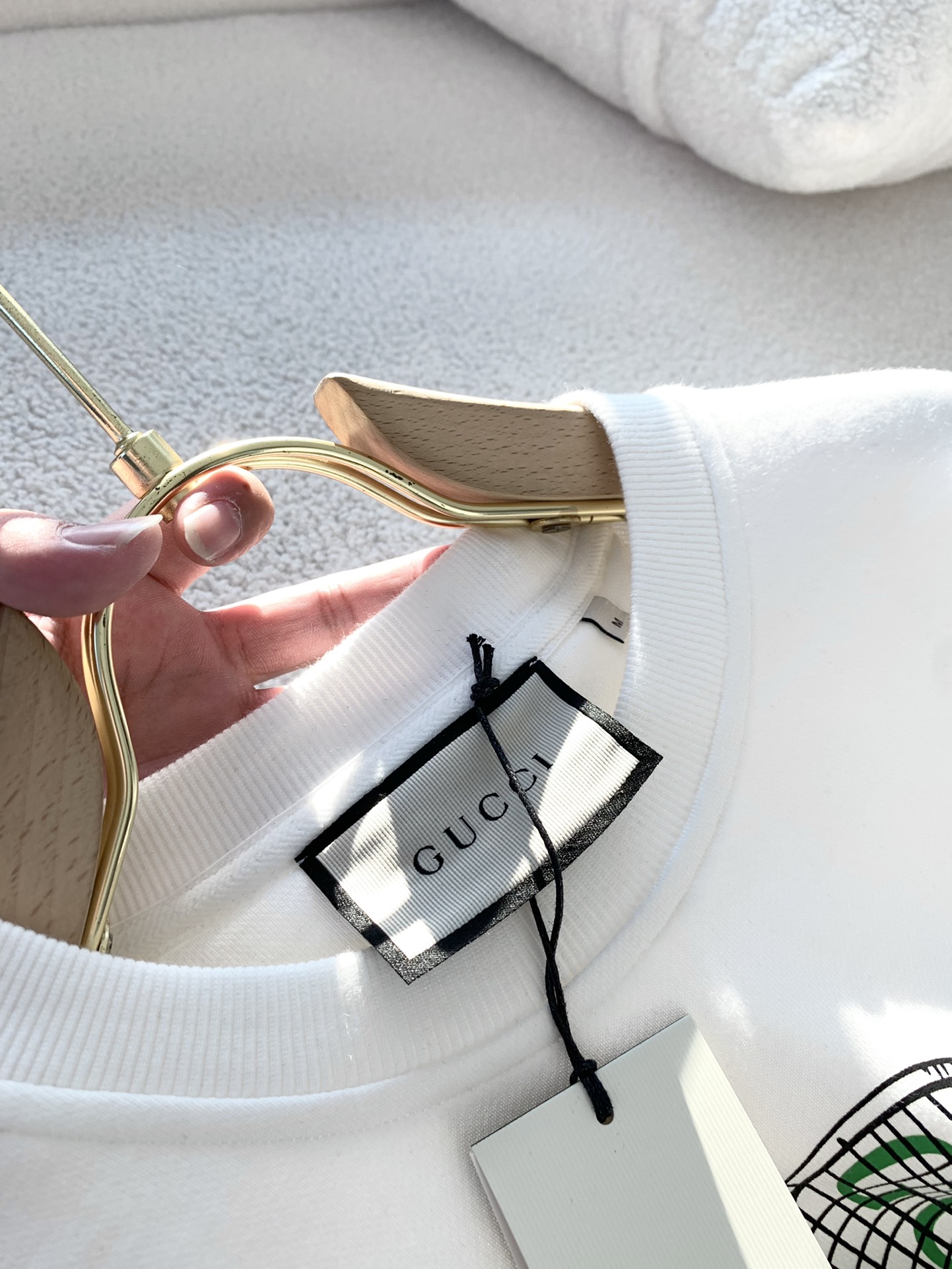 这款衣服是AAAAA 1:1 质量 (非常棒). 使用了和原版一模一样的材料. 商标部分也保持了和古奇/Gucci一样. 图片拍摄是实物衣服拍摄, 您所收到的实物保证和我们图片一模一样.