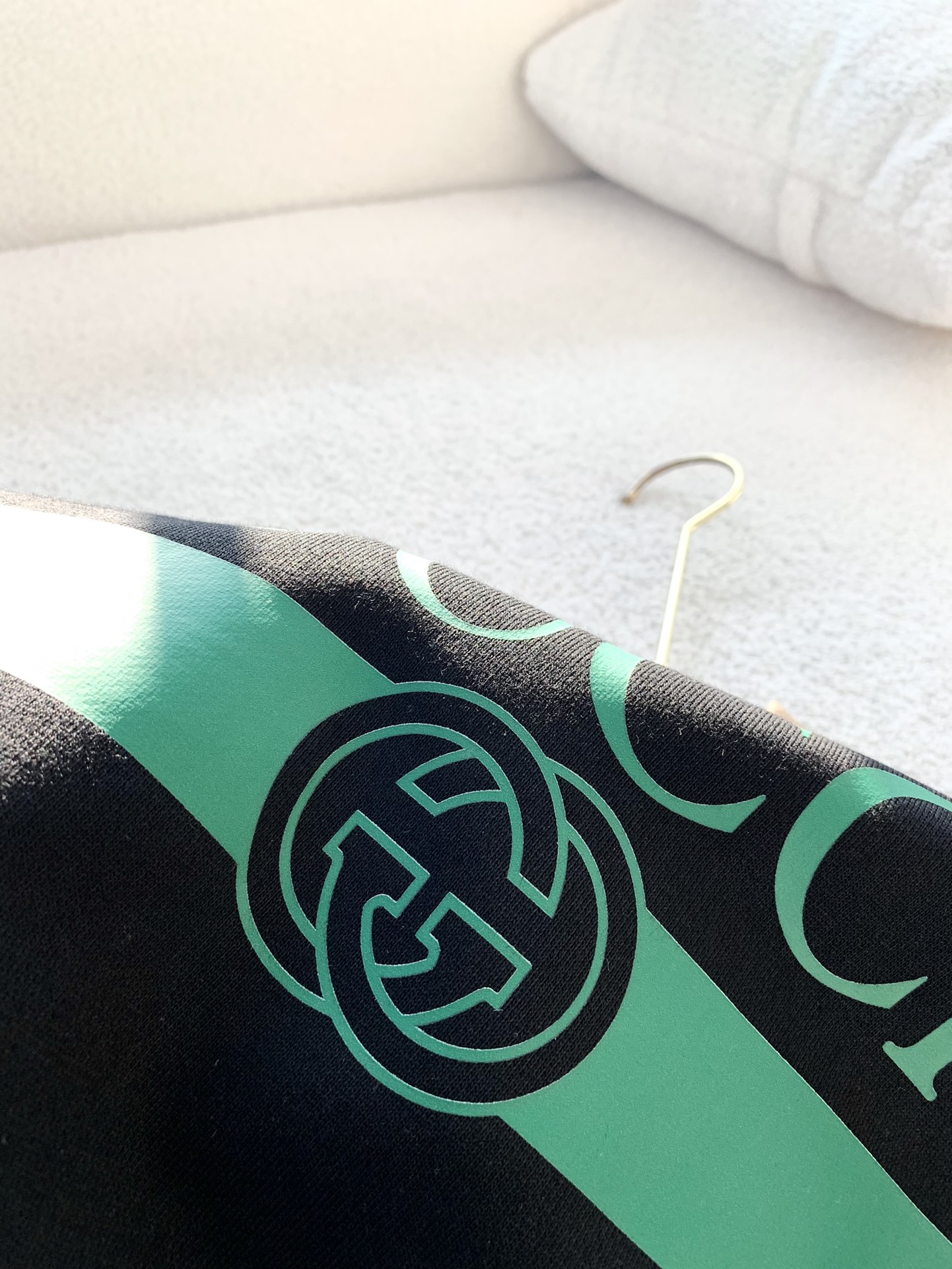 这款衣服是AAAAA 1:1 质量 (非常棒). 使用了和原版一模一样的材料. 商标部分也保持了和古奇/Gucci一样. 图片拍摄是实物衣服拍摄, 您所收到的实物保证和我们图片一模一样.