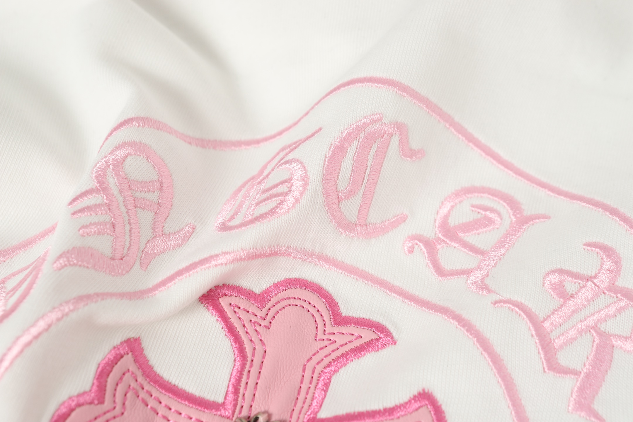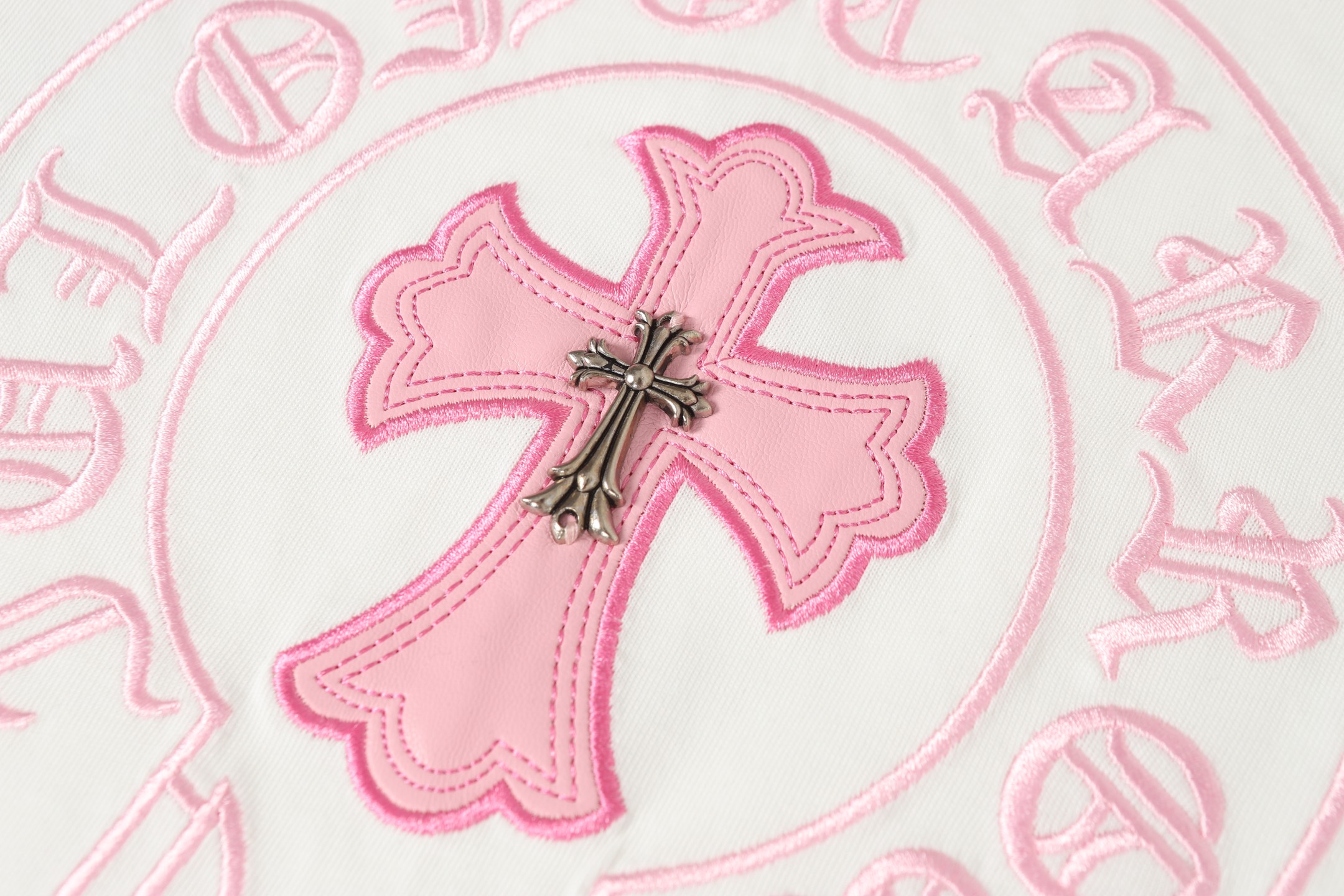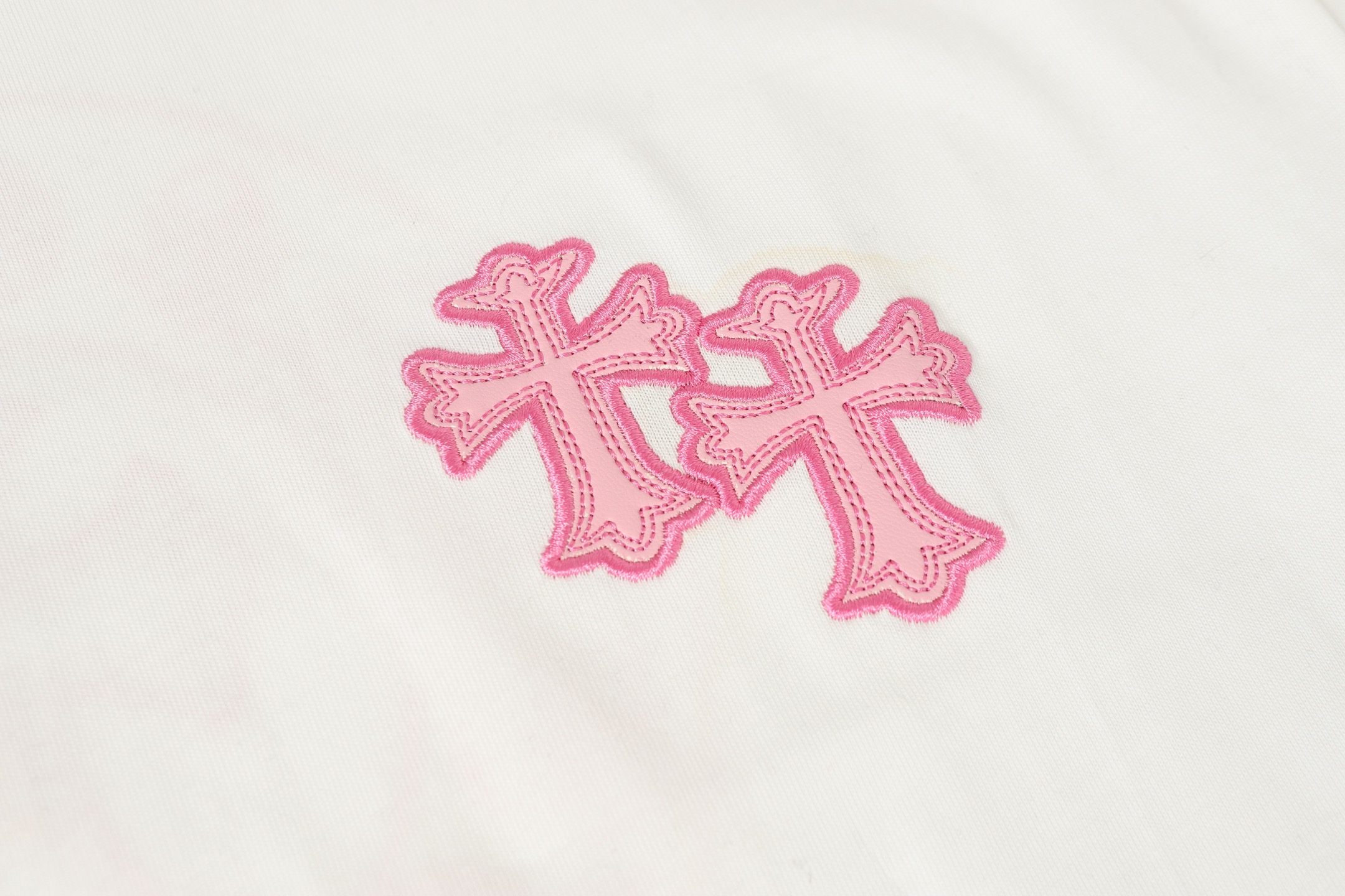 这款衣服是AAAAA 1:1 质量 (非常棒). 使用了和原版一模一样的材料. 商标部分也保持了和克罗心/Chrome Hearts一样. 图片拍摄是实物衣服拍摄, 您所收到的实物保证和我们图片一模一样.