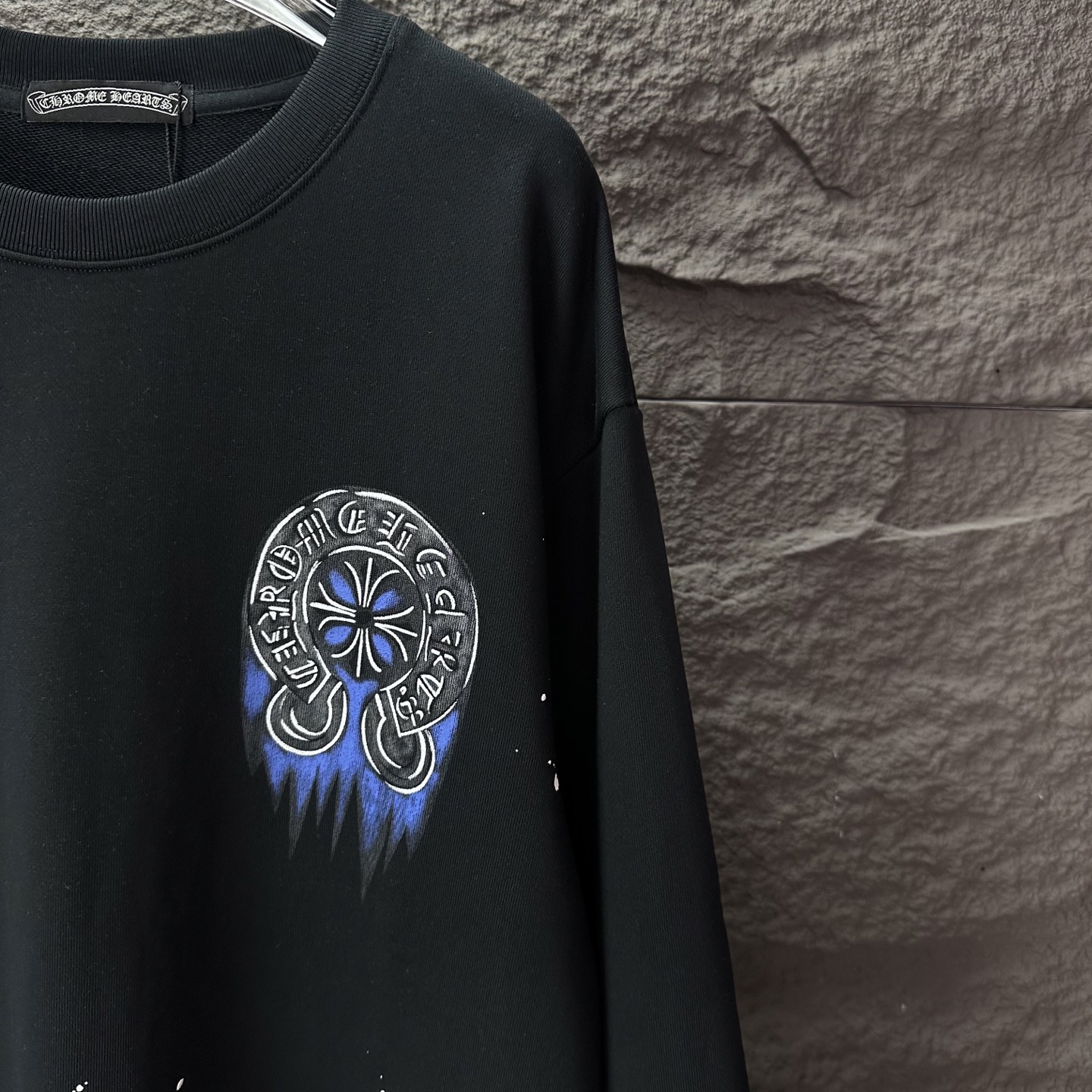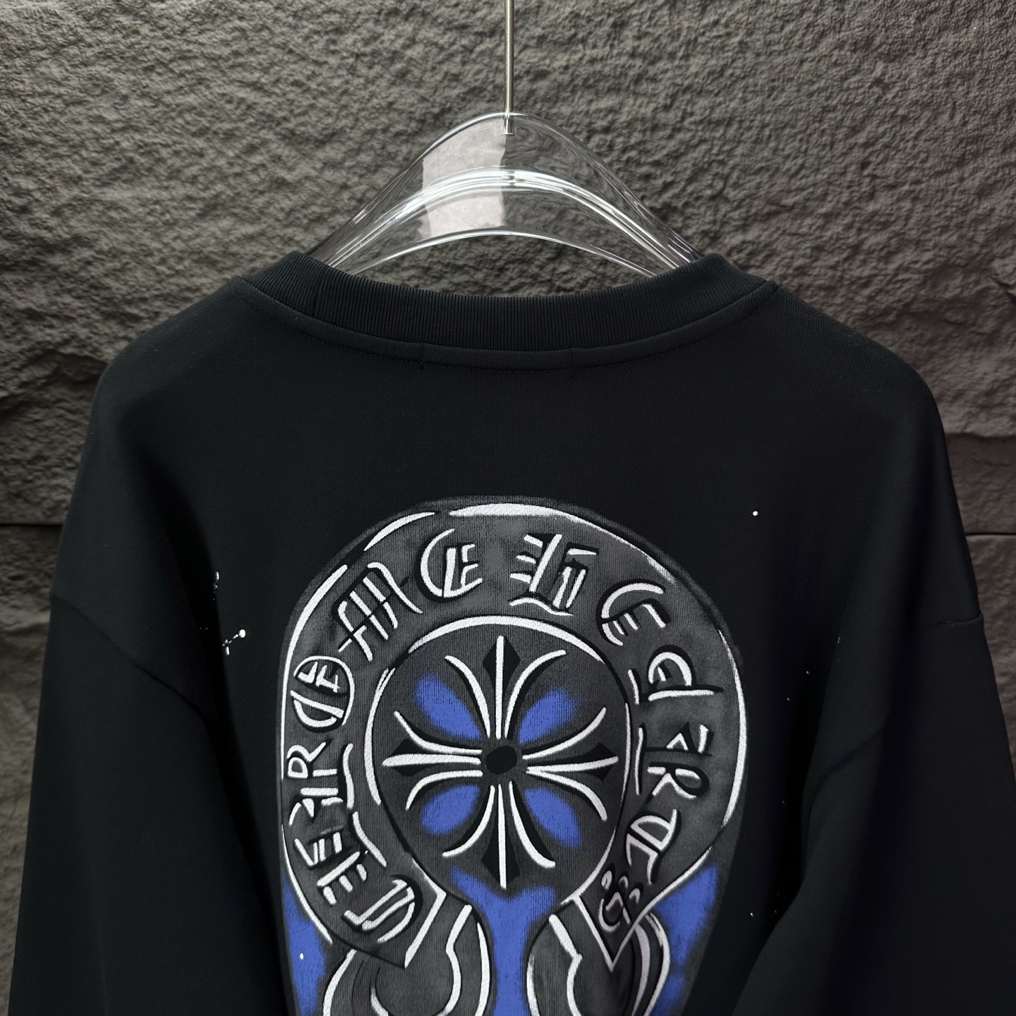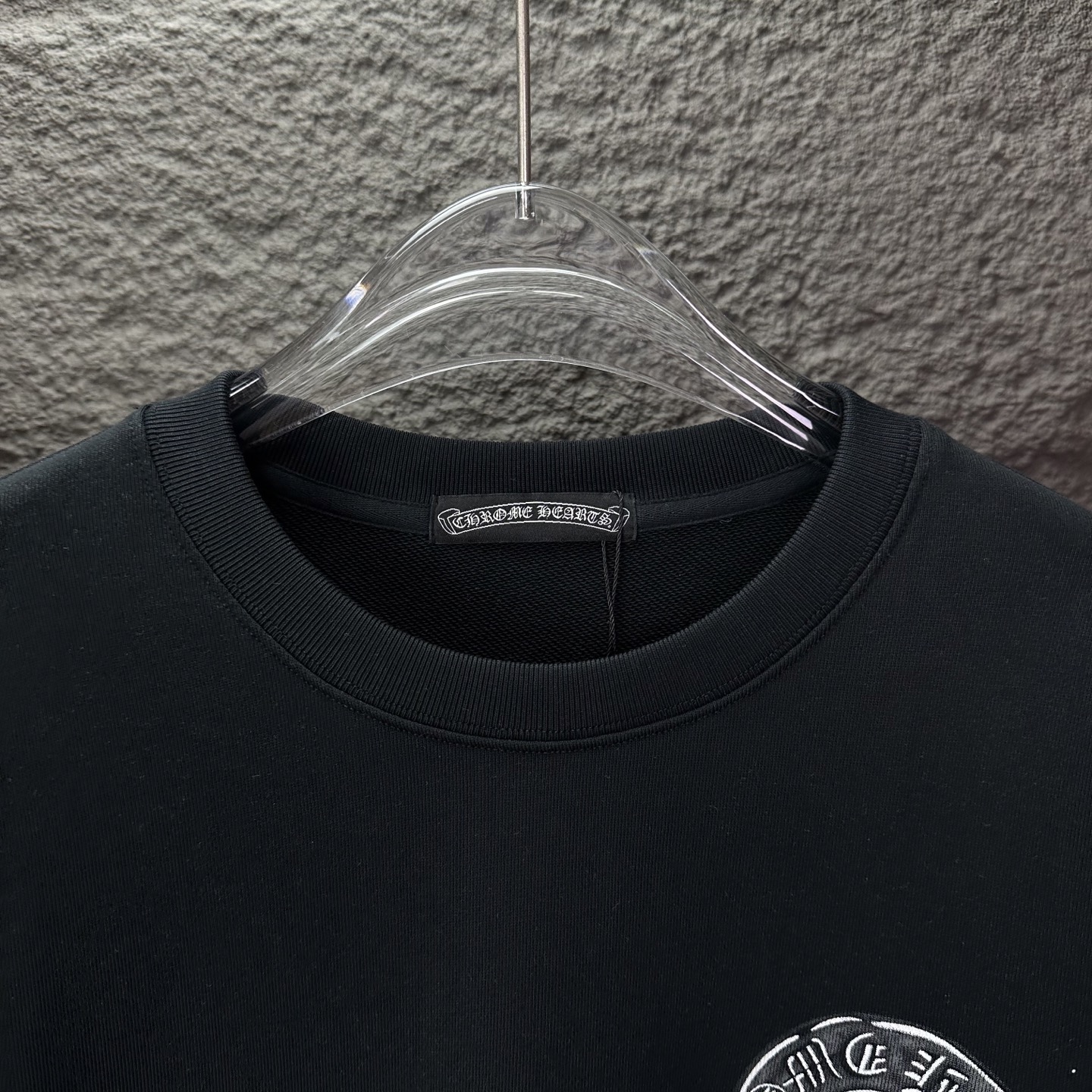 这款衣服是AAAAA 1:1 质量 (非常棒). 使用了和原版一模一样的材料. 商标部分也保持了和克罗心/Chrome Hearts一样. 图片拍摄是实物衣服拍摄, 您所收到的实物保证和我们图片一模一样.