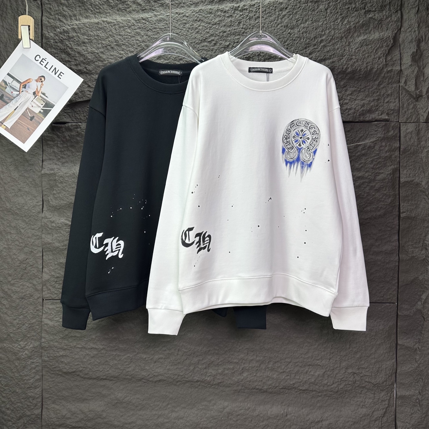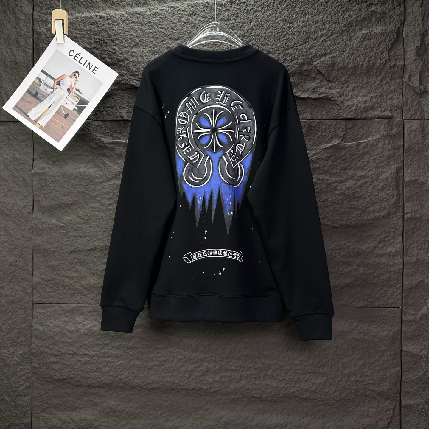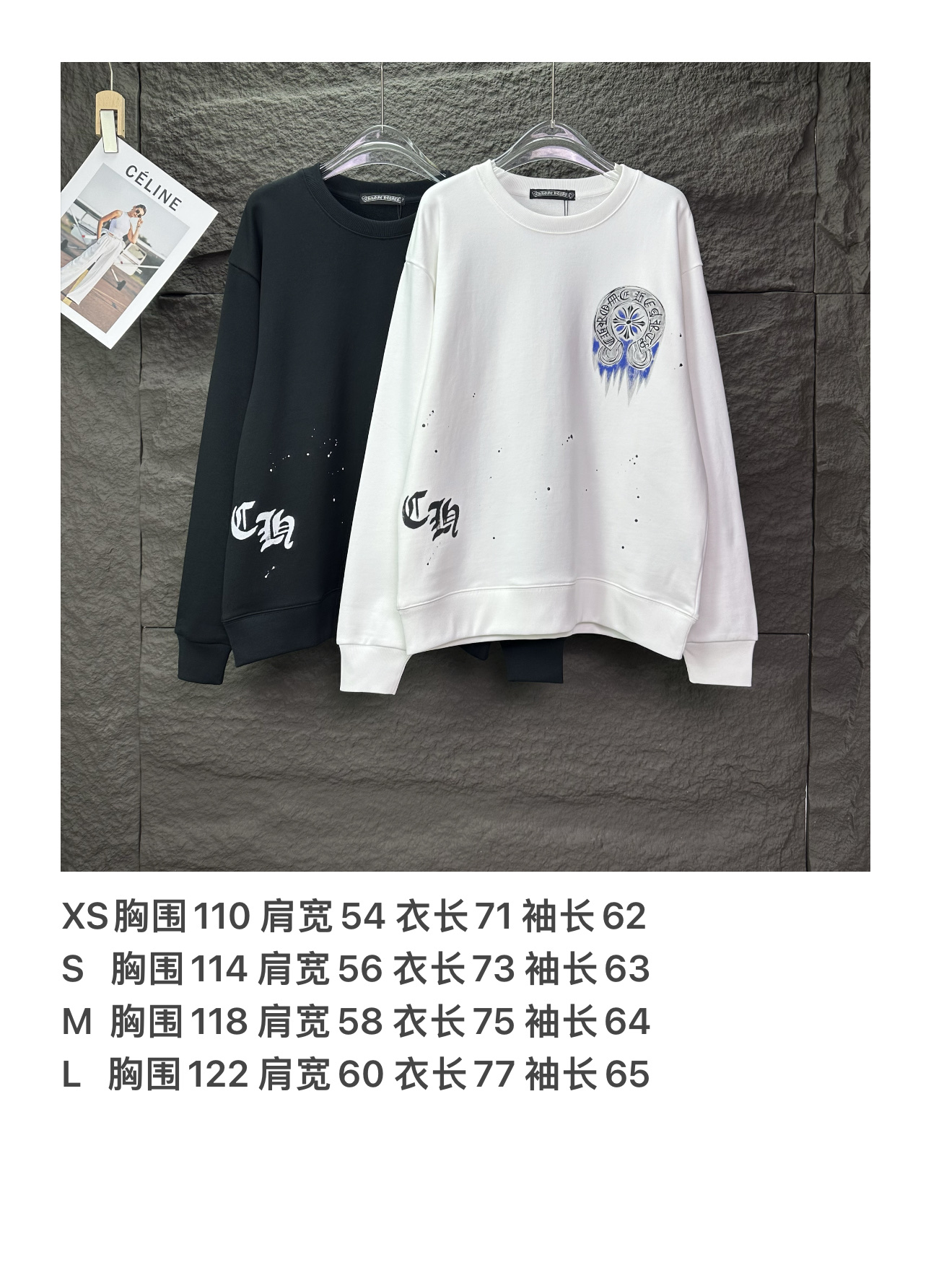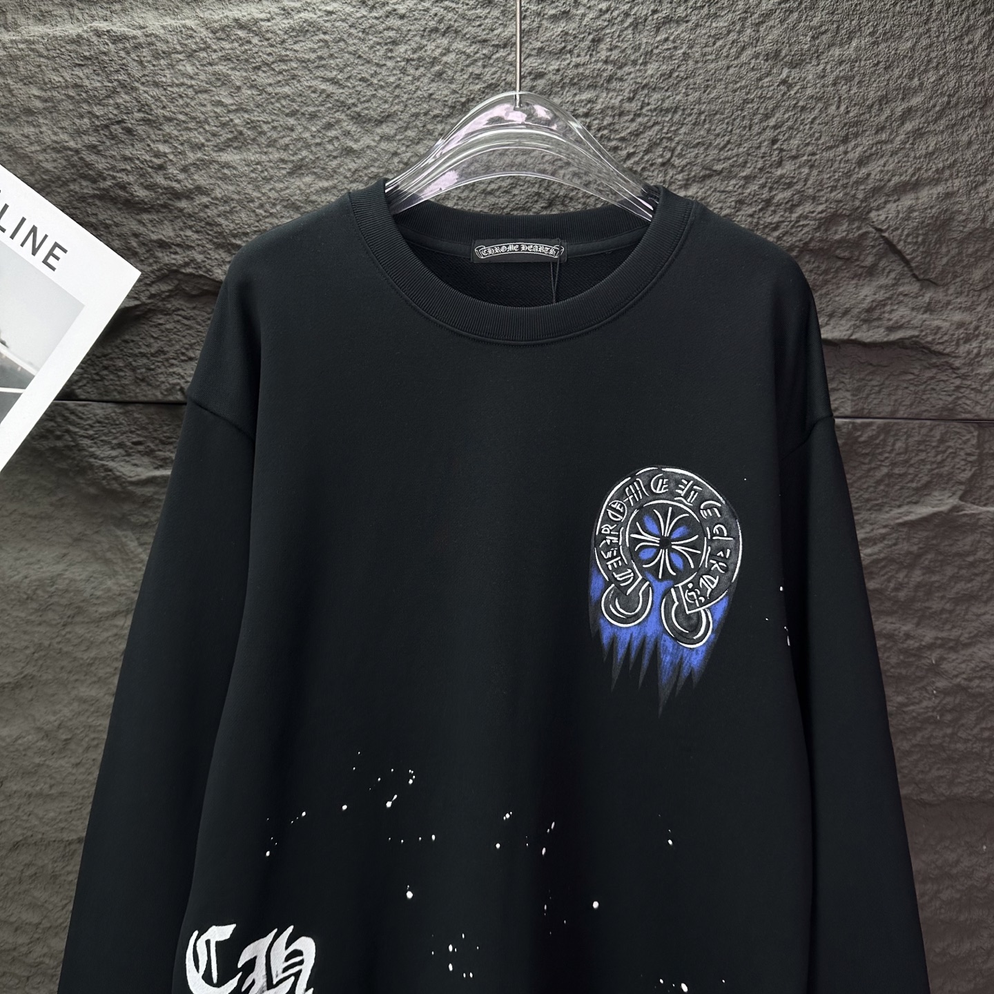 这款衣服是AAAAA 1:1 质量 (非常棒). 使用了和原版一模一样的材料. 商标部分也保持了和克罗心/Chrome Hearts一样. 图片拍摄是实物衣服拍摄, 您所收到的实物保证和我们图片一模一样.