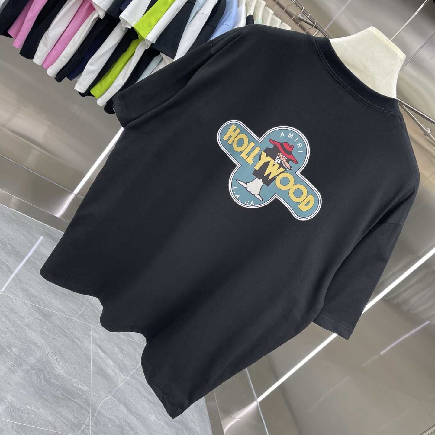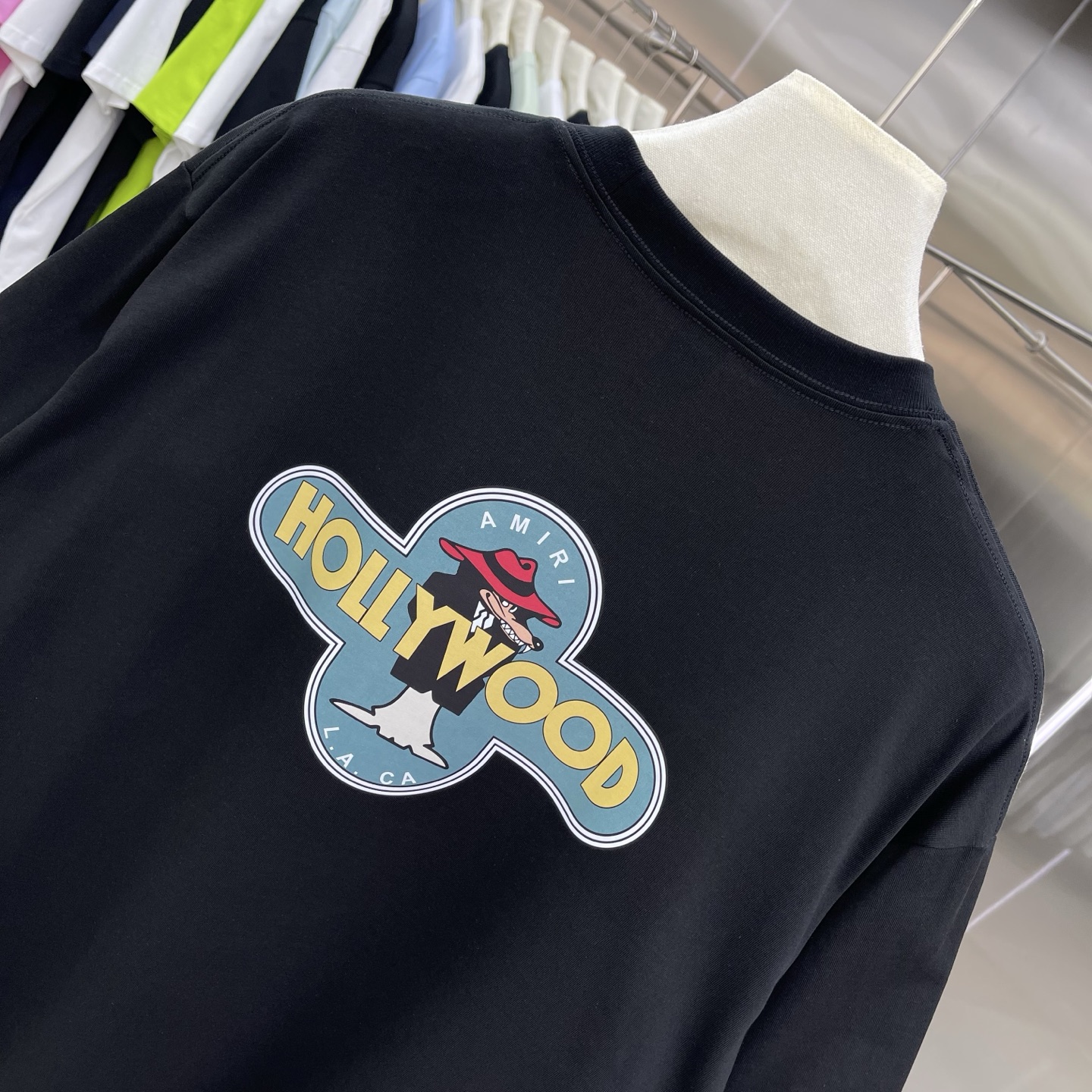 这款衣服是AAAAA 1:1 质量 (非常棒). 使用了和原版一模一样的材料. 商标部分也保持了和AMIRI一样. 图片拍摄是实物衣服拍摄, 您所收到的实物保证和我们图片一模一样.