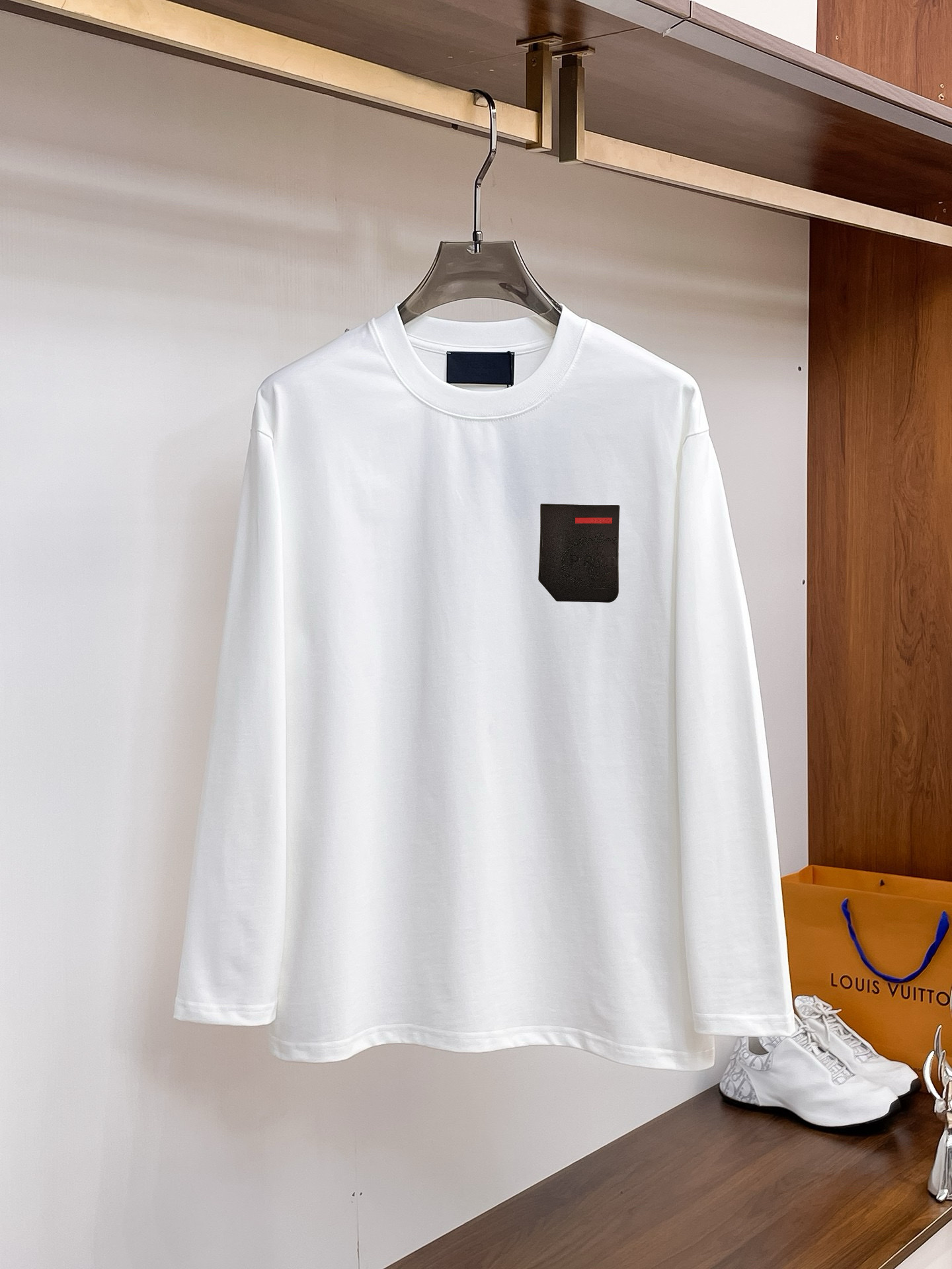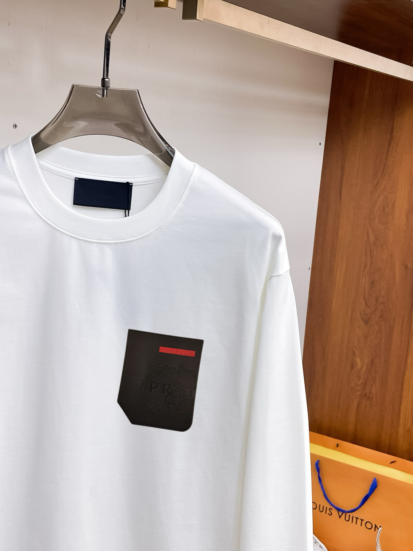 这款衣服是AAAAA 1:1 质量 (非常棒). 使用了和原版一模一样的材料. 商标部分也保持了和普拉达/Prada一样. 图片拍摄是实物衣服拍摄, 您所收到的实物保证和我们图片一模一样.