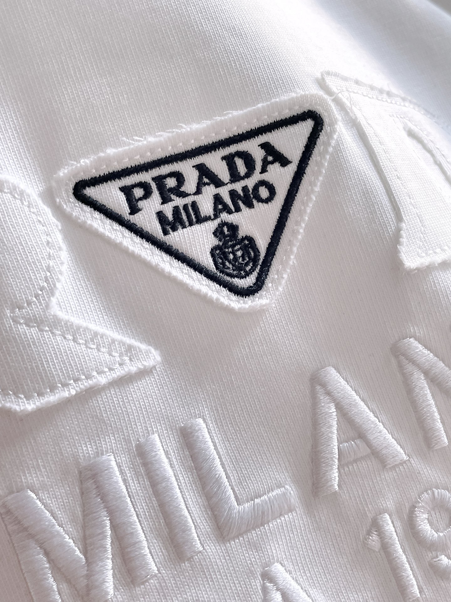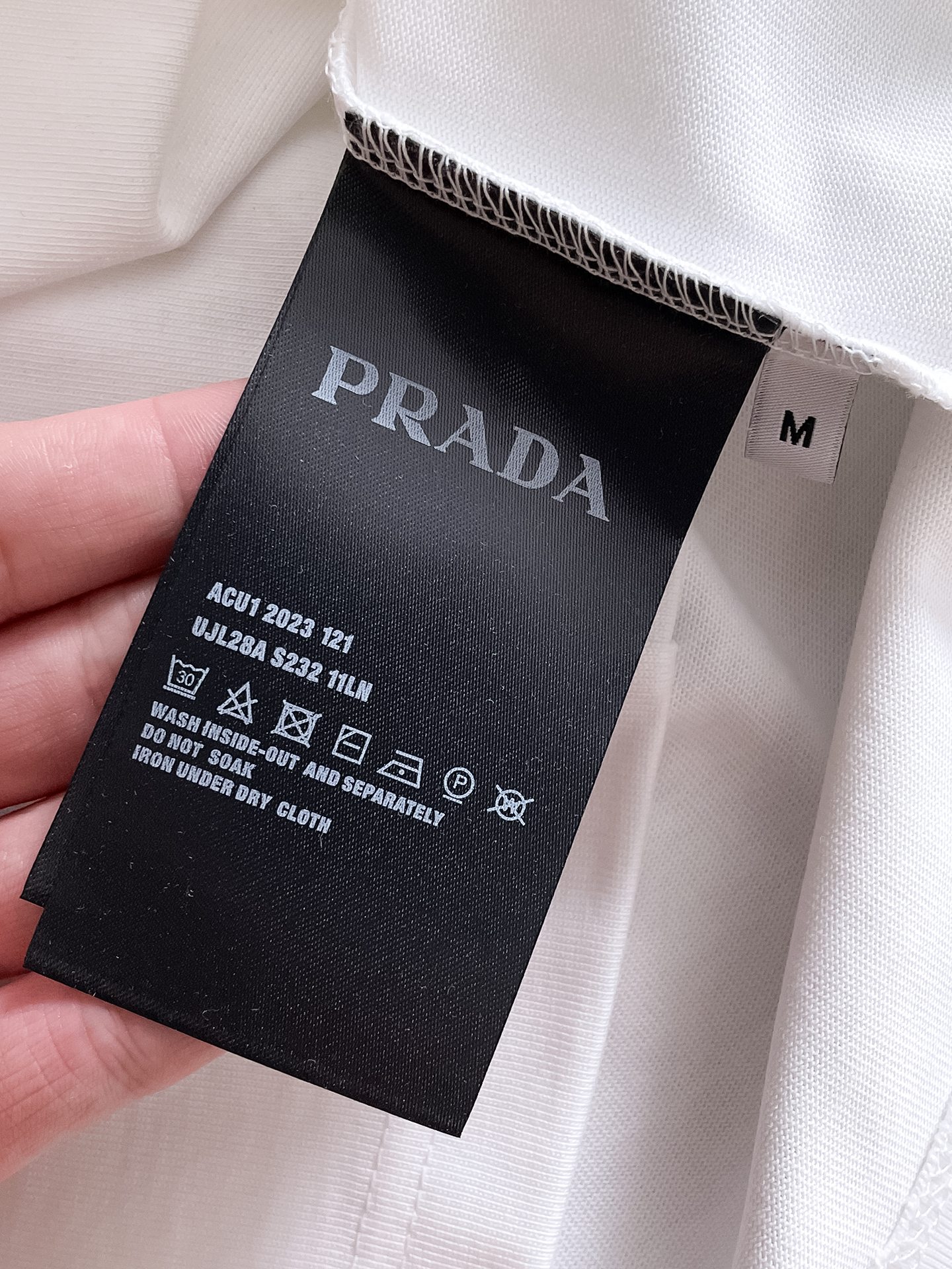 这款衣服是AAAAA 1:1 质量 (非常棒). 使用了和原版一模一样的材料. 商标部分也保持了和普拉达/Prada一样. 图片拍摄是实物衣服拍摄, 您所收到的实物保证和我们图片一模一样.
