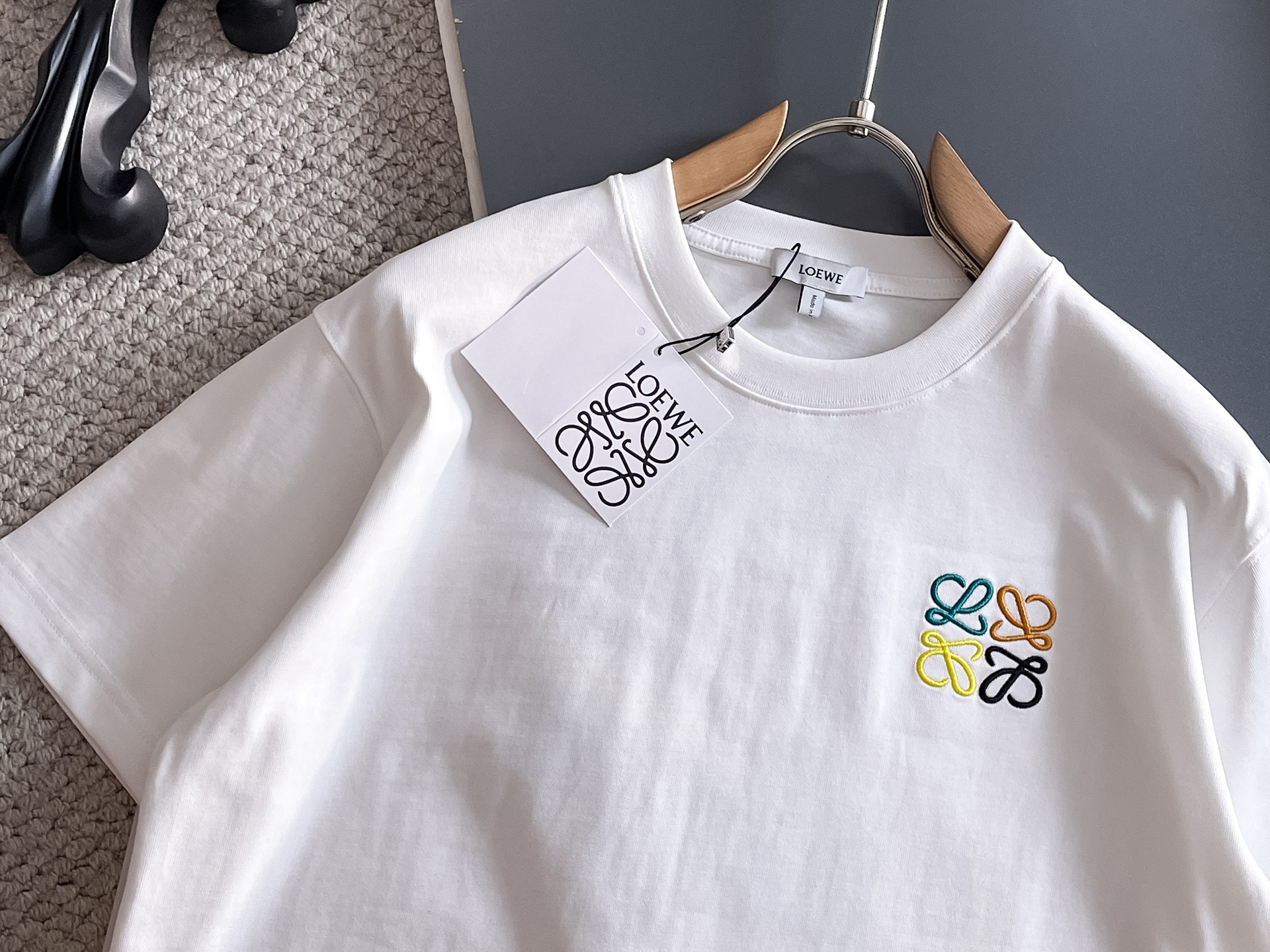 这款衣服是AAAAA 1:1 质量 (非常棒). 使用了和原版一模一样的材料. 商标部分也保持了和罗意威/Loewe一样. 图片拍摄是实物衣服拍摄, 您所收到的实物保证和我们图片一模一样.