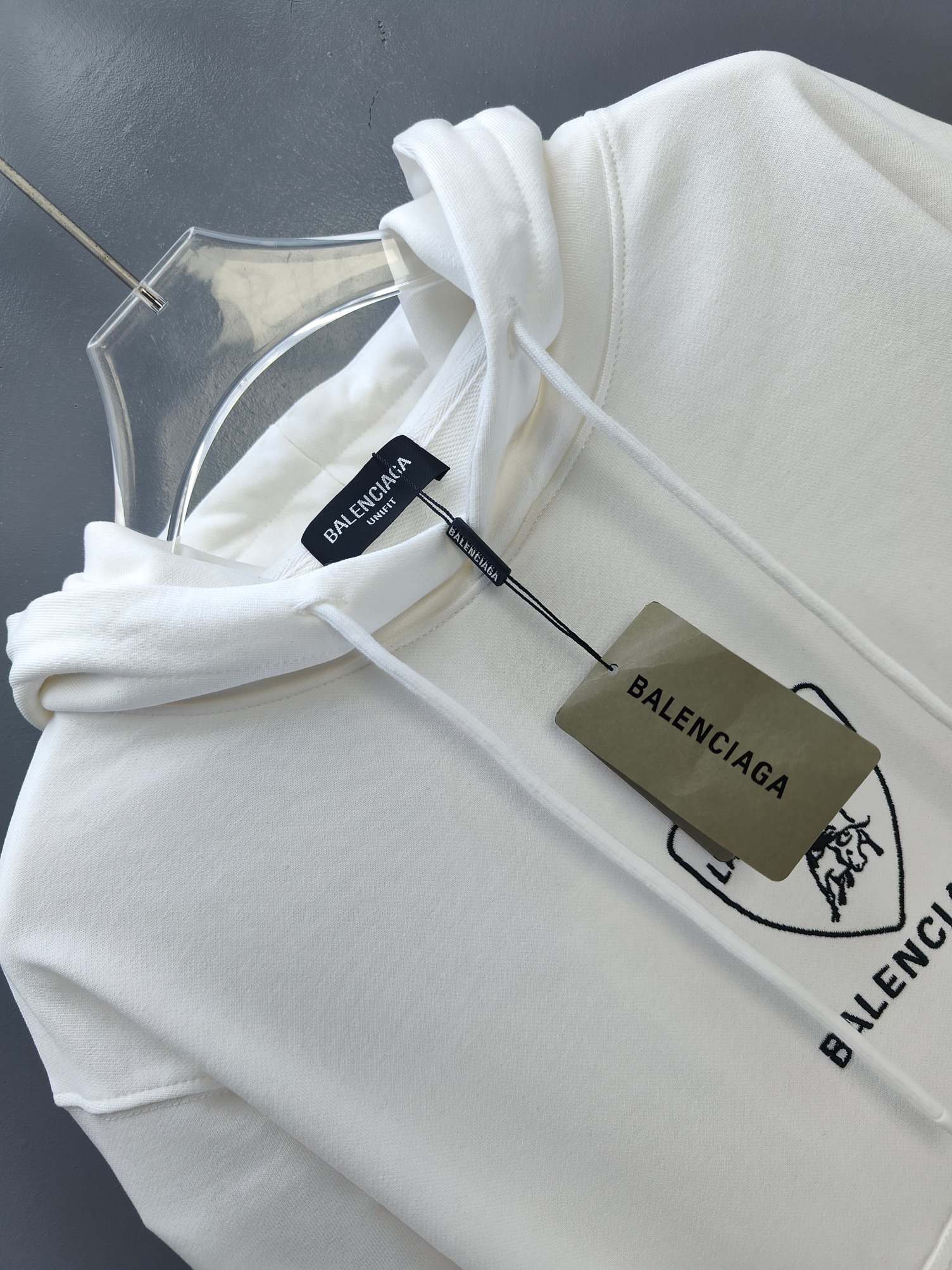 这款衣服是AAAAA 1:1 质量 (非常棒). 使用了和原版一模一样的材料. 商标部分也保持了和巴黎世家/Balenciaga一样. 图片拍摄是实物衣服拍摄, 您所收到的实物保证和我们图片一模一样.
