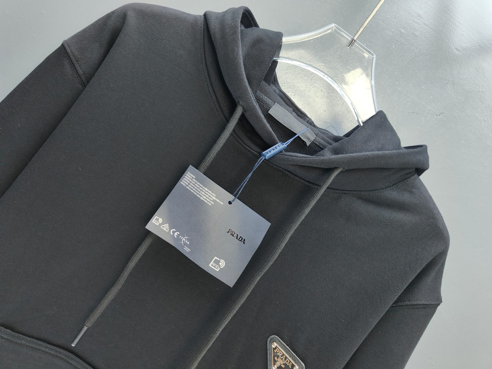 这款衣服是AAAAA 1:1 质量 (非常棒). 使用了和原版一模一样的材料. 商标部分也保持了和普拉达/Prada一样. 图片拍摄是实物衣服拍摄, 您所收到的实物保证和我们图片一模一样.