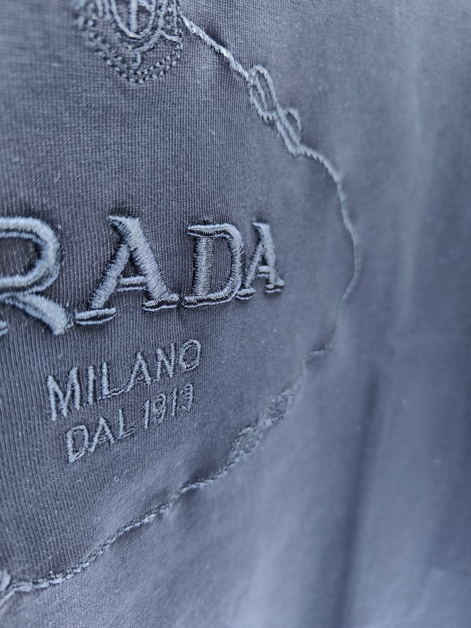 这款衣服是AAAAA 1:1 质量 (非常棒). 使用了和原版一模一样的材料. 商标部分也保持了和普拉达/Prada一样. 图片拍摄是实物衣服拍摄, 您所收到的实物保证和我们图片一模一样.
