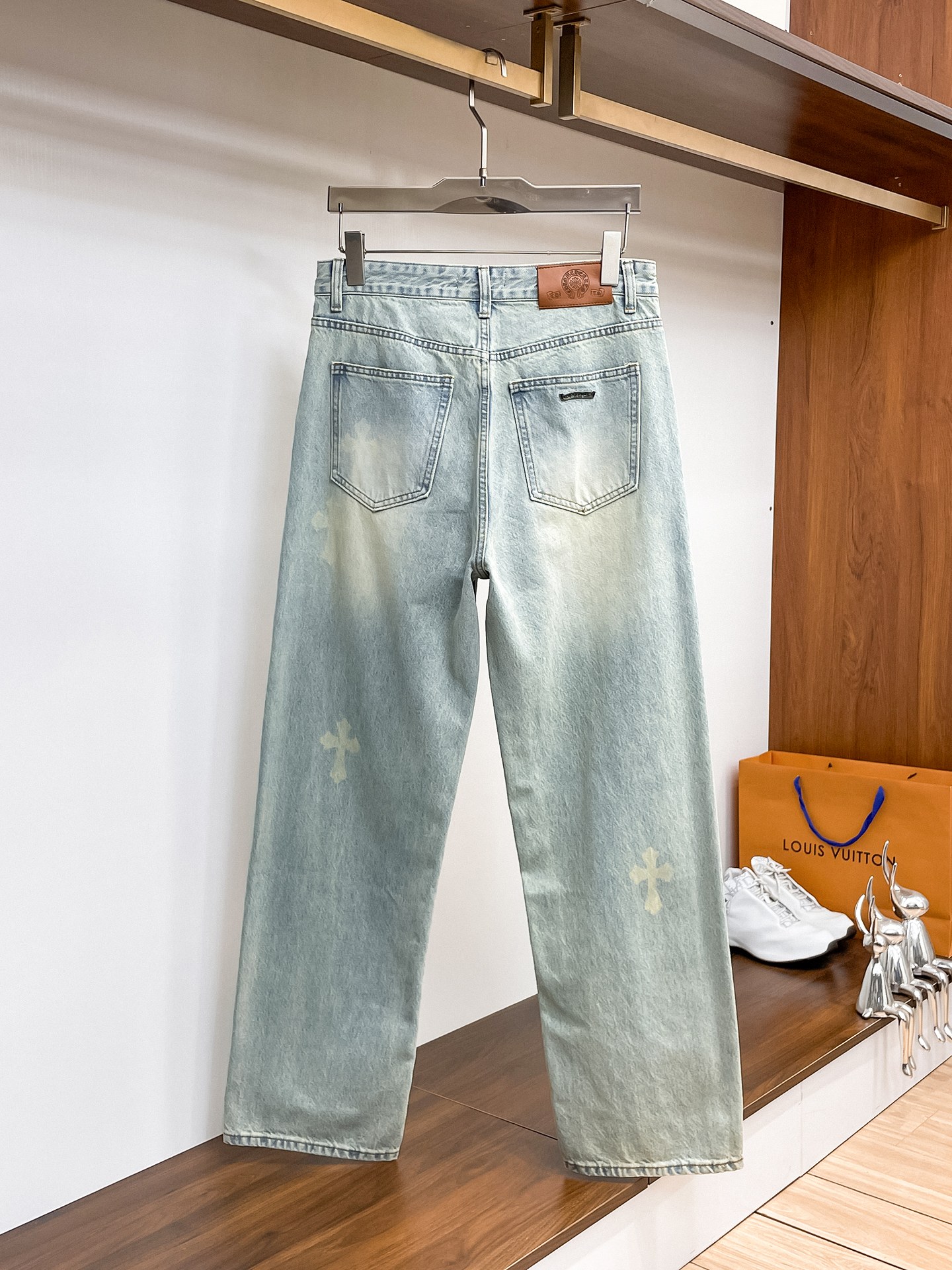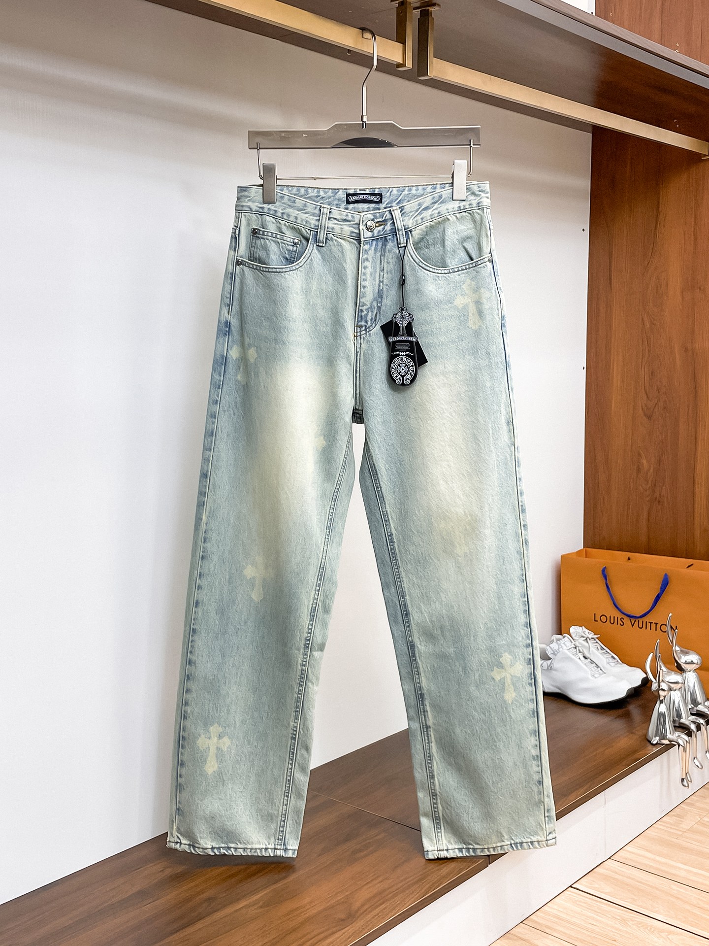 这款衣服是AAAAA 1:1 质量 (非常棒). 使用了和原版一模一样的材料. 商标部分也保持了和克罗心/Chrome Hearts一样. 图片拍摄是实物衣服拍摄, 您所收到的实物保证和我们图片一模一样.