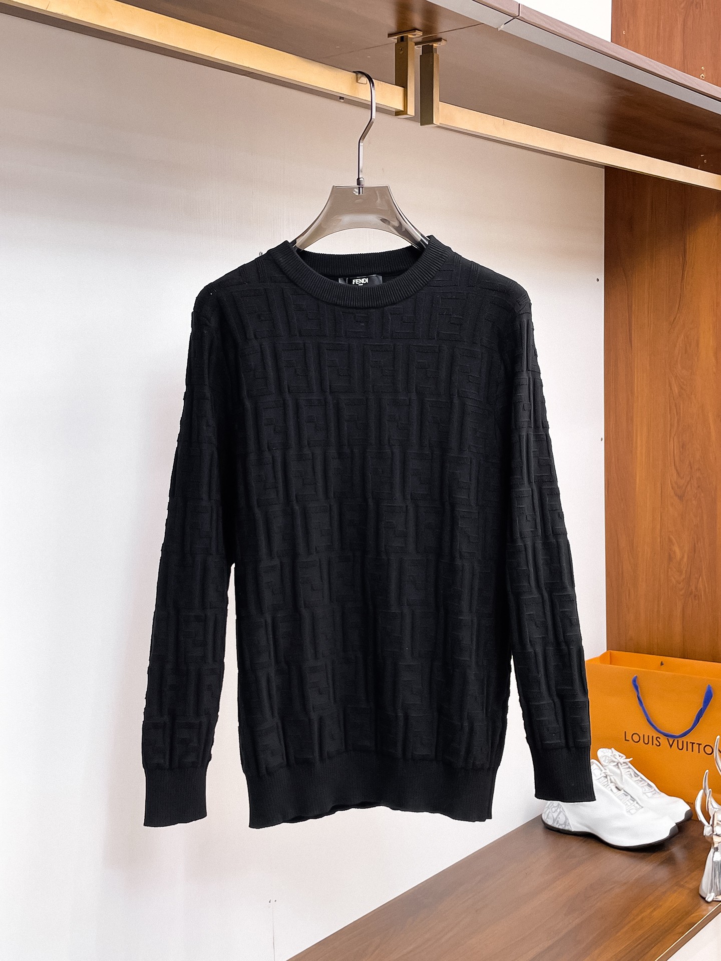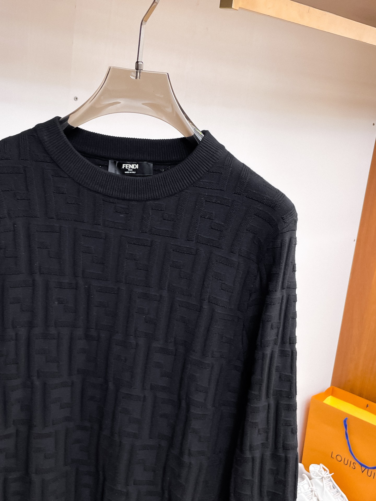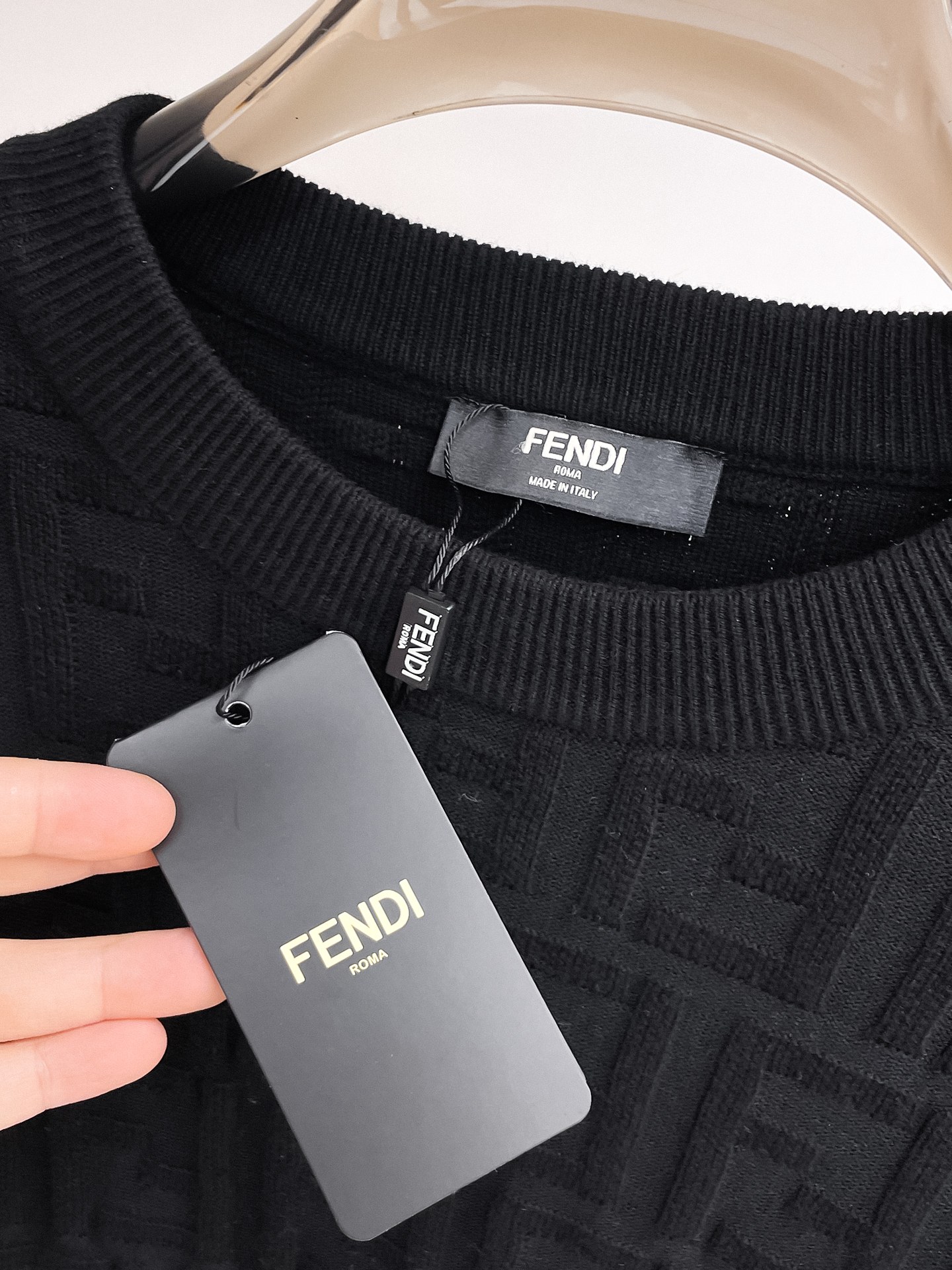 这款衣服是AAAAA 1:1 质量 (非常棒). 使用了和原版一模一样的材料. 商标部分也保持了和芬迪/Fendi一样. 图片拍摄是实物衣服拍摄, 您所收到的实物保证和我们图片一模一样.