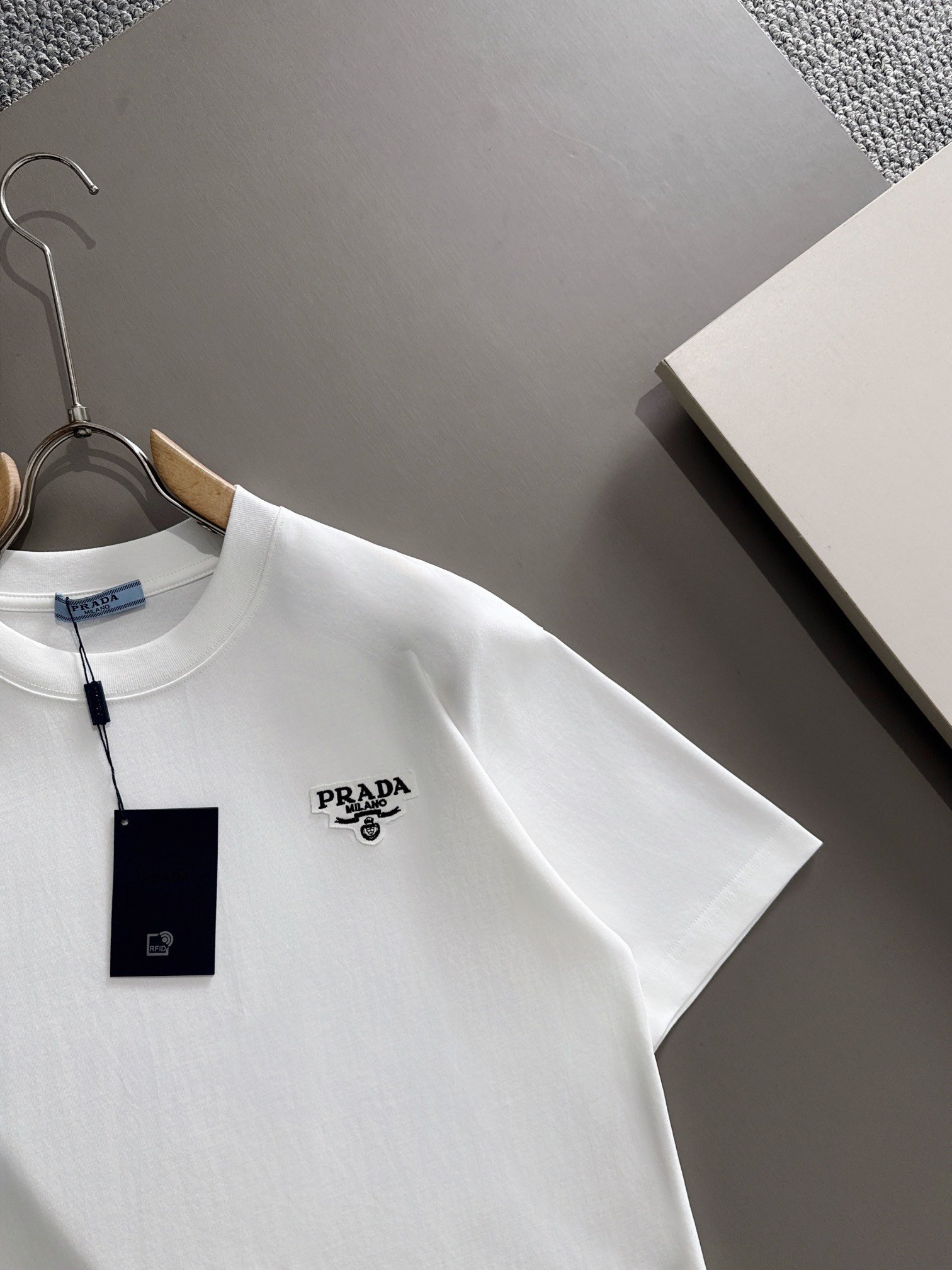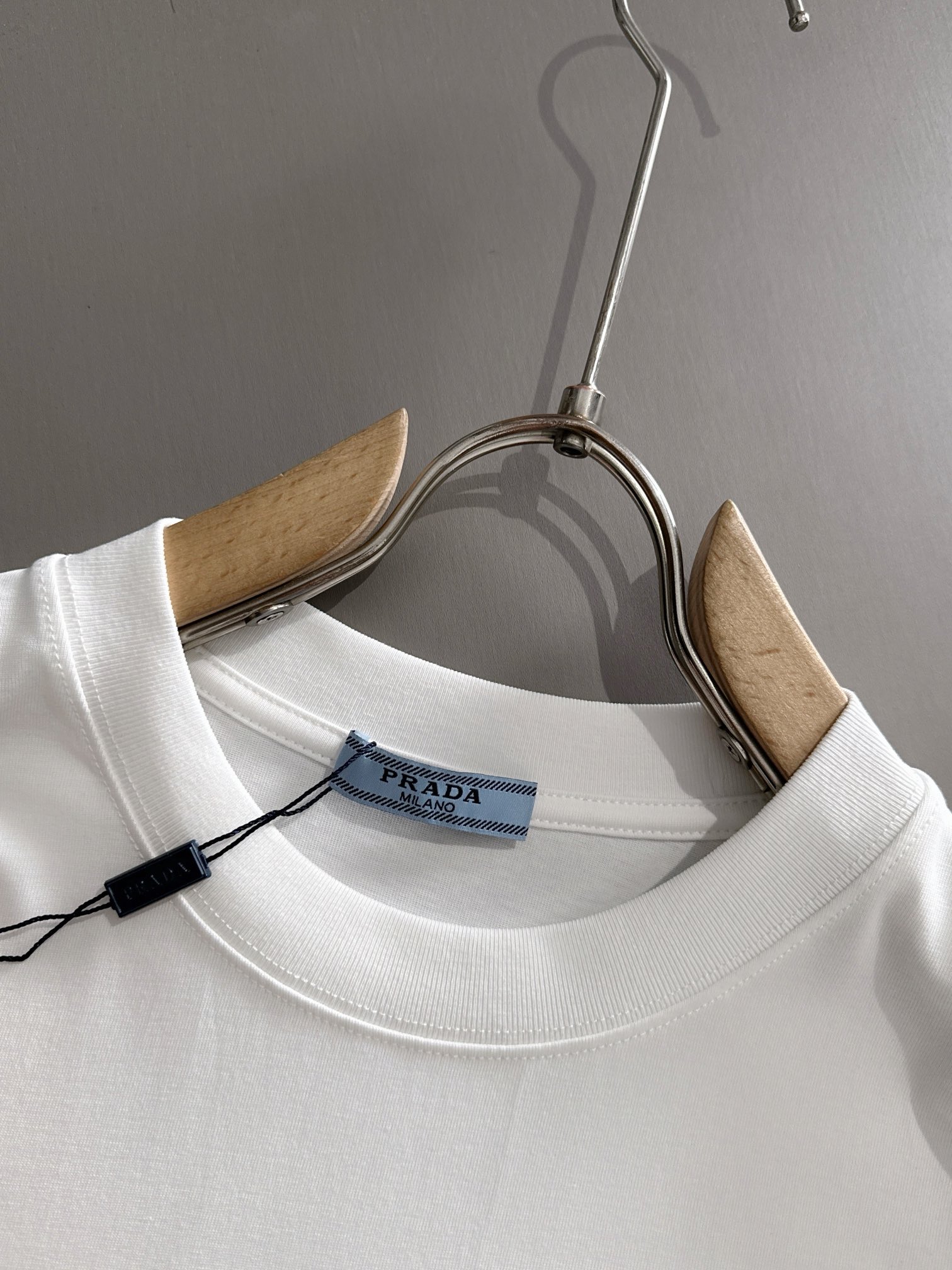 这款衣服是AAAAA 1:1 质量 (非常棒). 使用了和原版一模一样的材料. 商标部分也保持了和普拉达/Prada一样. 图片拍摄是实物衣服拍摄, 您所收到的实物保证和我们图片一模一样.
