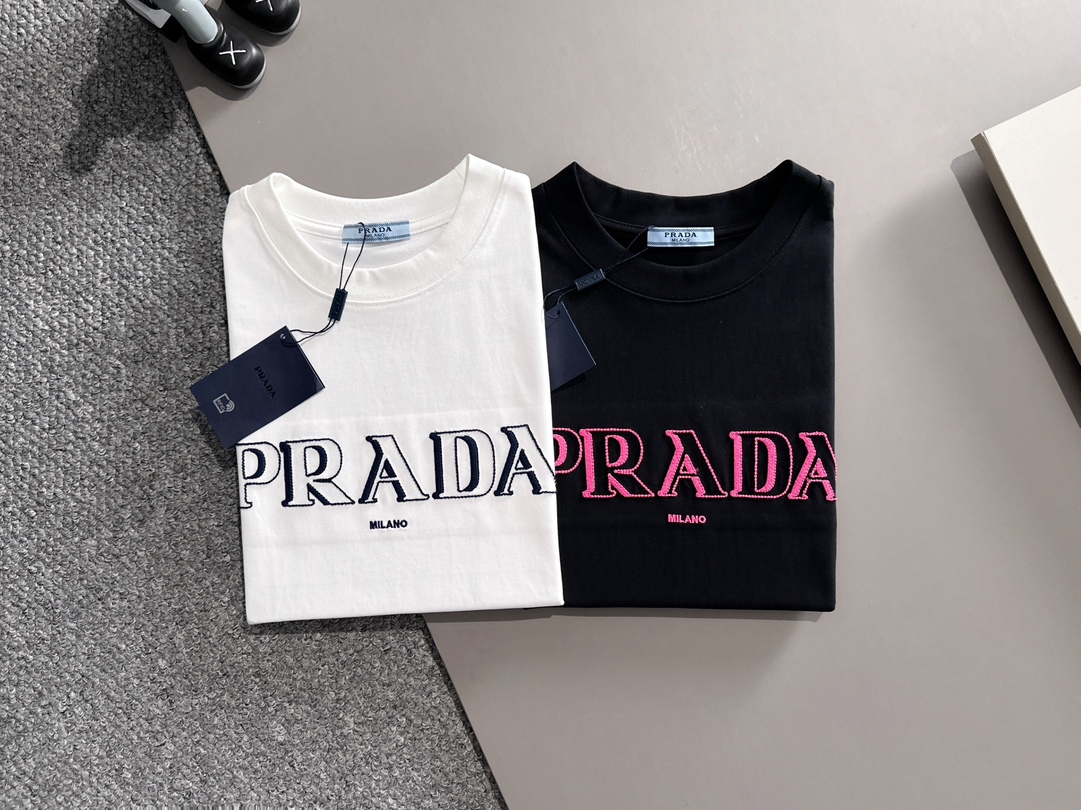 这款衣服是AAAAA 1:1 质量 (非常棒). 使用了和原版一模一样的材料. 商标部分也保持了和普拉达/Prada一样. 图片拍摄是实物衣服拍摄, 您所收到的实物保证和我们图片一模一样.