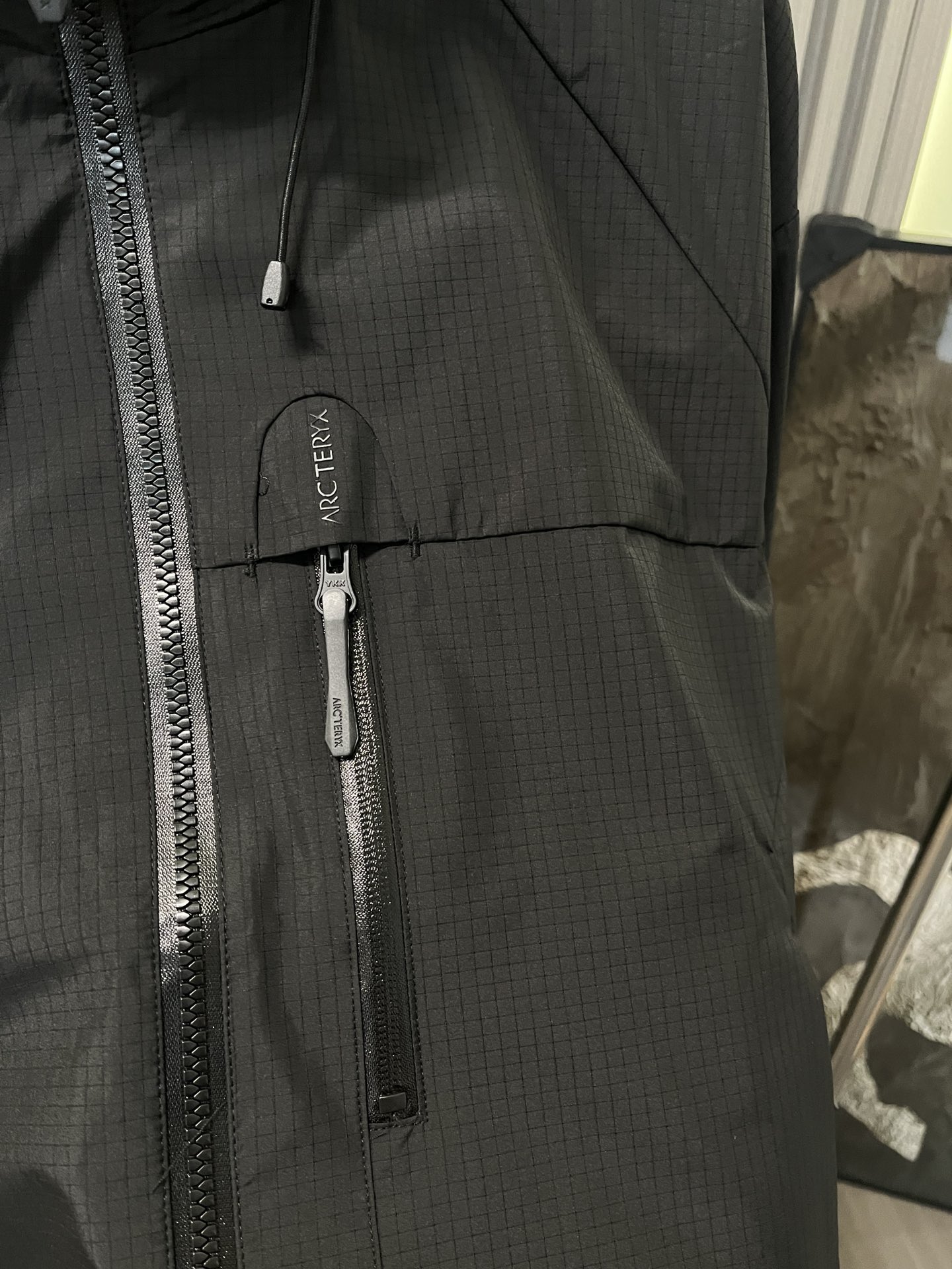 这款衣服是AAAAA 1:1 质量 (非常棒). 使用了和原版一模一样的材料. 商标部分也保持了和ARC'TERYX一样. 图片拍摄是实物衣服拍摄, 您所收到的实物保证和我们图片一模一样.
