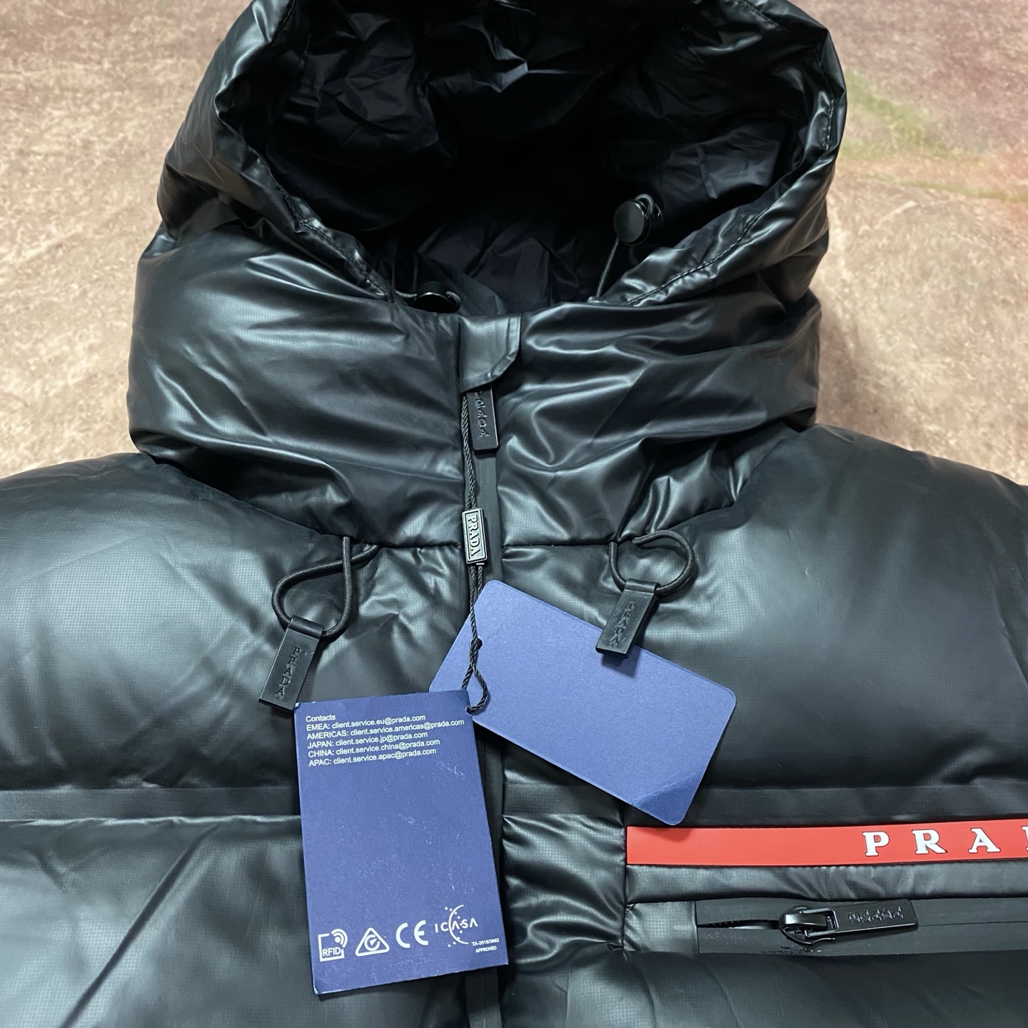 这款衣服是AAAAA 1:1 质量 (非常棒). 使用了和原版一模一样的材料. 商标部分也保持了和普拉达/Prada一样. 图片拍摄是实物衣服拍摄, 您所收到的实物保证和我们图片一模一样.