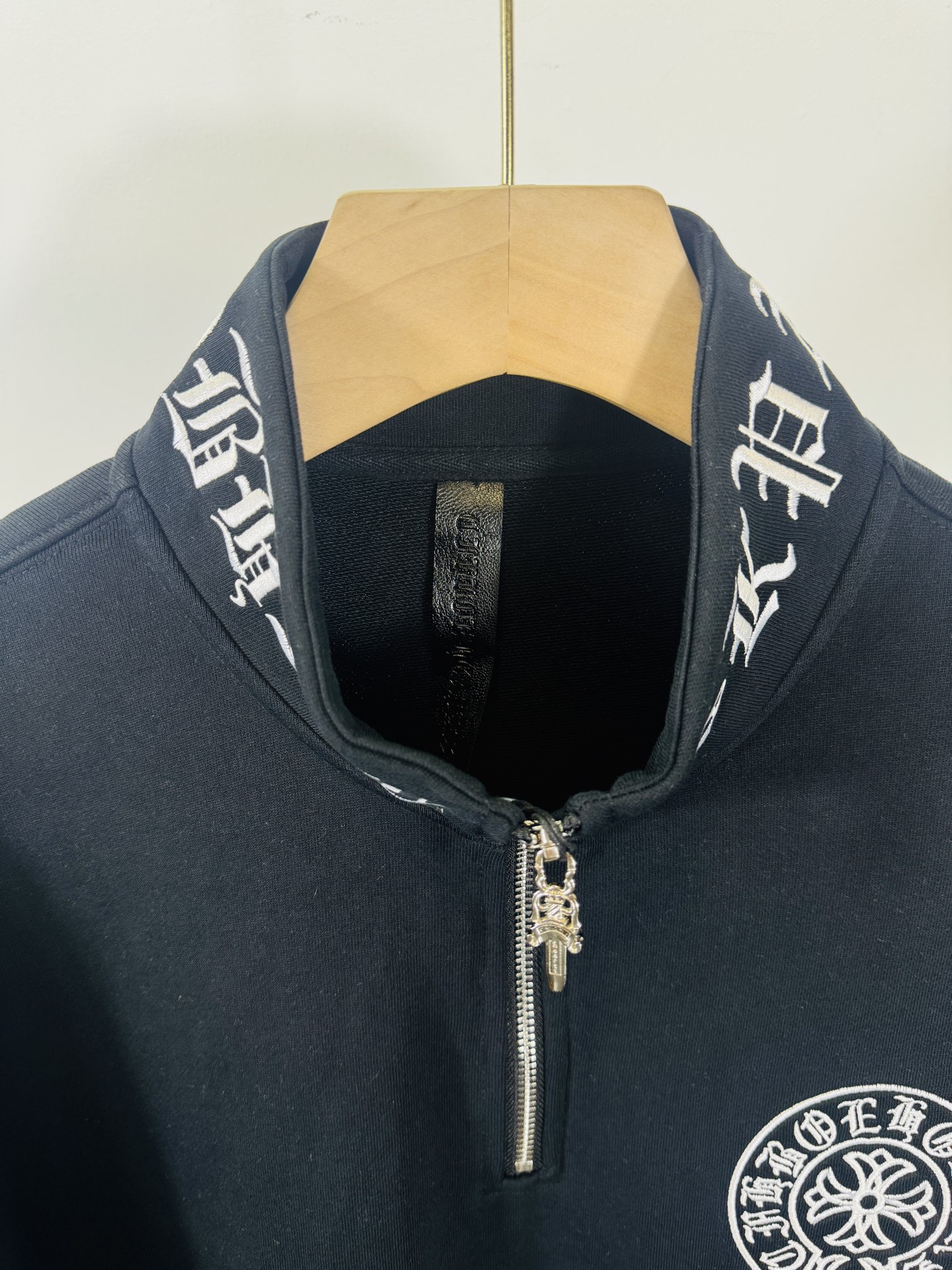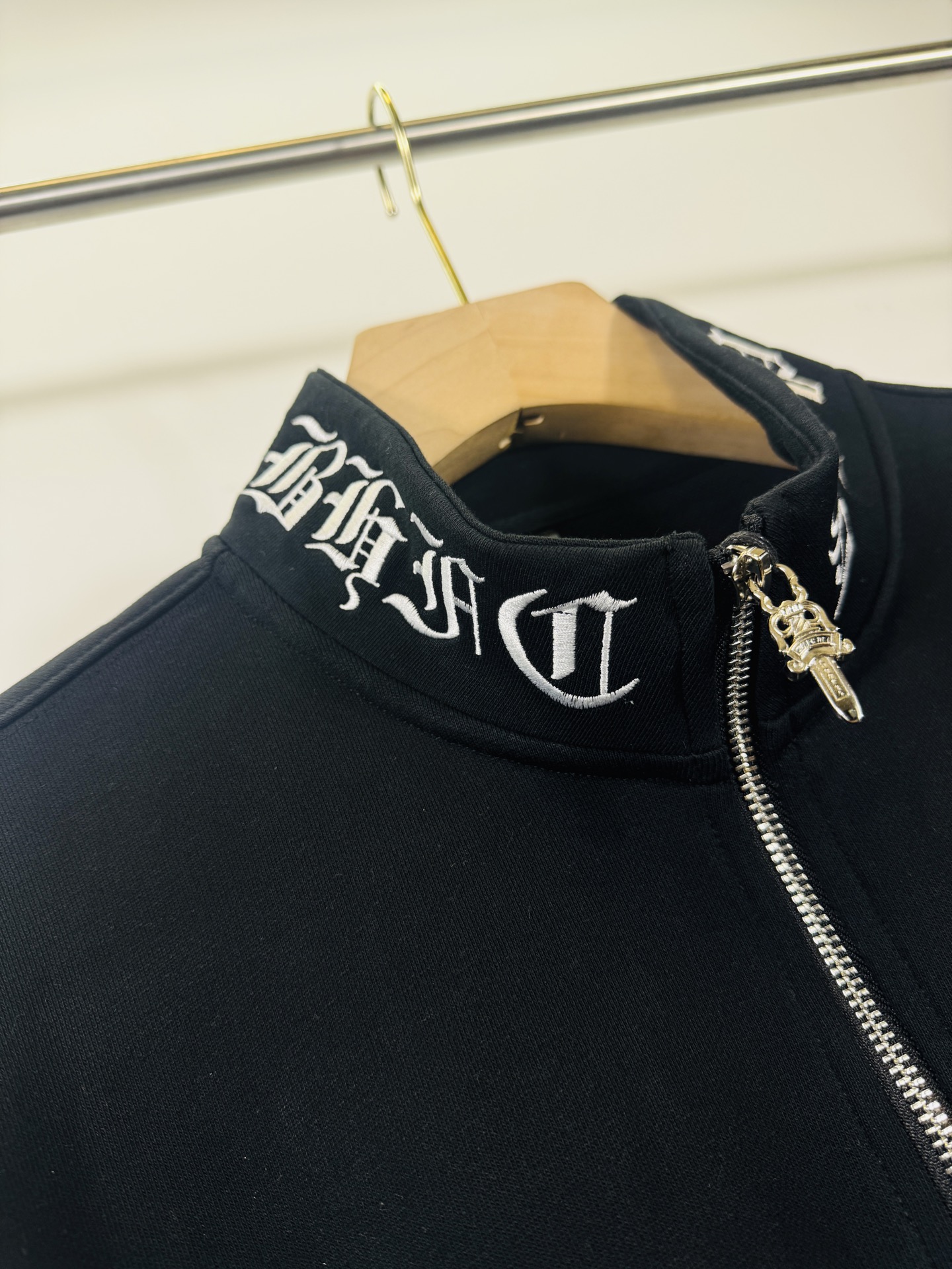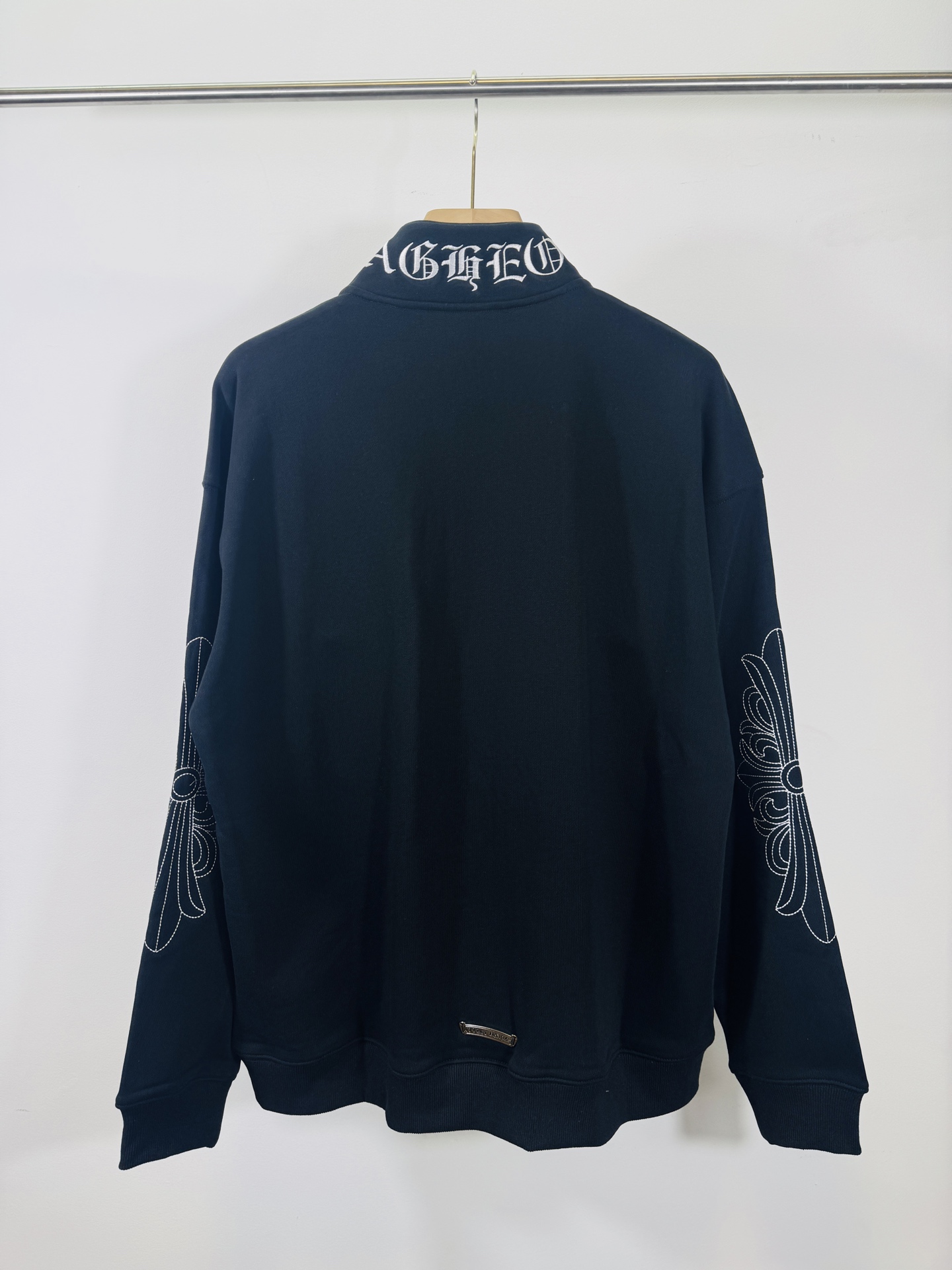 这款衣服是AAAAA 1:1 质量 (非常棒). 使用了和原版一模一样的材料. 商标部分也保持了和克罗心/Chrome Hearts一样. 图片拍摄是实物衣服拍摄, 您所收到的实物保证和我们图片一模一样.