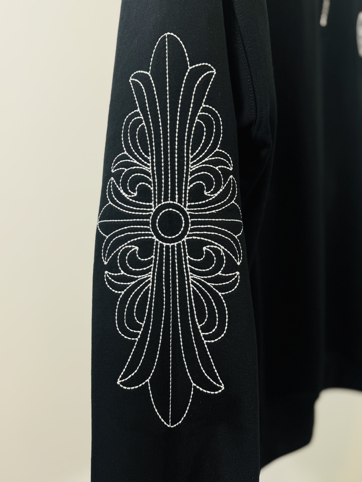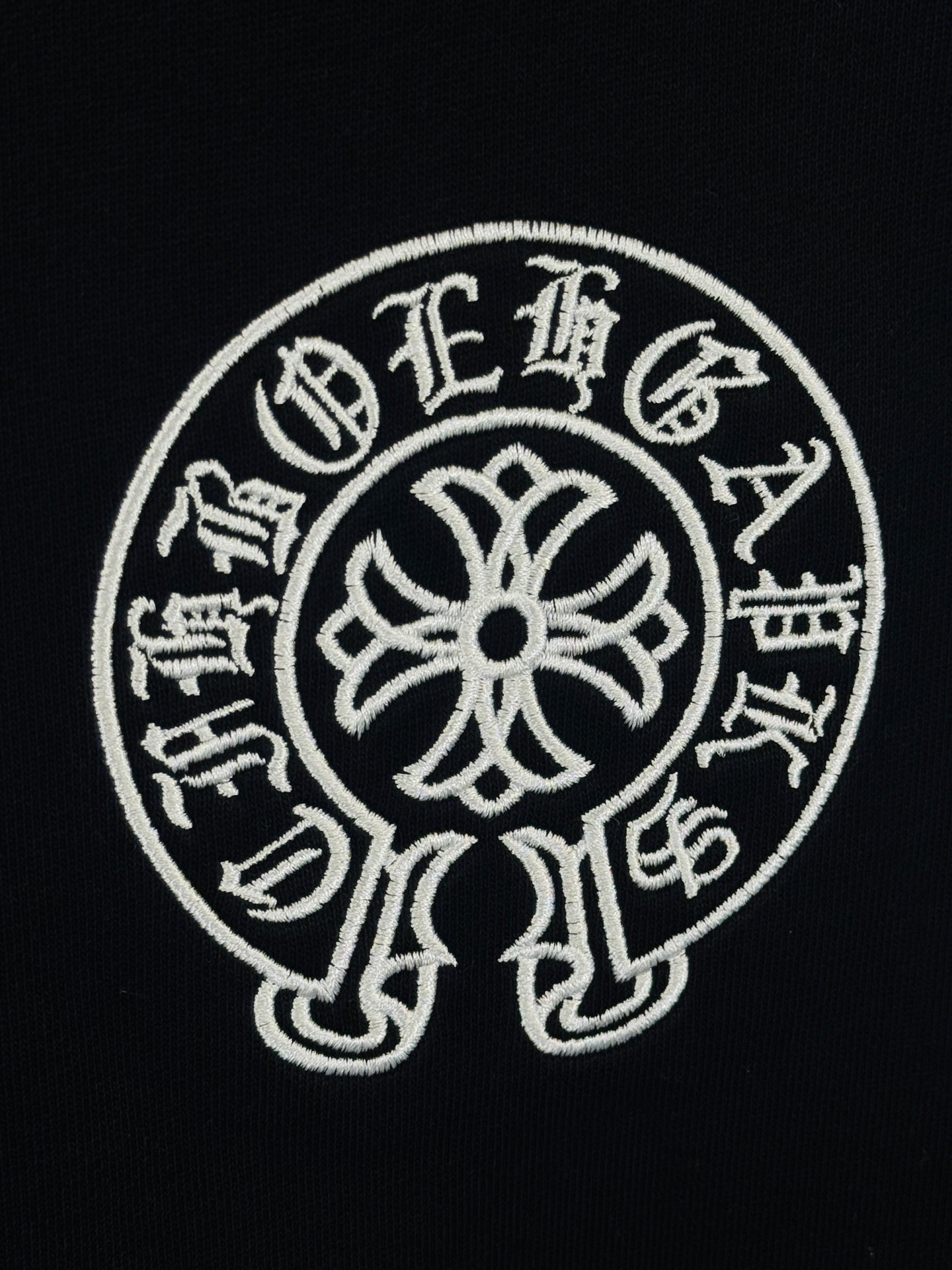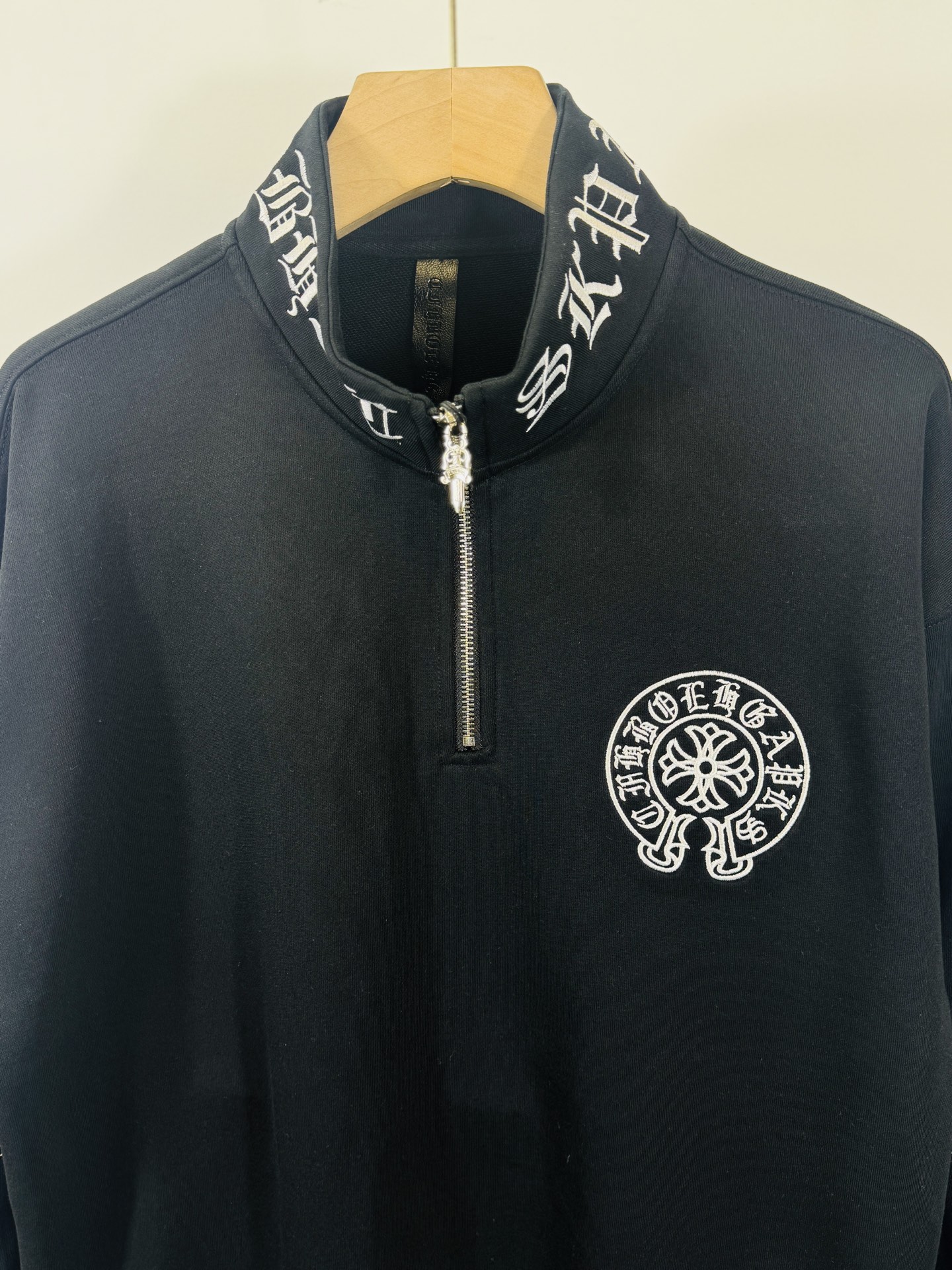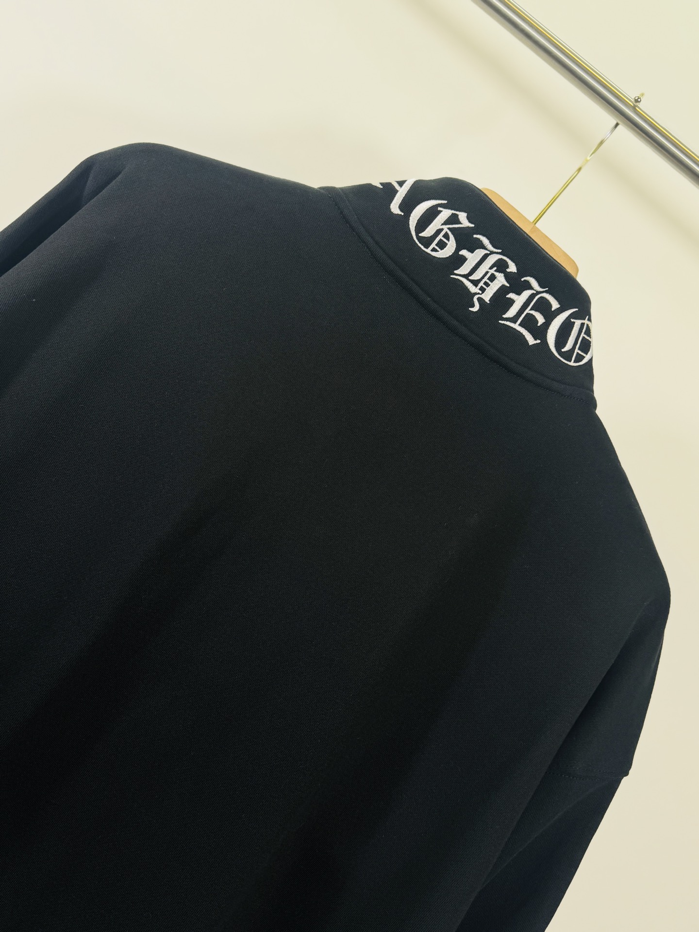 这款衣服是AAAAA 1:1 质量 (非常棒). 使用了和原版一模一样的材料. 商标部分也保持了和克罗心/Chrome Hearts一样. 图片拍摄是实物衣服拍摄, 您所收到的实物保证和我们图片一模一样.