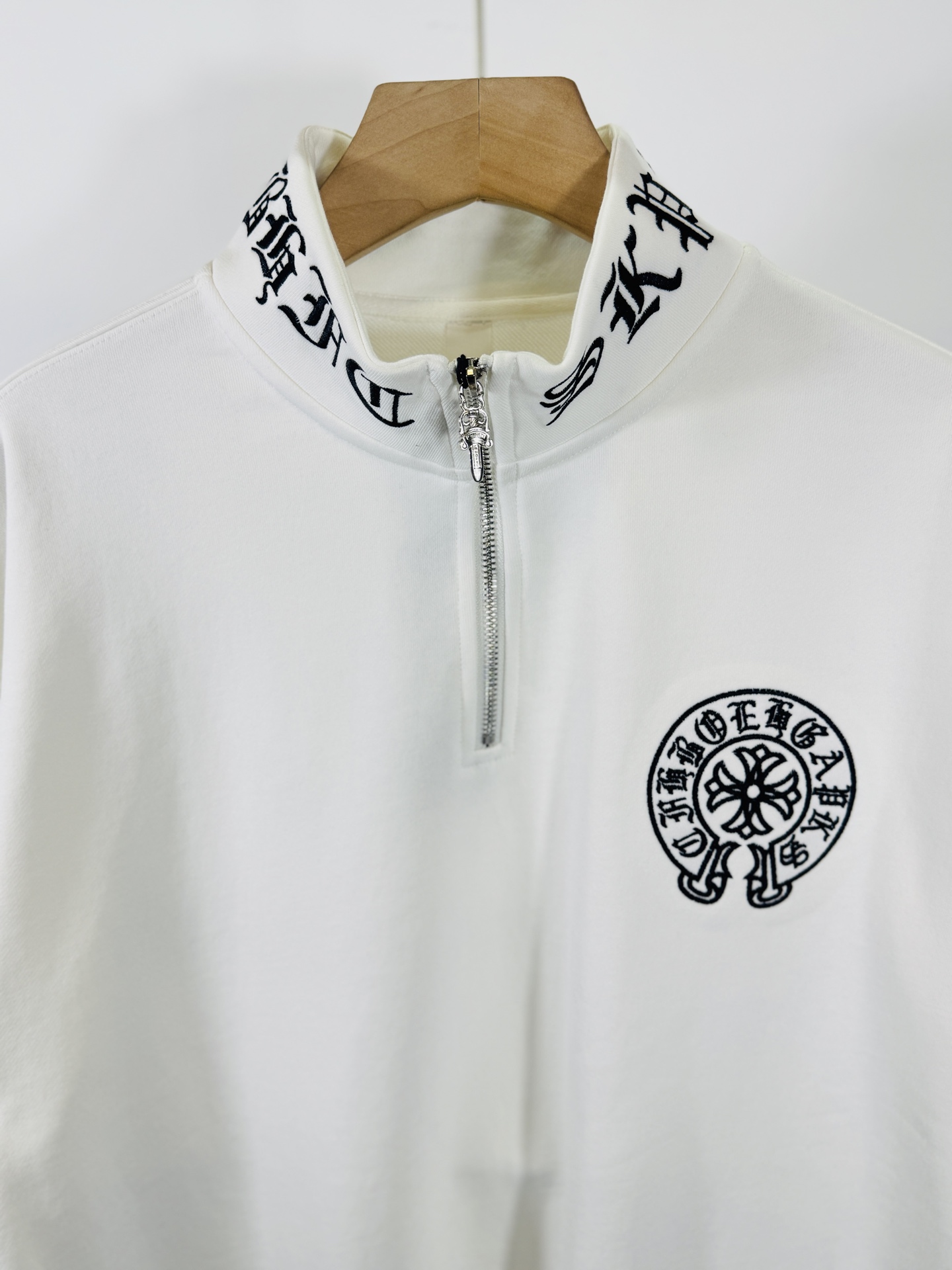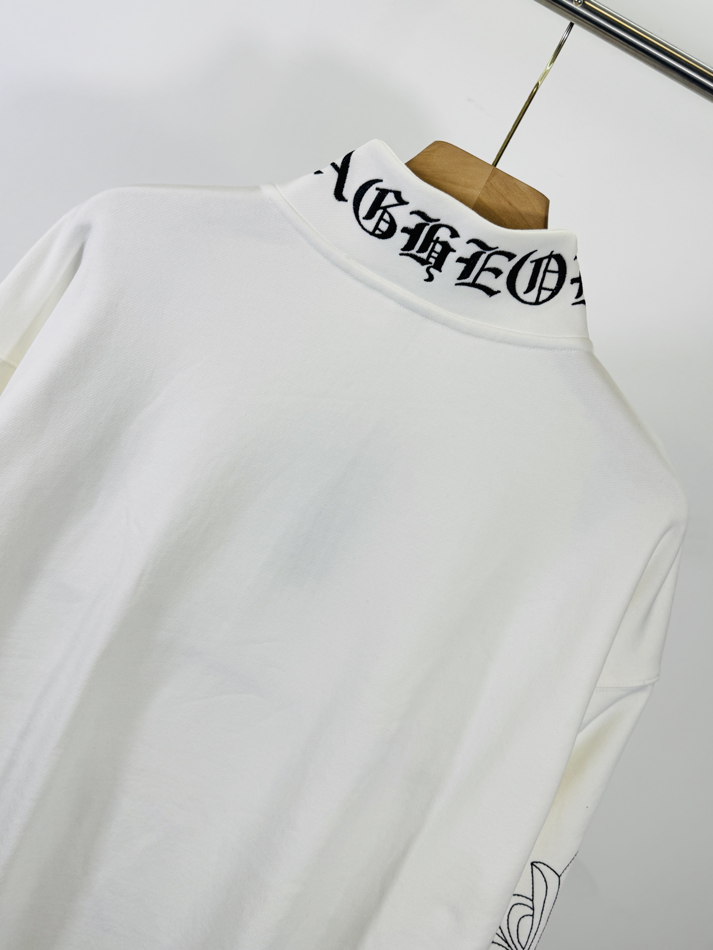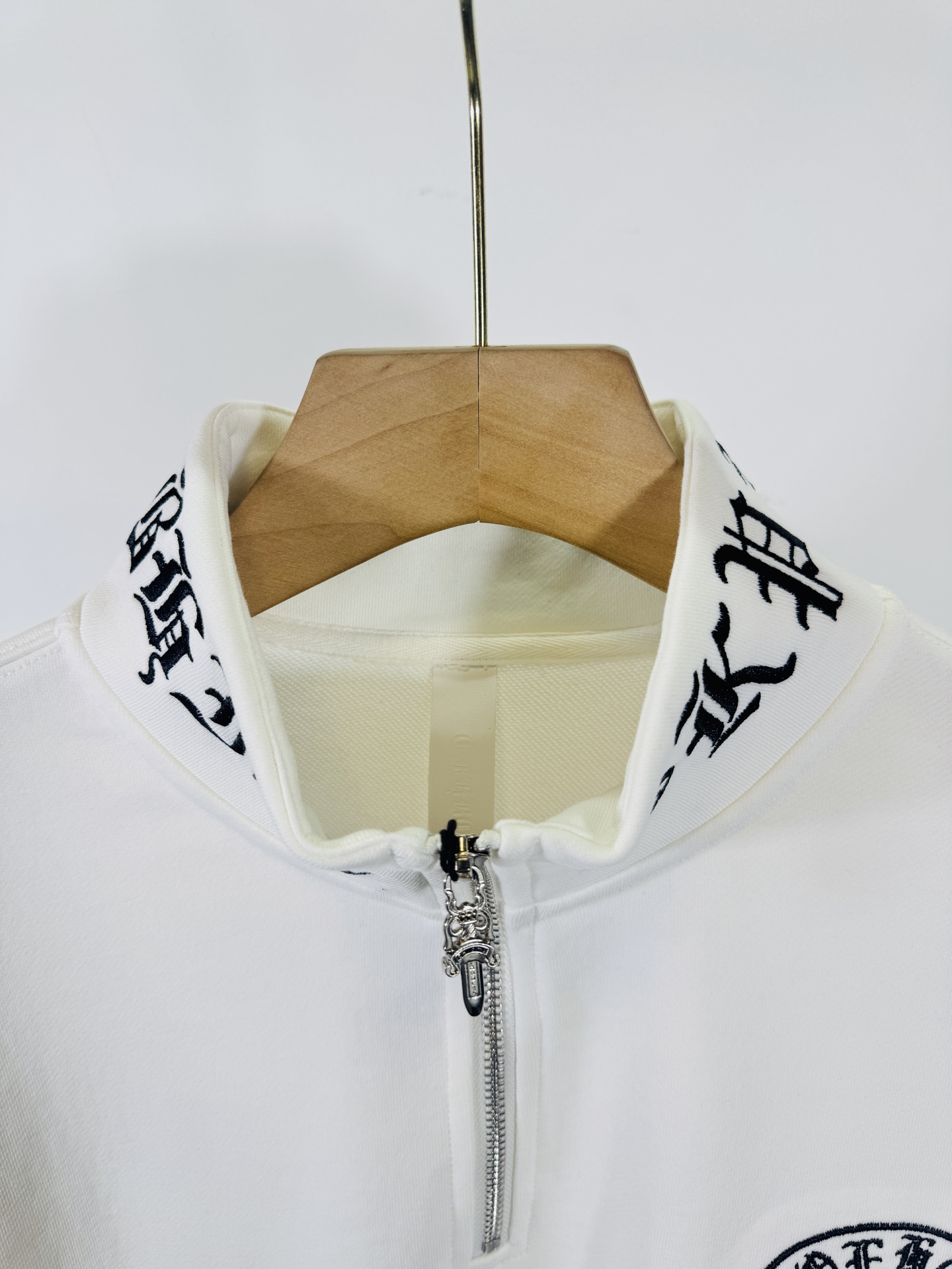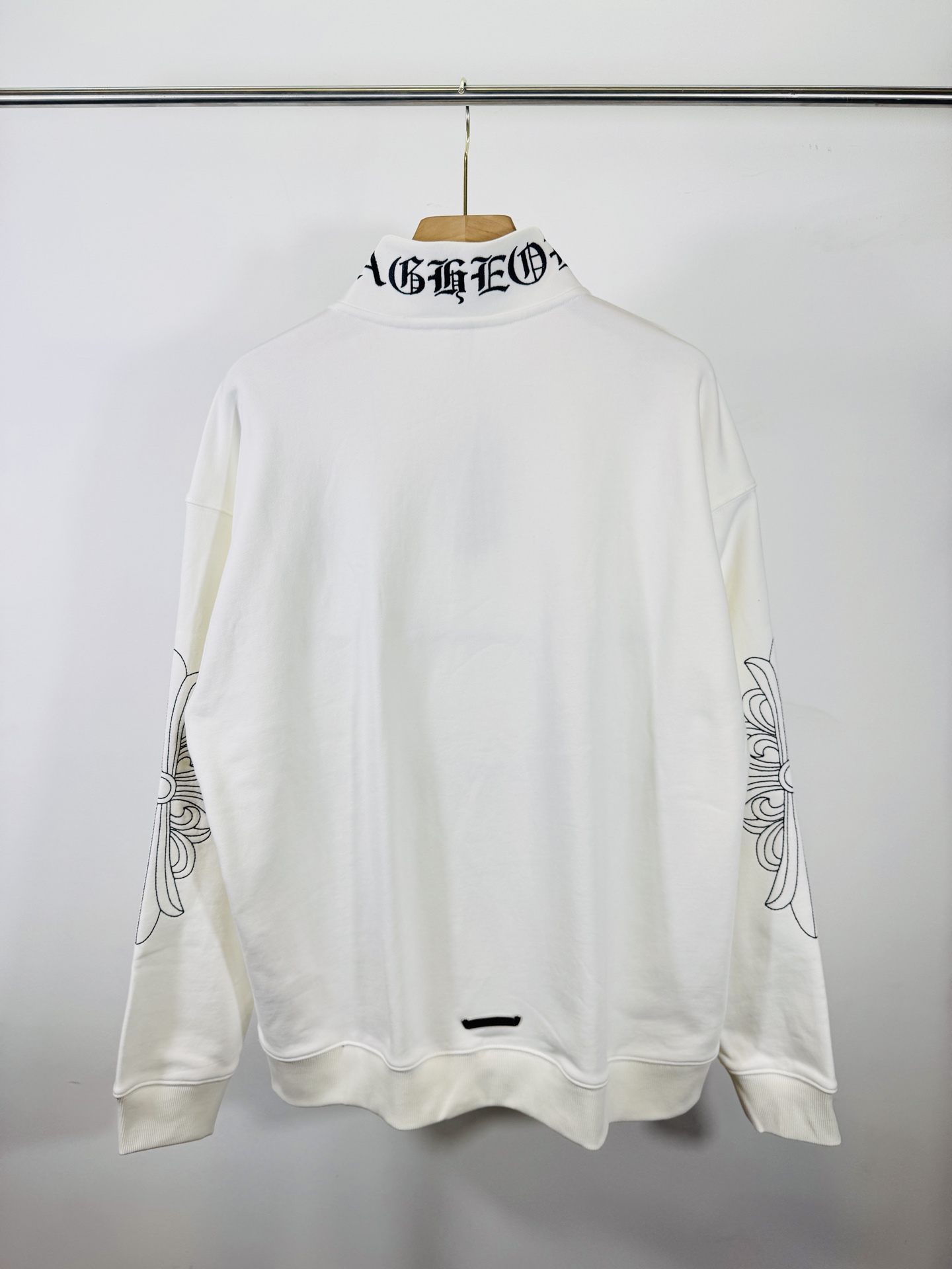 这款衣服是AAAAA 1:1 质量 (非常棒). 使用了和原版一模一样的材料. 商标部分也保持了和克罗心/Chrome Hearts一样. 图片拍摄是实物衣服拍摄, 您所收到的实物保证和我们图片一模一样.