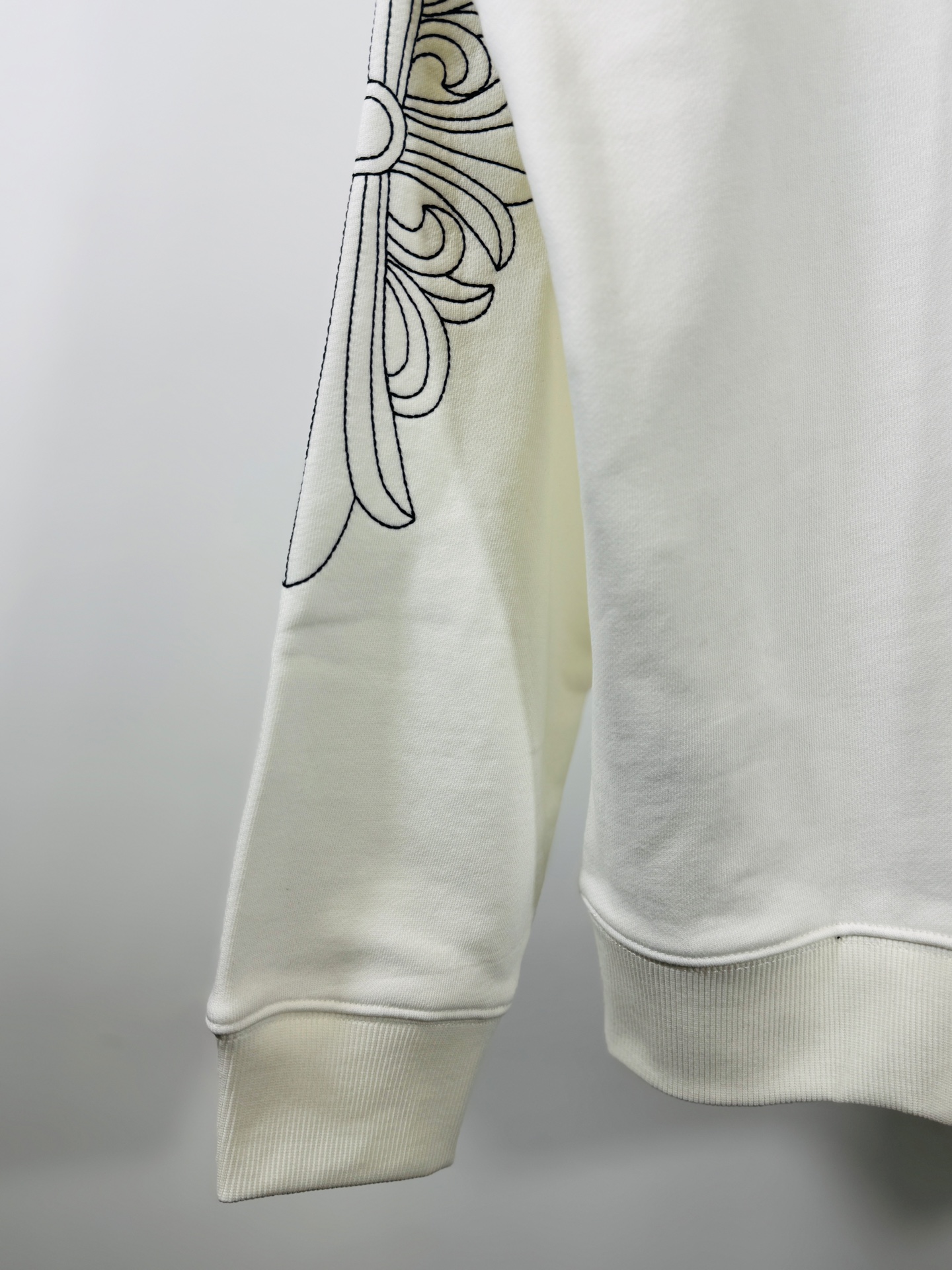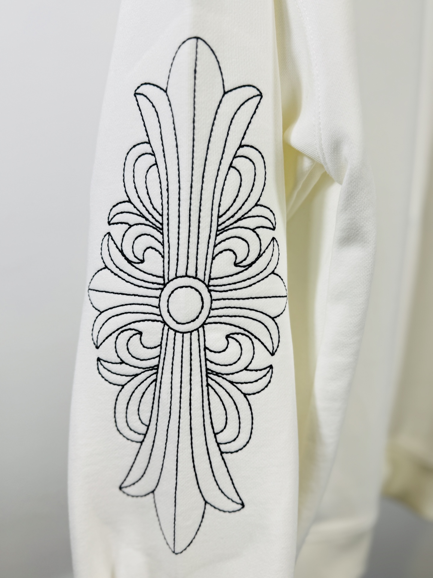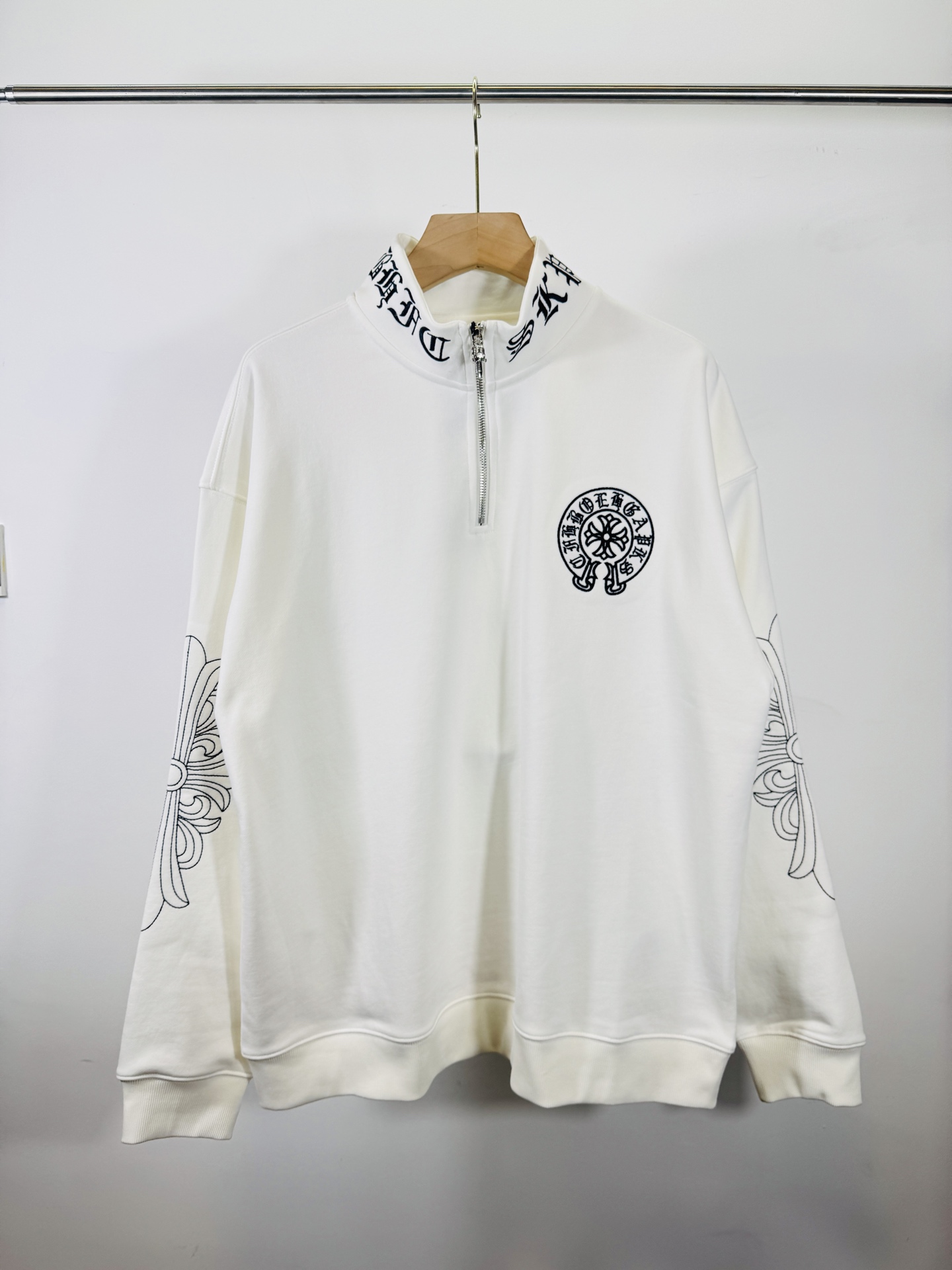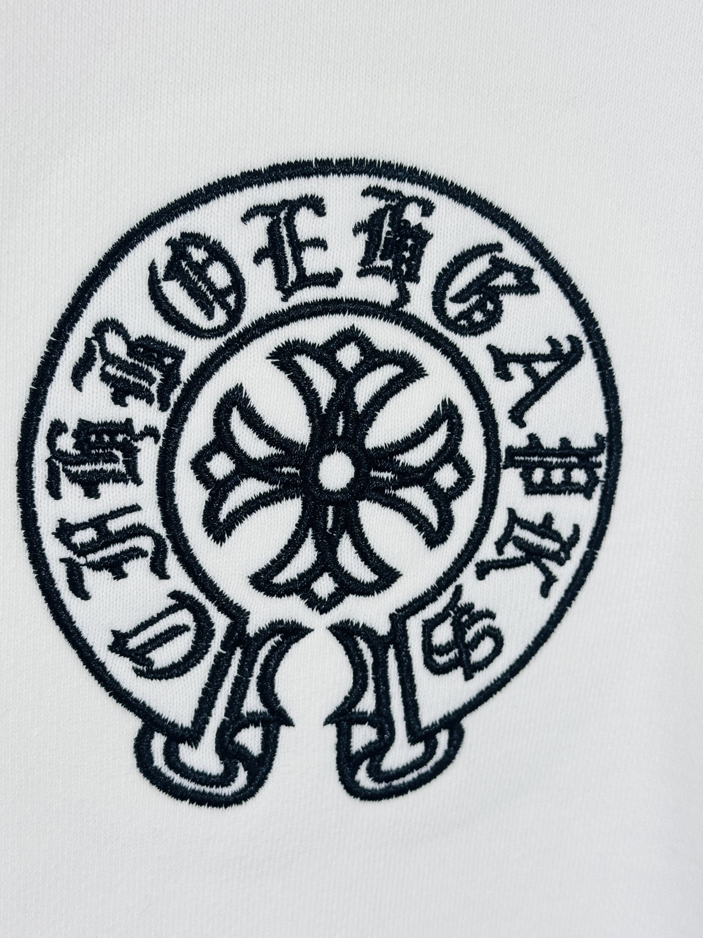 这款衣服是AAAAA 1:1 质量 (非常棒). 使用了和原版一模一样的材料. 商标部分也保持了和克罗心/Chrome Hearts一样. 图片拍摄是实物衣服拍摄, 您所收到的实物保证和我们图片一模一样.