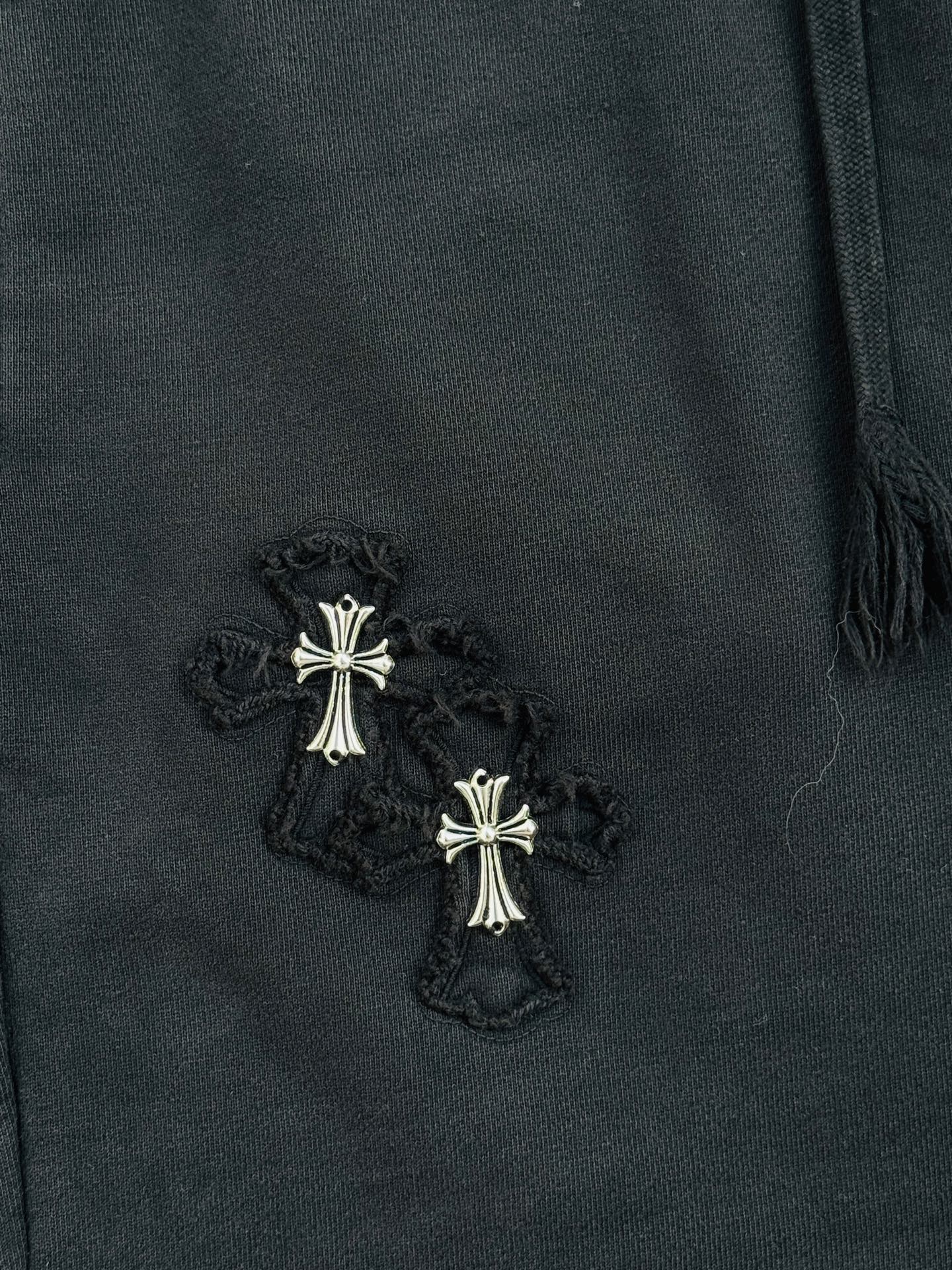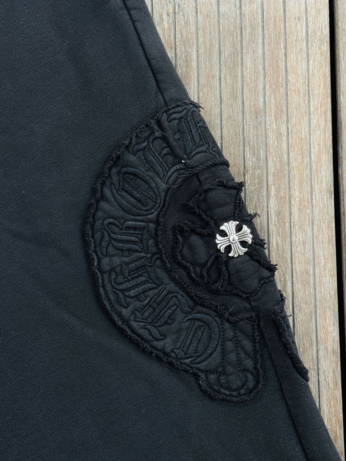 这款衣服是AAAAA 1:1 质量 (非常棒). 使用了和原版一模一样的材料. 商标部分也保持了和克罗心/Chrome Hearts一样. 图片拍摄是实物衣服拍摄, 您所收到的实物保证和我们图片一模一样.