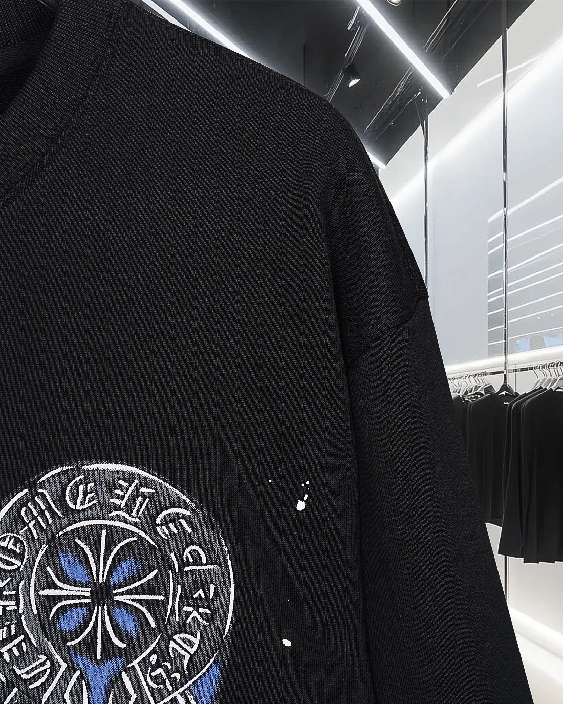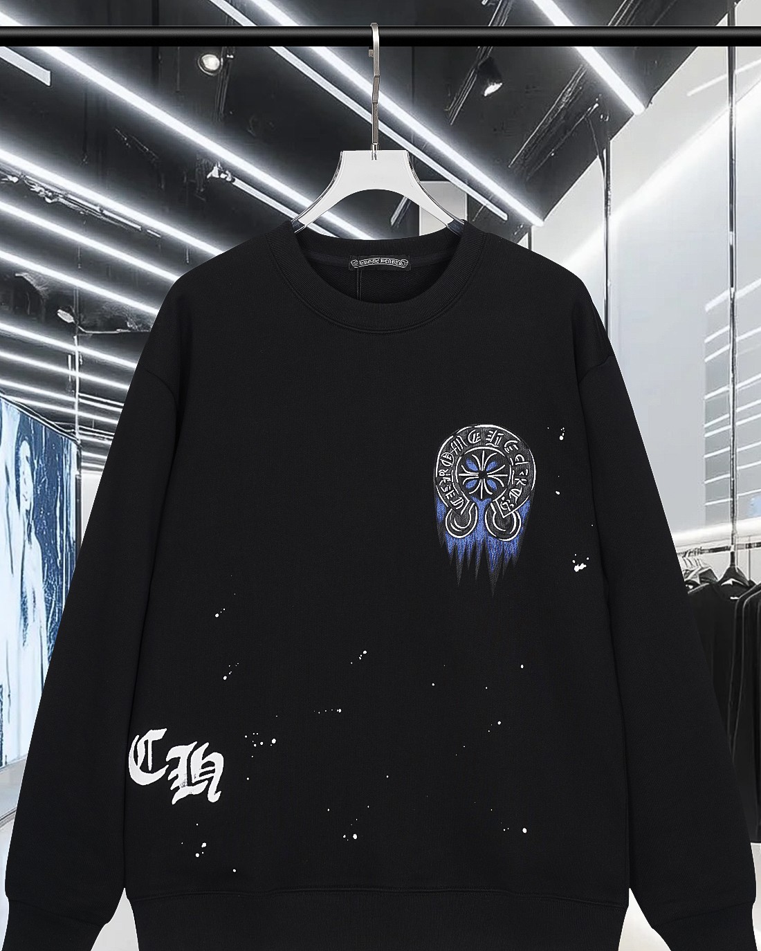 这款衣服是AAAAA 1:1 质量 (非常棒). 使用了和原版一模一样的材料. 商标部分也保持了和克罗心/Chrome Hearts一样. 图片拍摄是实物衣服拍摄, 您所收到的实物保证和我们图片一模一样.