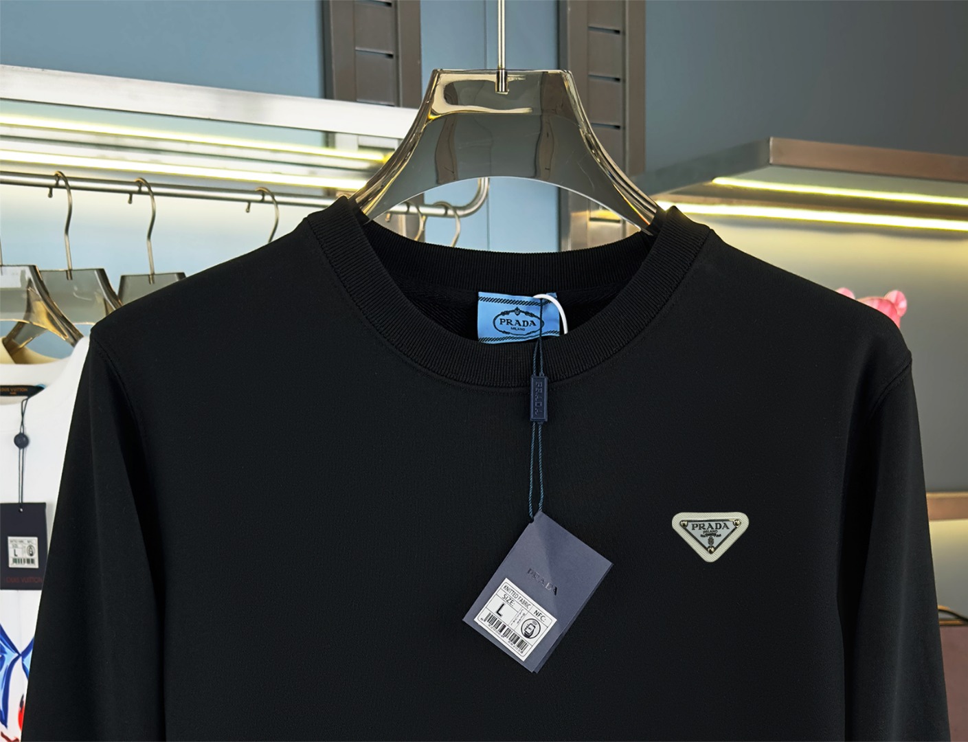 这款衣服是AAAAA 1:1 质量 (非常棒). 使用了和原版一模一样的材料. 商标部分也保持了和普拉达/Prada一样. 图片拍摄是实物衣服拍摄, 您所收到的实物保证和我们图片一模一样.