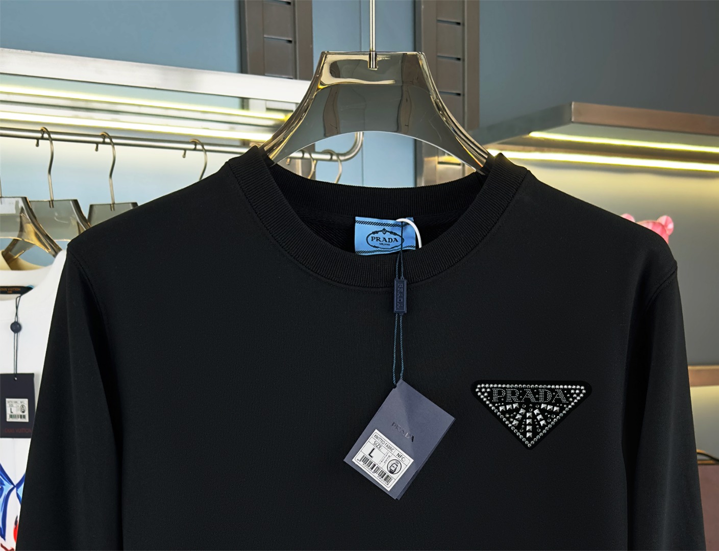 这款衣服是AAAAA 1:1 质量 (非常棒). 使用了和原版一模一样的材料. 商标部分也保持了和普拉达/Prada一样. 图片拍摄是实物衣服拍摄, 您所收到的实物保证和我们图片一模一样.