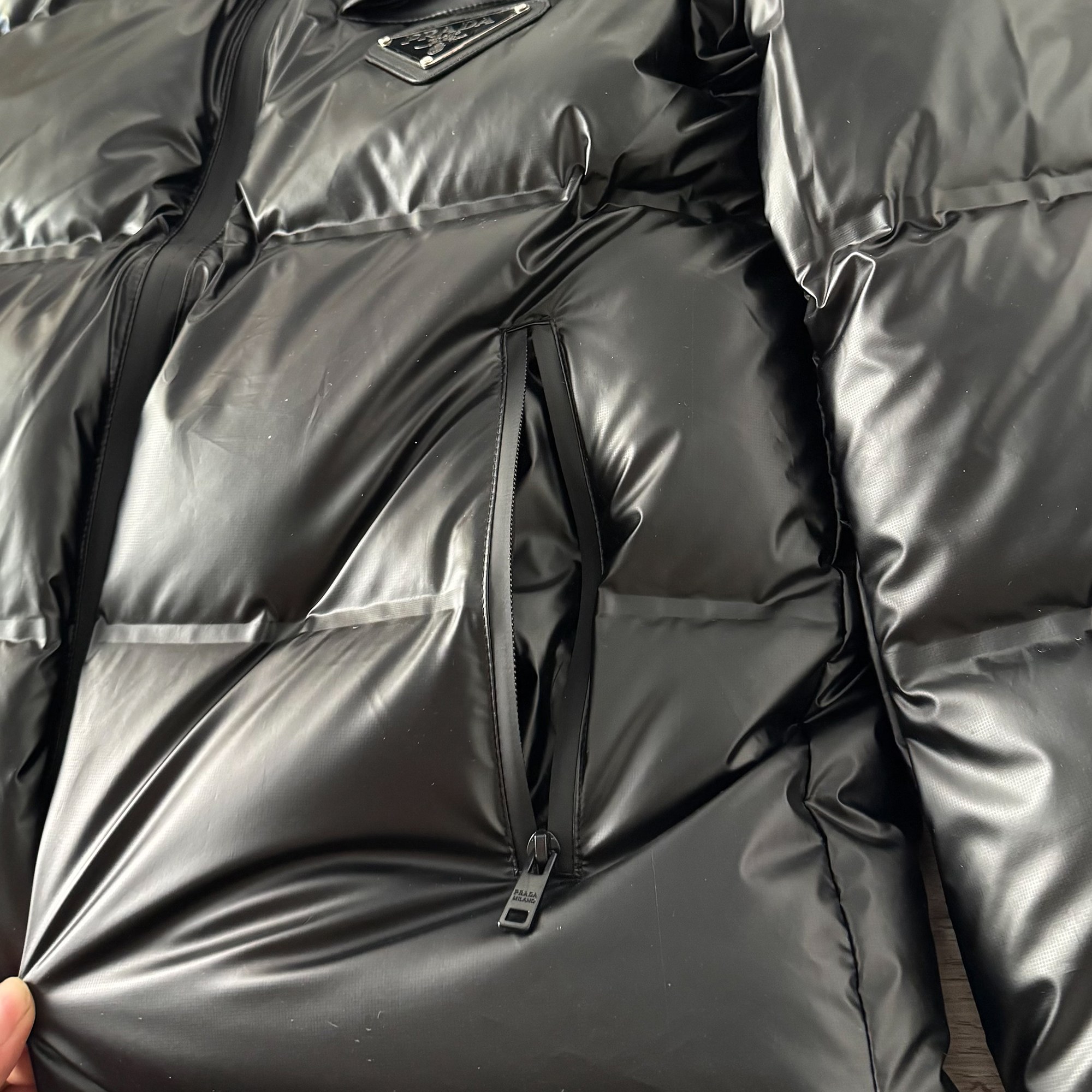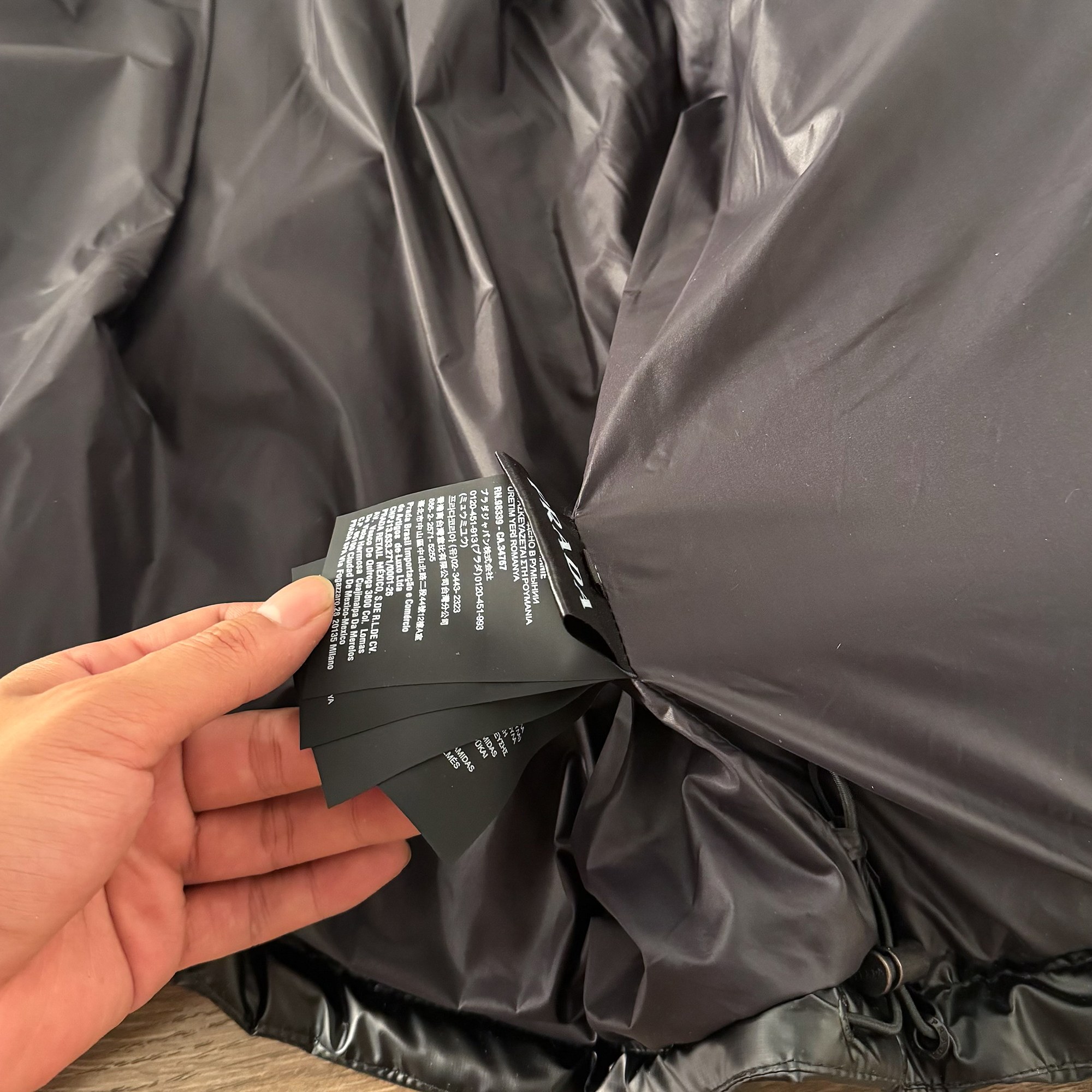 这款衣服是AAAAA 1:1 质量 (非常棒). 使用了和原版一模一样的材料. 商标部分也保持了和普拉达/Prada一样. 图片拍摄是实物衣服拍摄, 您所收到的实物保证和我们图片一模一样.