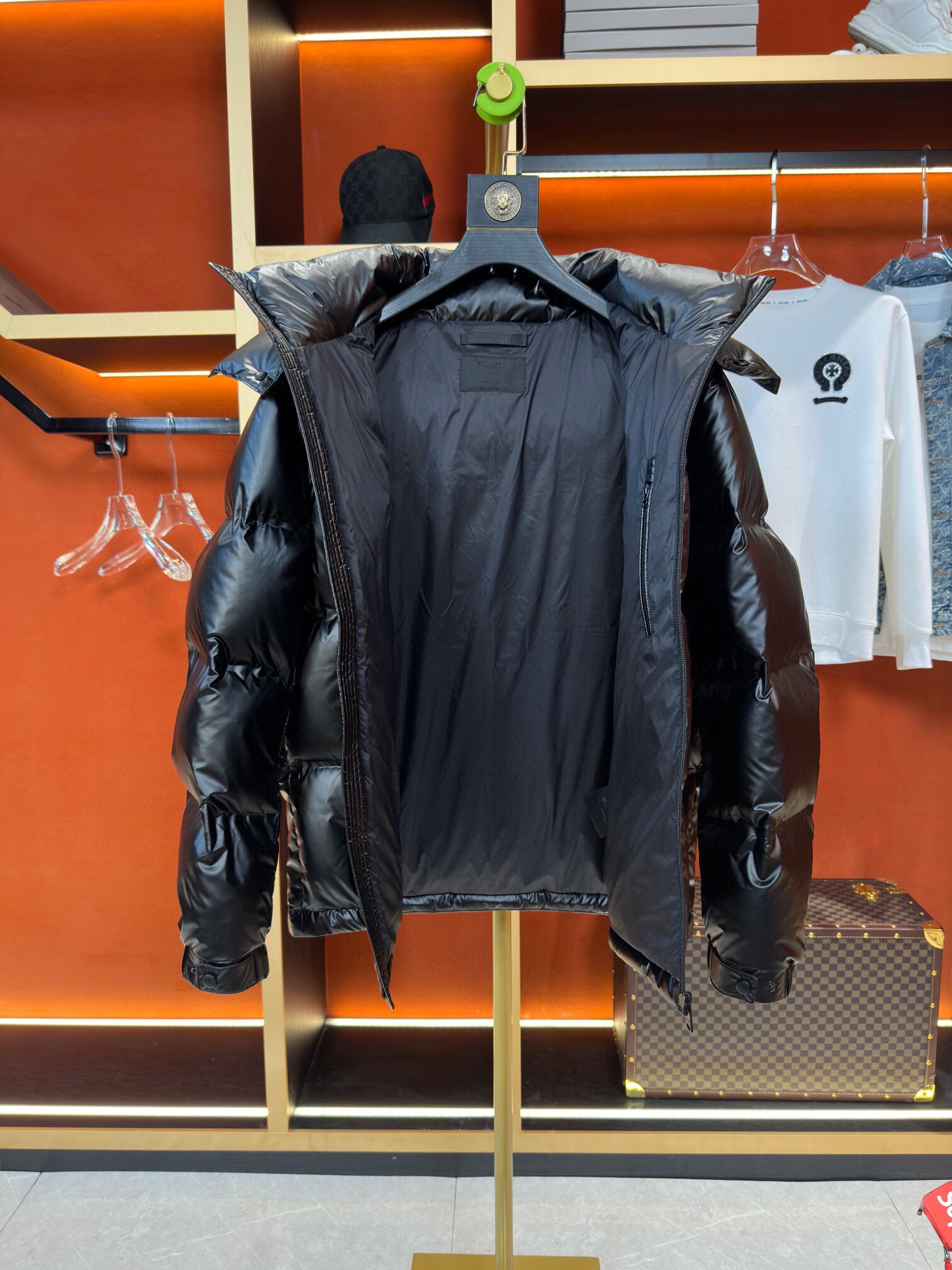 这款衣服是AAAAA 1:1 质量 (非常棒). 使用了和原版一模一样的材料. 商标部分也保持了和普拉达/Prada一样. 图片拍摄是实物衣服拍摄, 您所收到的实物保证和我们图片一模一样.