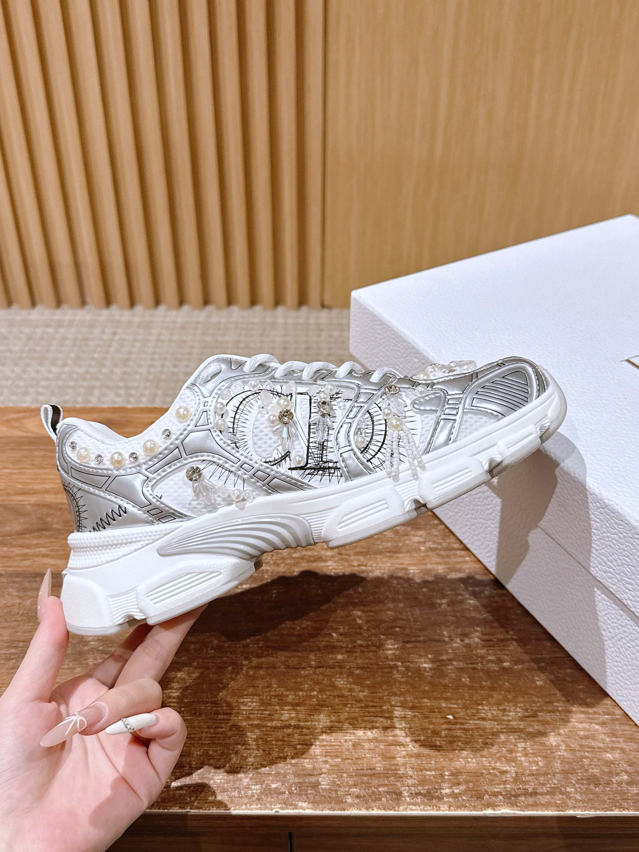 这款鞋子是AAAAA 1:1 质量 (非常棒). 使用了和原版一模一样的材料. 商标部分也保持了和迪奥/Dior一样. 图片拍摄是实物鞋子拍摄, 您所收到的实物保证和我们图片一模一样.