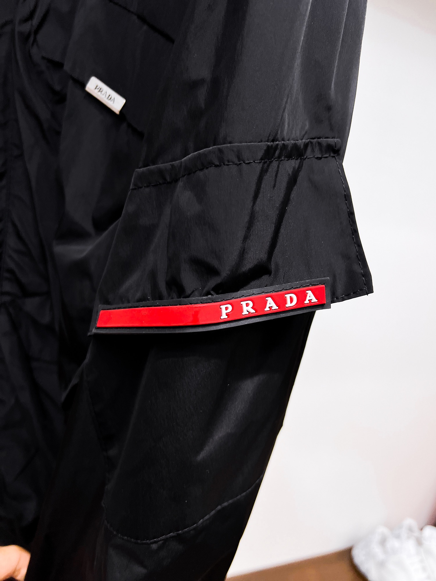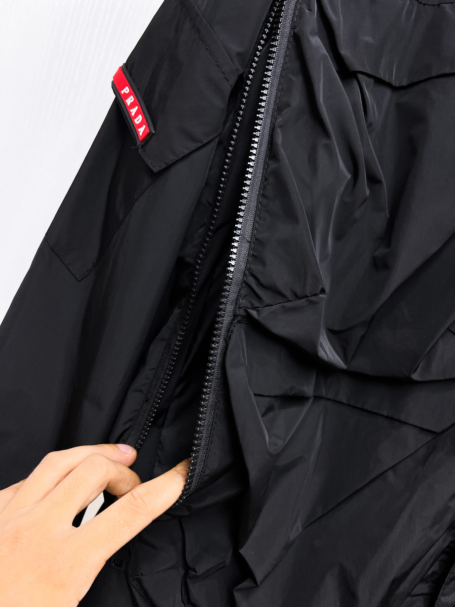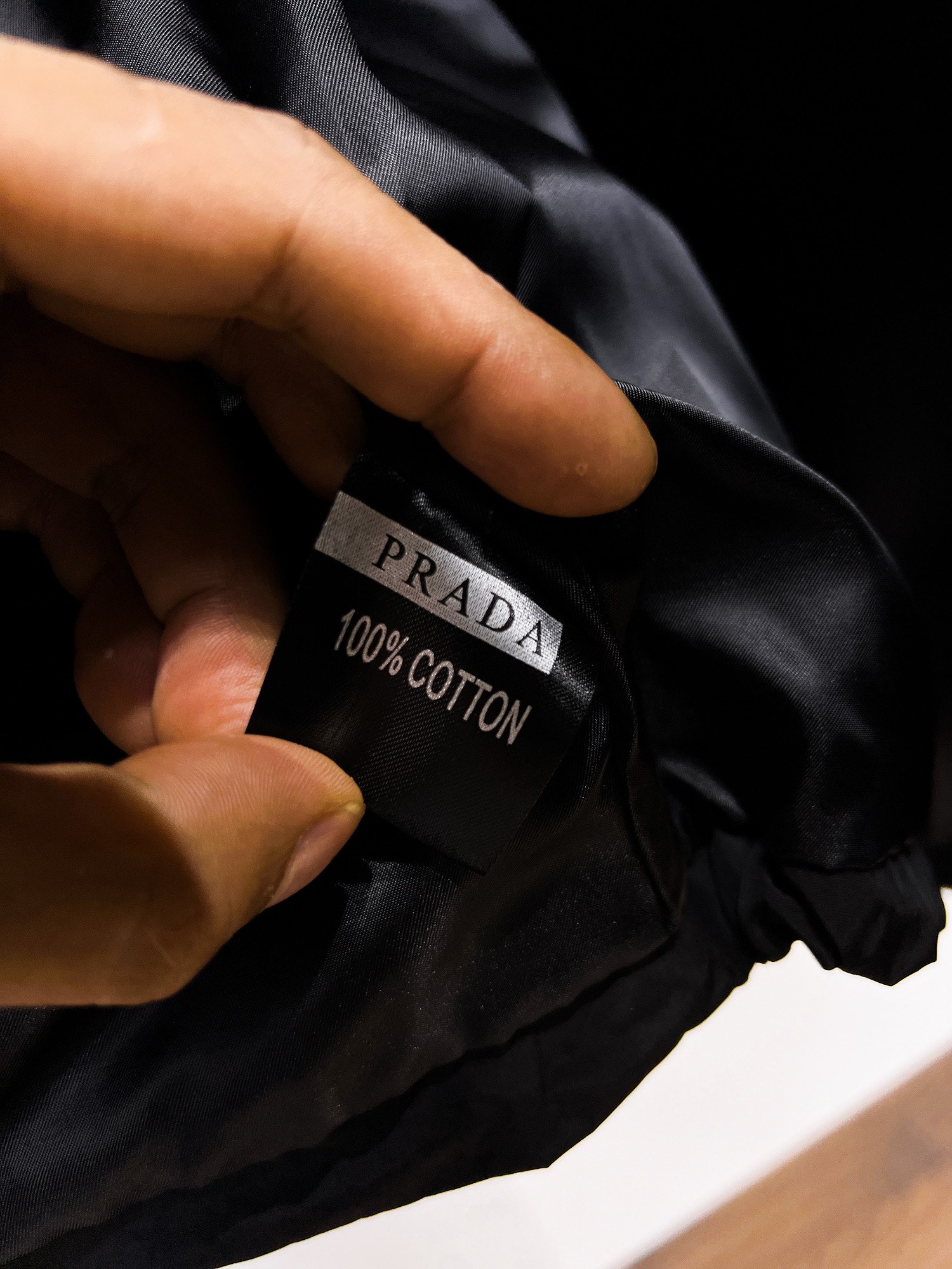 这款衣服是AAAAA 1:1 质量 (非常棒). 使用了和原版一模一样的材料. 商标部分也保持了和普拉达/Prada一样. 图片拍摄是实物衣服拍摄, 您所收到的实物保证和我们图片一模一样.