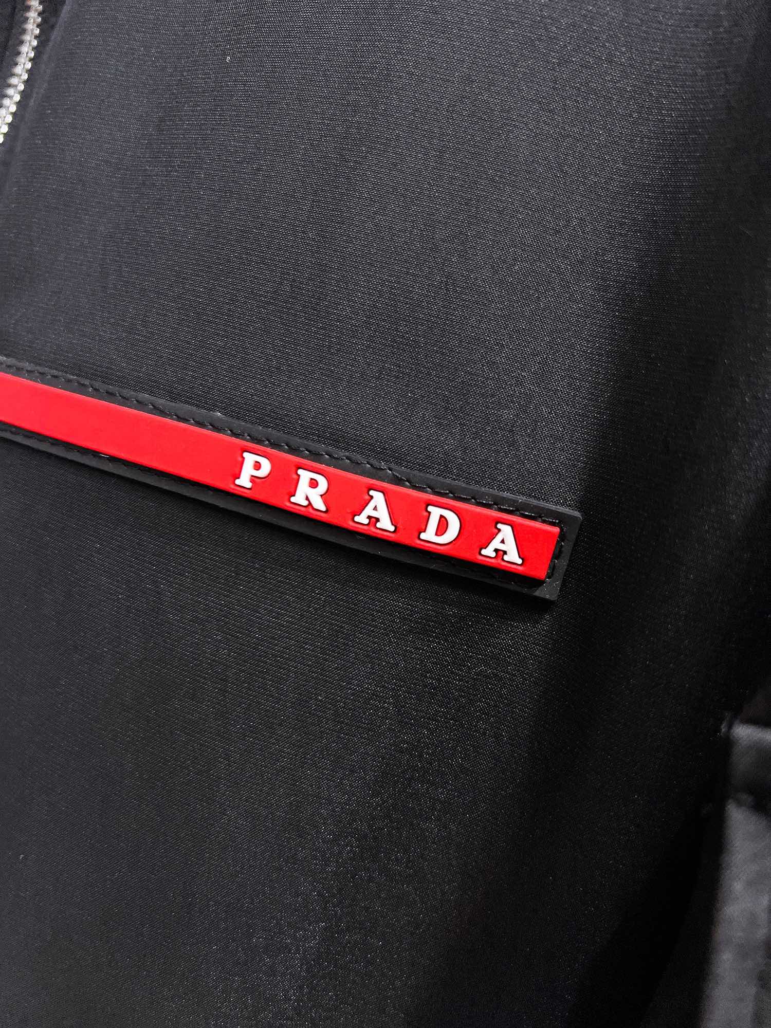 这款衣服是AAAAA 1:1 质量 (非常棒). 使用了和原版一模一样的材料. 商标部分也保持了和普拉达/Prada一样. 图片拍摄是实物衣服拍摄, 您所收到的实物保证和我们图片一模一样.