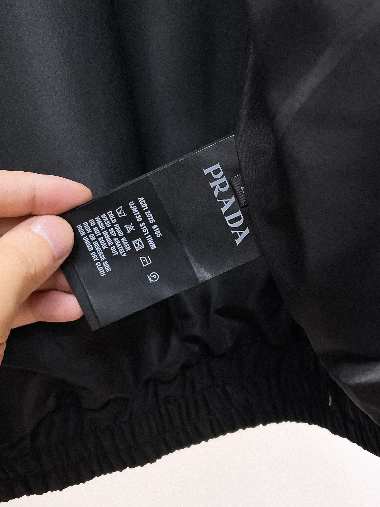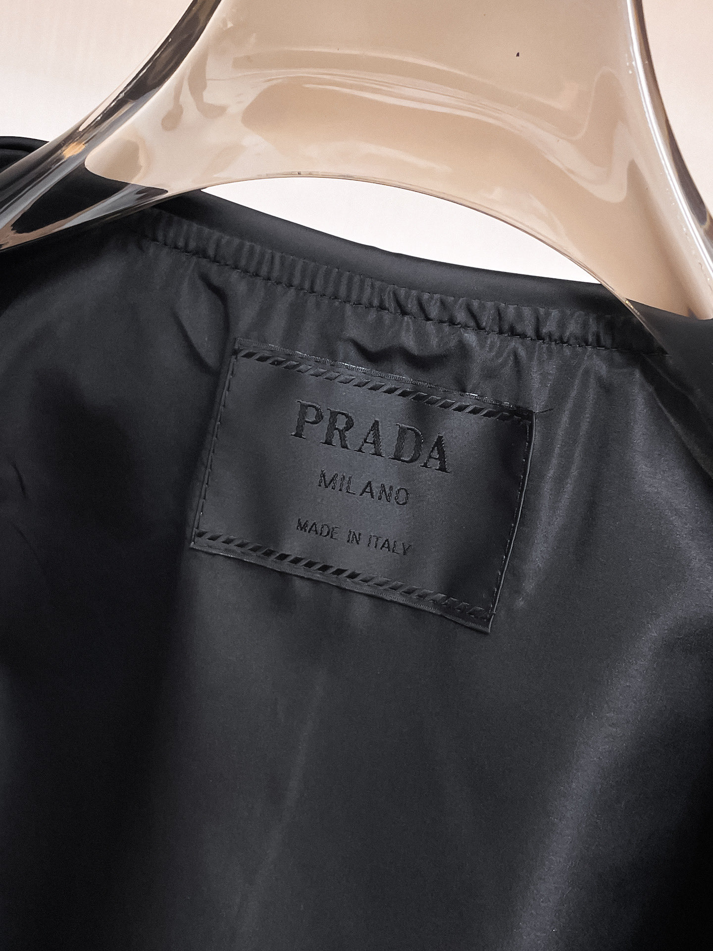 这款衣服是AAAAA 1:1 质量 (非常棒). 使用了和原版一模一样的材料. 商标部分也保持了和普拉达/Prada一样. 图片拍摄是实物衣服拍摄, 您所收到的实物保证和我们图片一模一样.