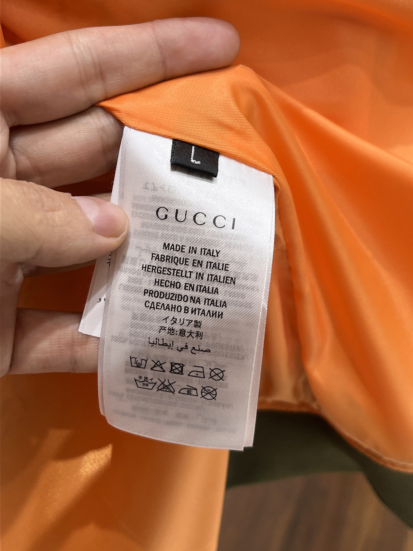 这款衣服是AAAAA 1:1 质量 (非常棒). 使用了和原版一模一样的材料. 商标部分也保持了和古奇/Gucci一样. 图片拍摄是实物衣服拍摄, 您所收到的实物保证和我们图片一模一样.